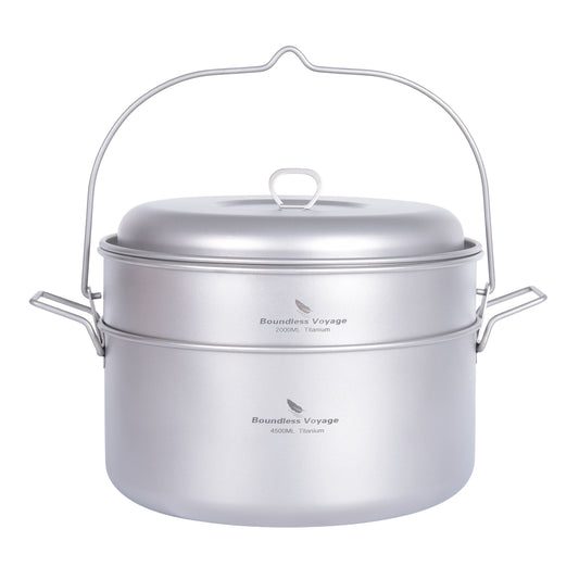 Boundless Voyage Titanium Steamer Soup Pot 4.5L +2L Outdoor Camping Cookware Lightweight Picnic Hiking Hanging Pot Portable Travel Household Kitchenware Cooking Kit Hot Pot For 3-5 Person