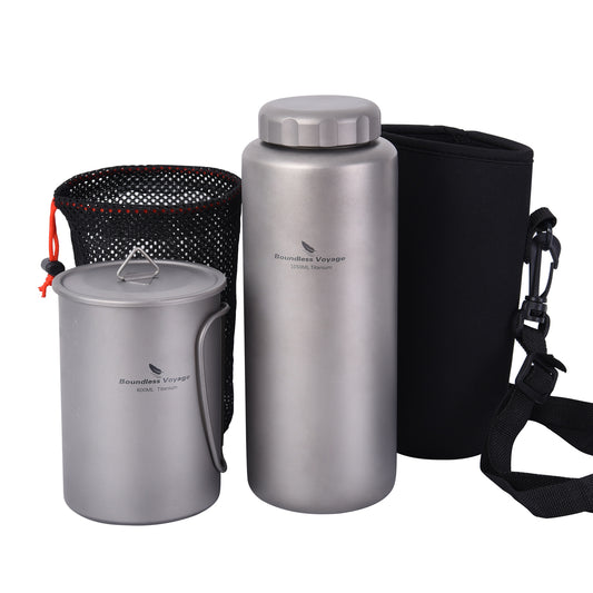 Boundless Voyage Titanium Bottle with Nesting Cup Lightweight Portable for Hiking Camping Water bottle Titanium mug