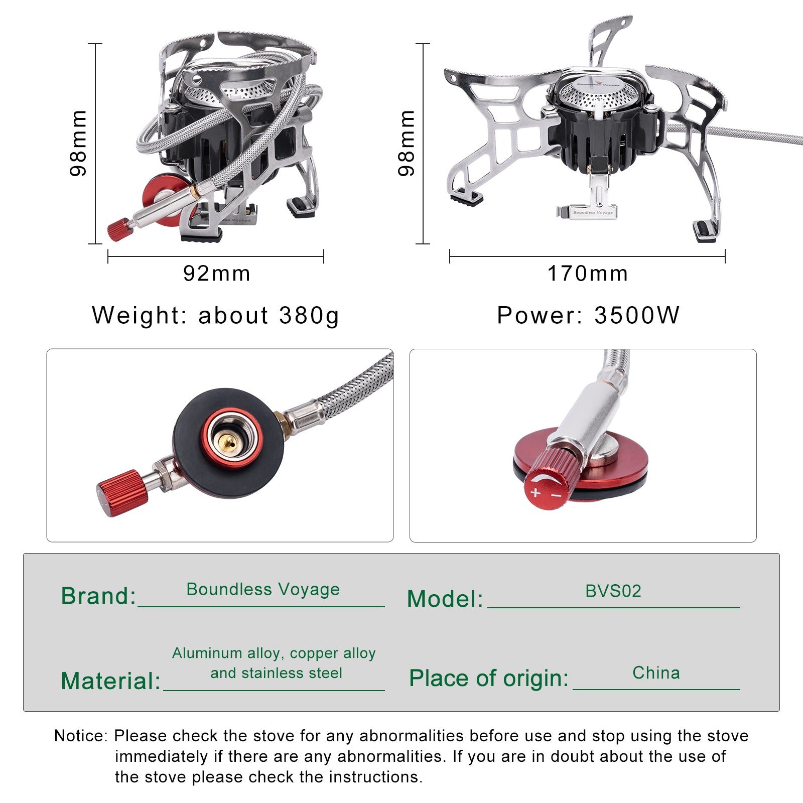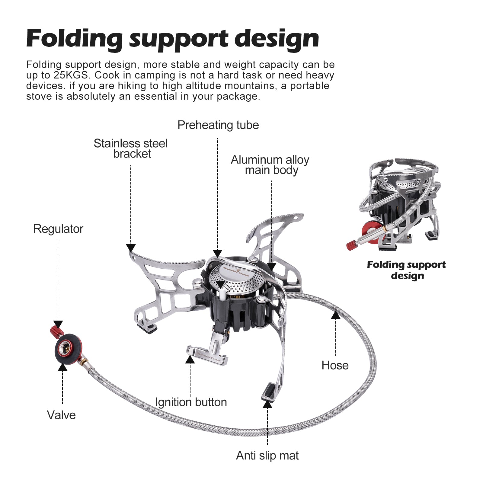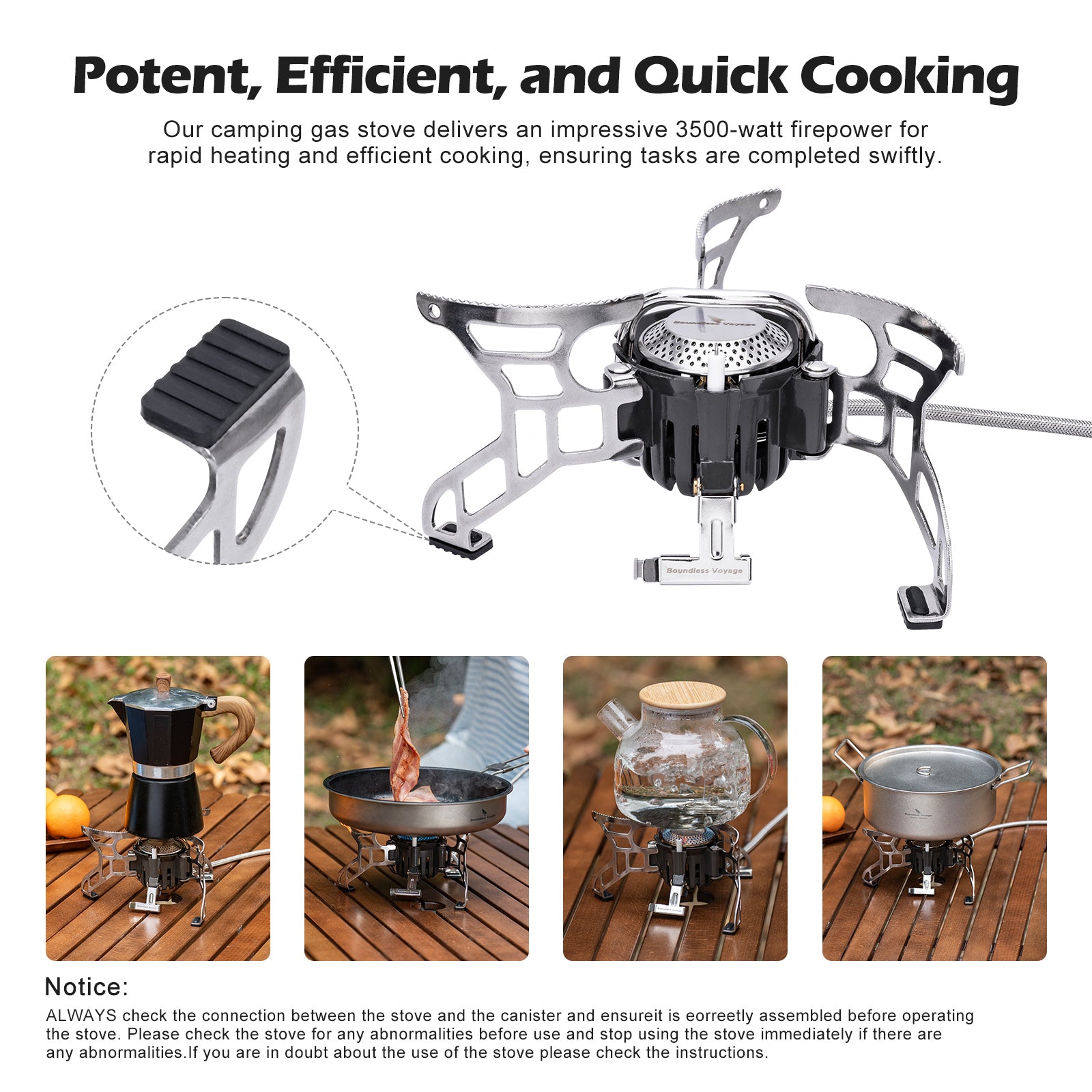 Boundless Voyage Portable Camping Stove BVS02 – 3500W High-Power Foldable Gas Stove, Compact & Stable Outdoor Cooking Burner