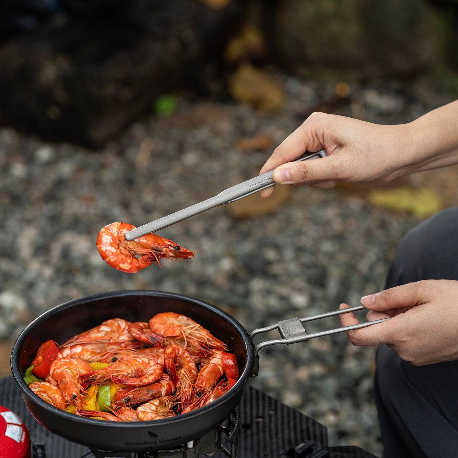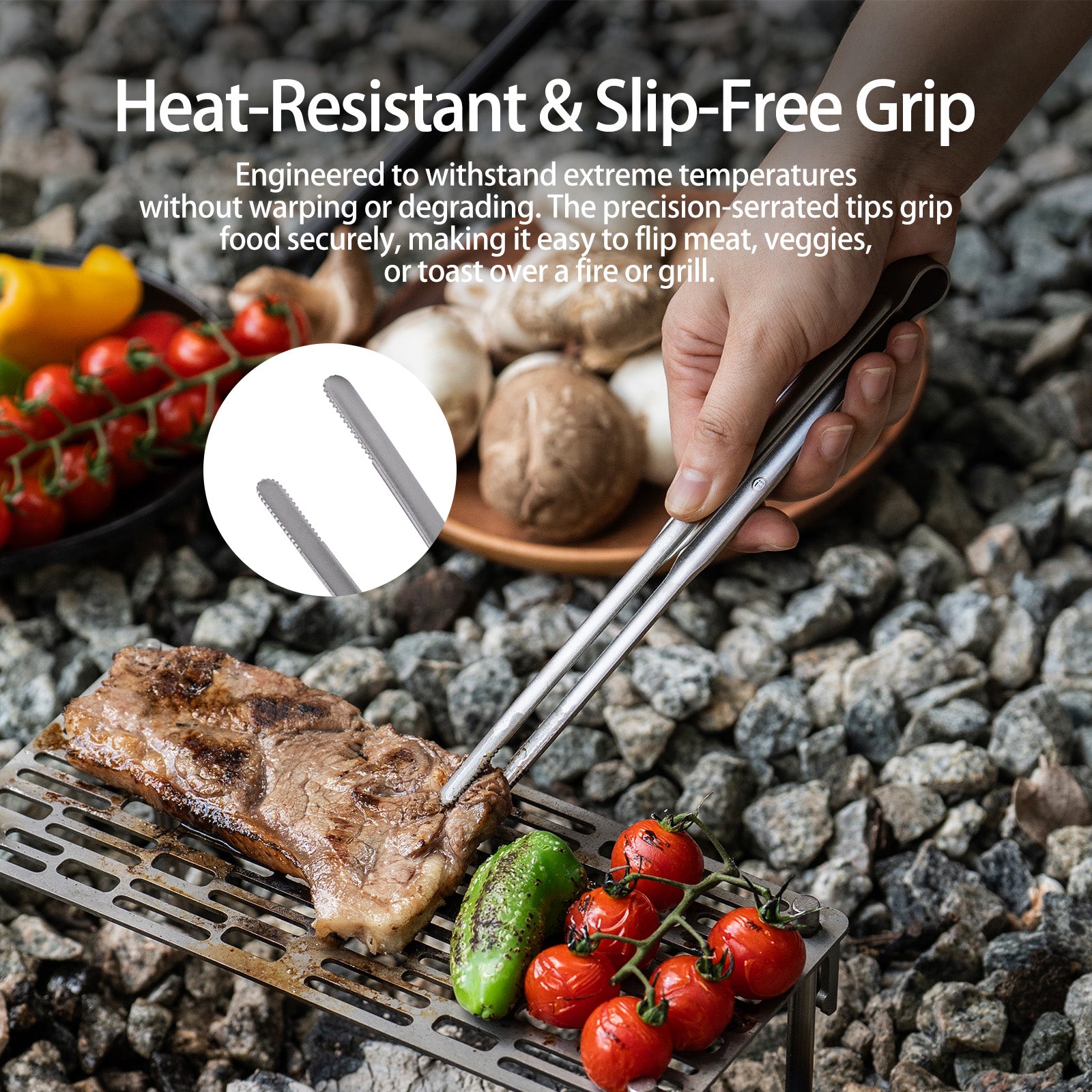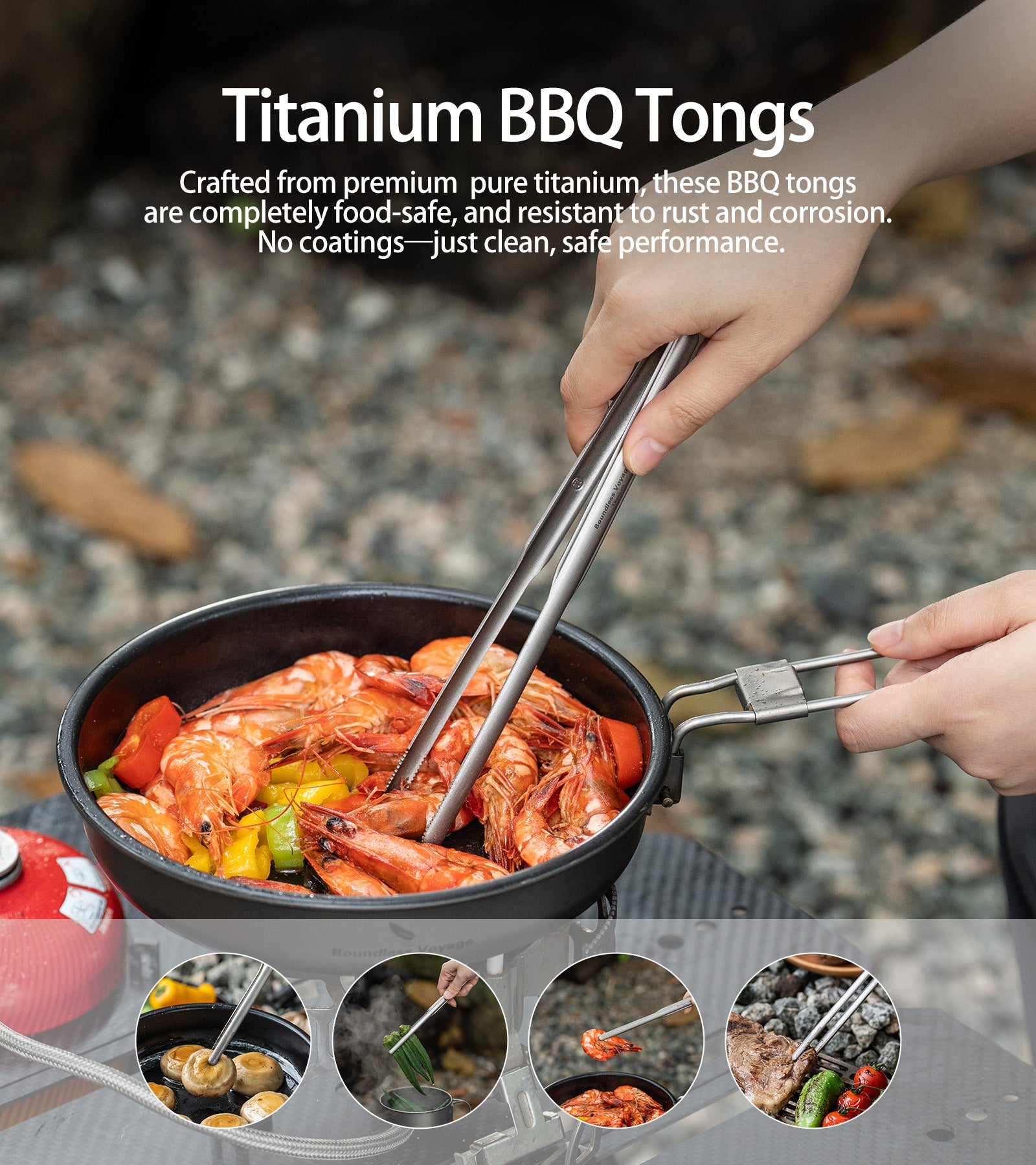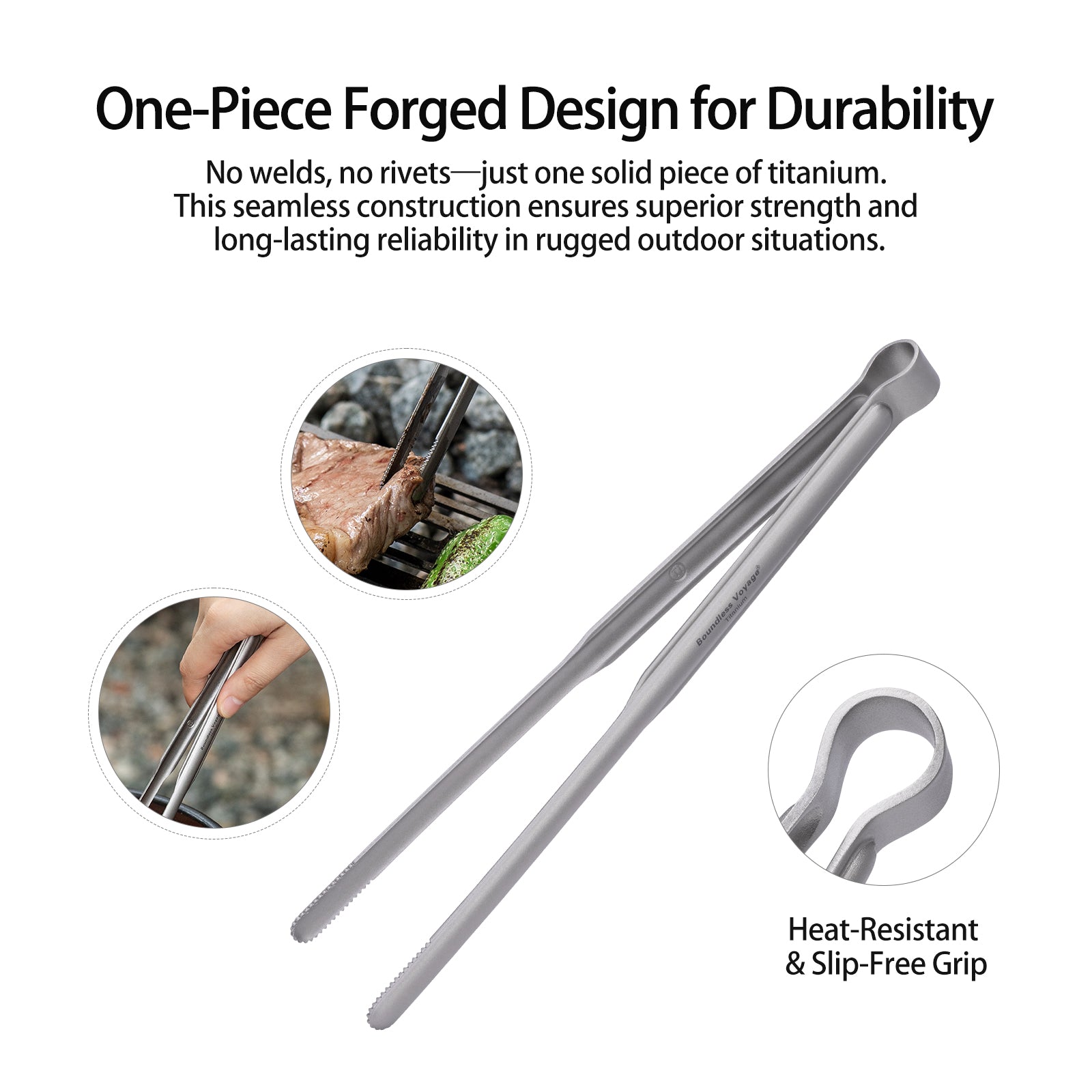 Boundless Voyage Titanium BBQ Tongs, Ultralight Heat-Resistant & Rustproof Titanium Grilling Tongs for Camping, Hiking, Outdoor Cooking