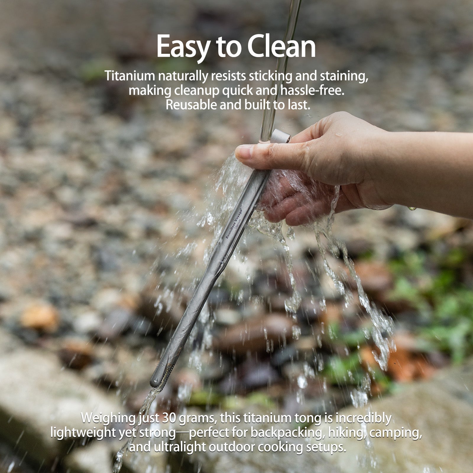 Weighing just 30 grams, this titanium tong is incredibly lightweight yet strong—perfect for backpacking, hiking, camping, and ultralight outdoor cooking setups.