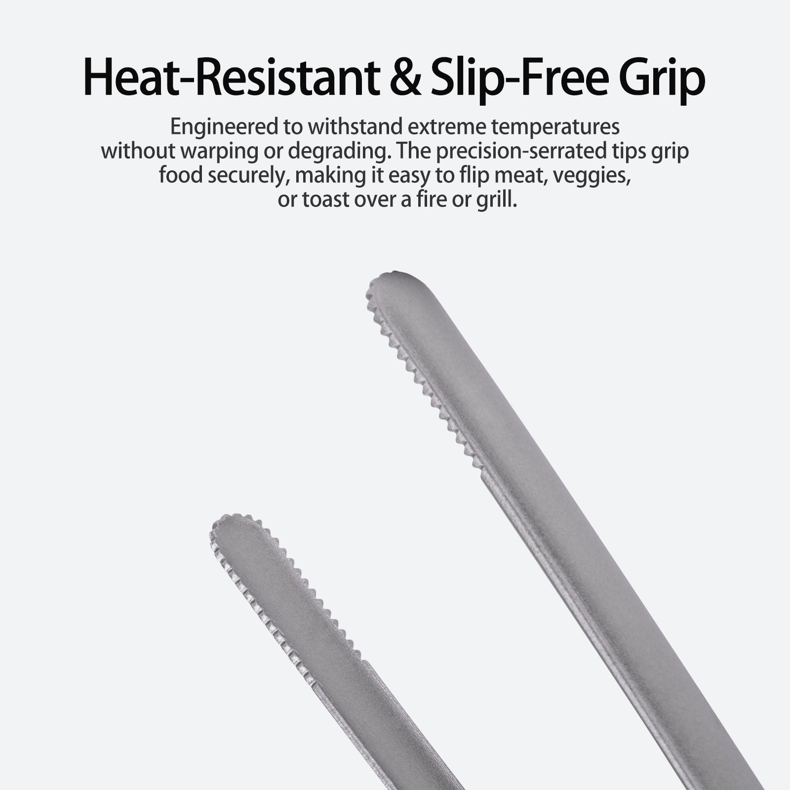 Crafted from premium pure titanium, these BBQ tongs are completely food-safe, and resistant to rust and corrosion. No coatings—just clean, safe performance.