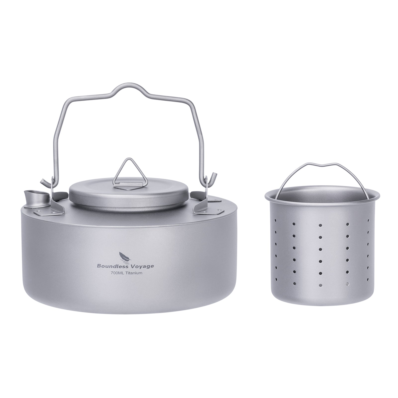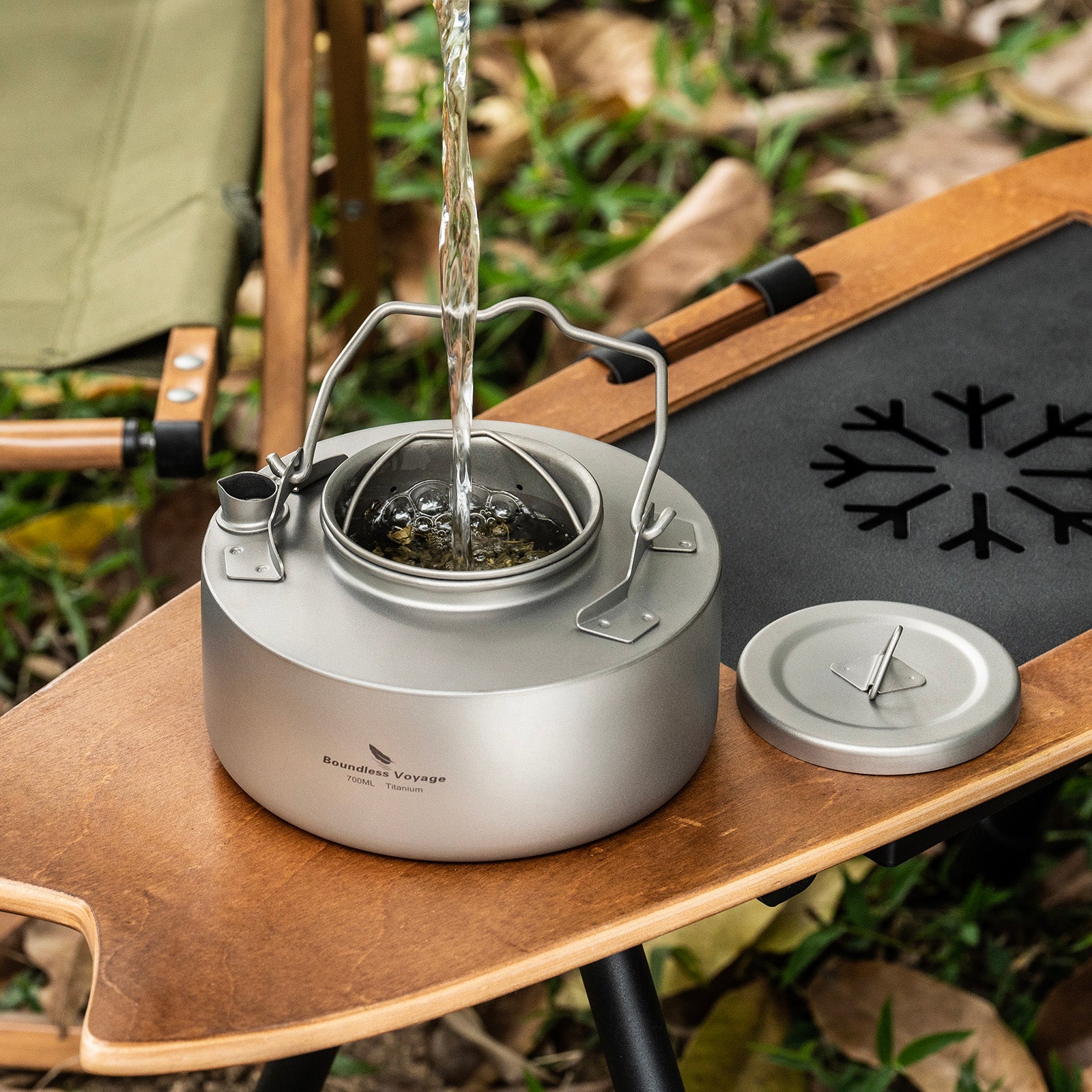 🏕 Boundless Voyage – 700ml Titanium Kettle with Strainer