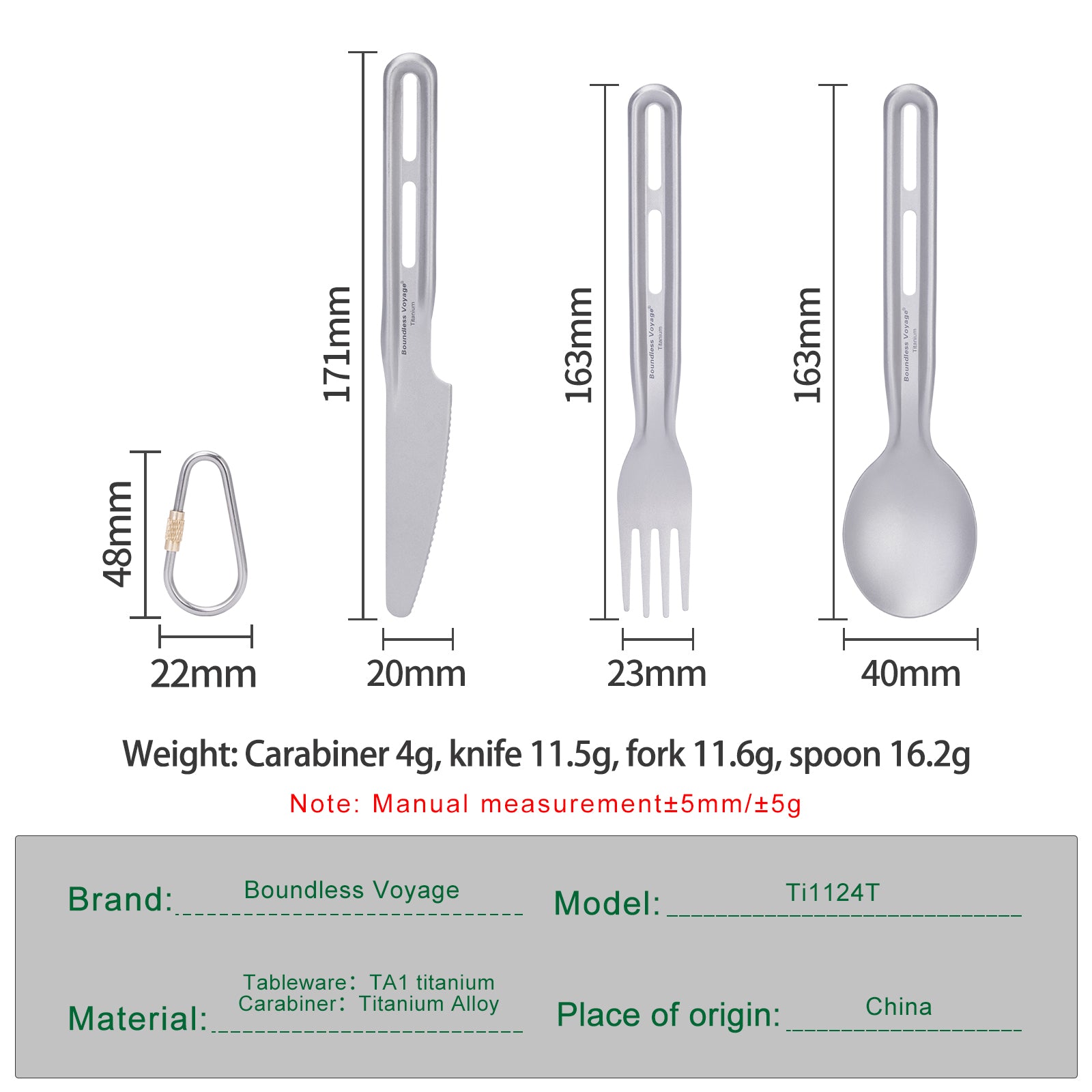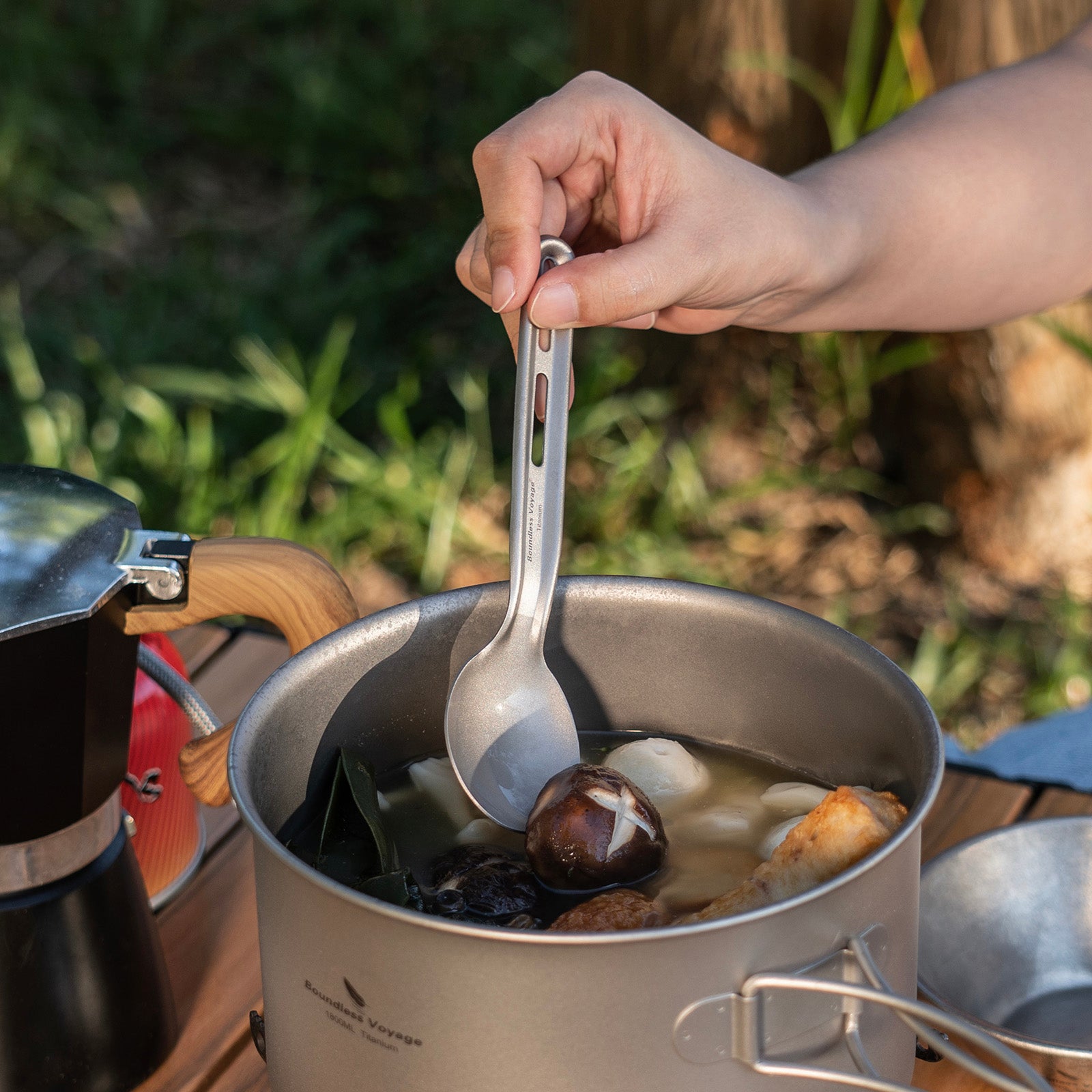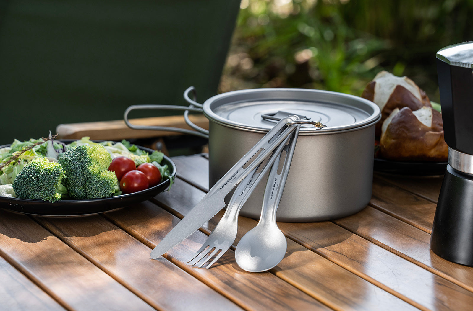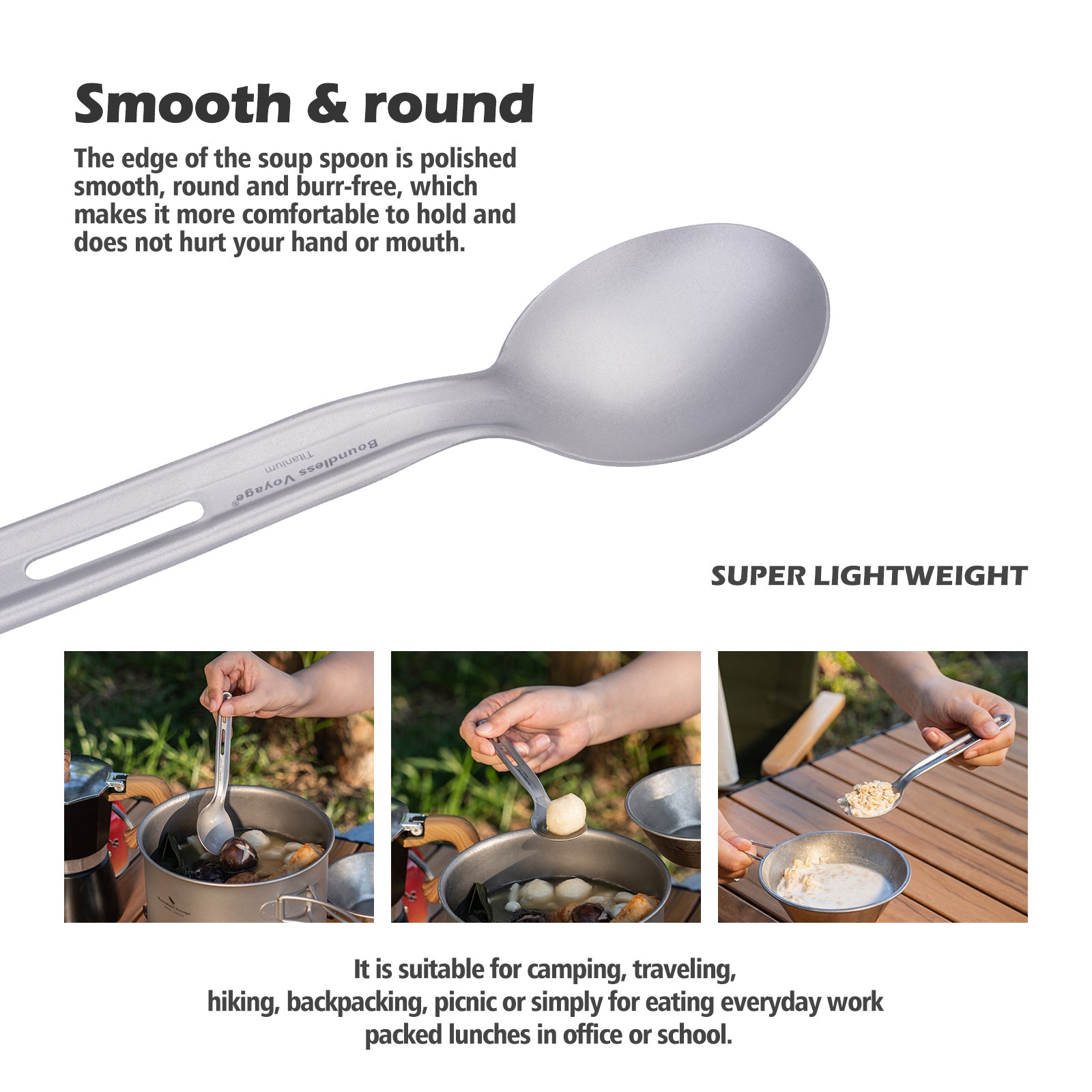 Boundless Voyage Titanium Knife Spoon Fork Set Outdoor Camping Ultralight Cutlery for Soup Meal Portable Tableware