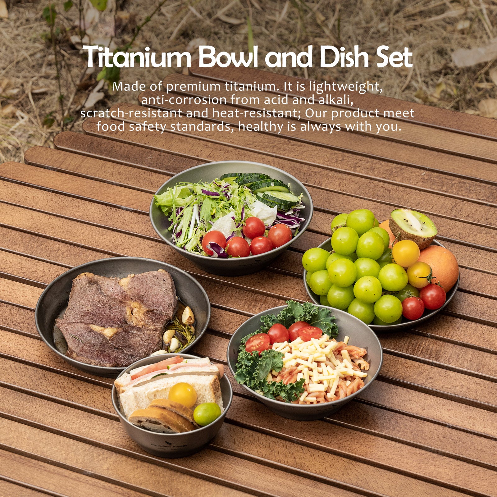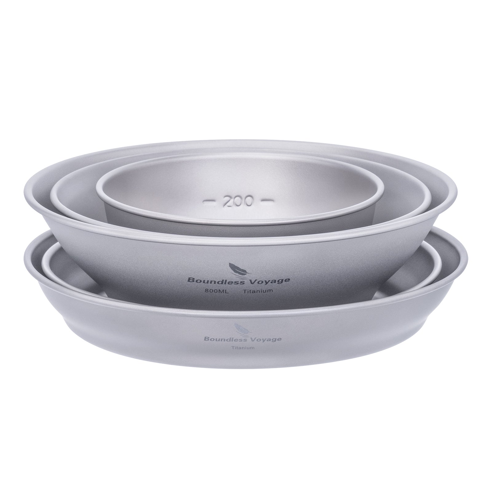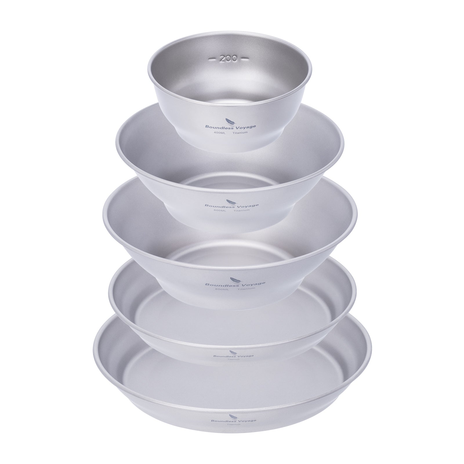 Boundless Voyage Titanium Bowl & Pan Set – Ultralight 5-Piece Camping Tableware Kit for Backpacking, Hiking & Outdoor Dining