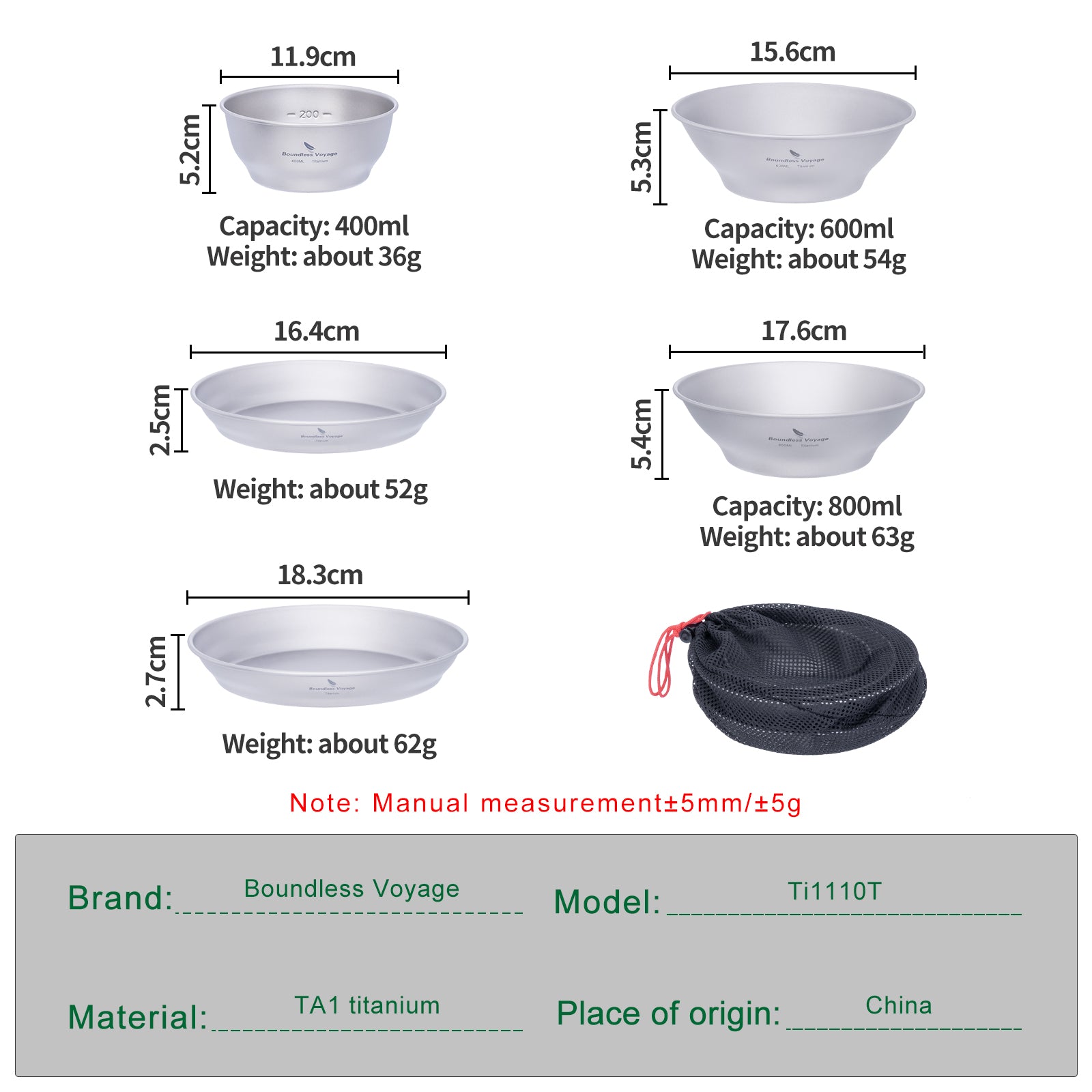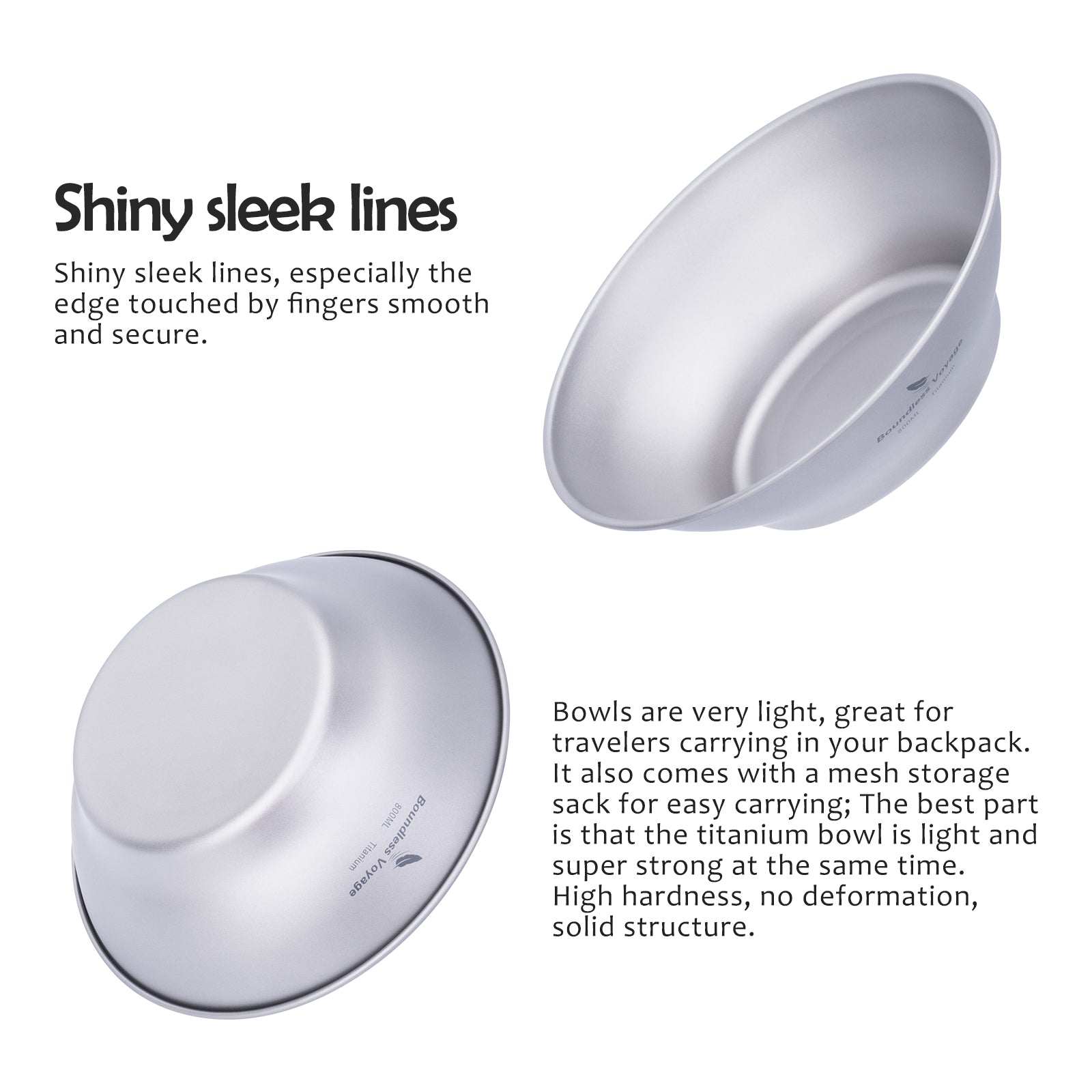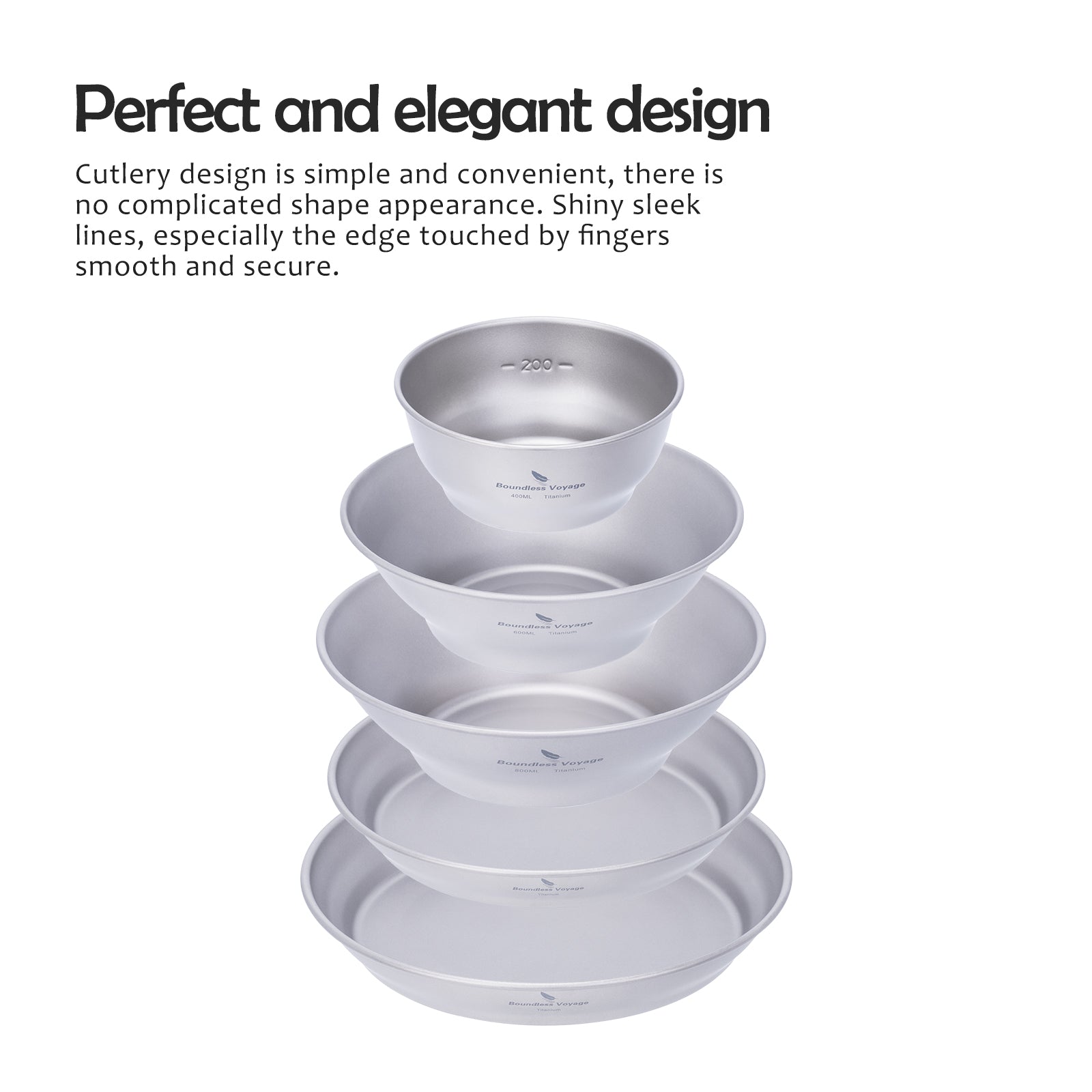 Boundless Voyage Titanium Bowl & Pan Set – Ultralight 5-Piece Camping Tableware Kit for Backpacking, Hiking & Outdoor Dining