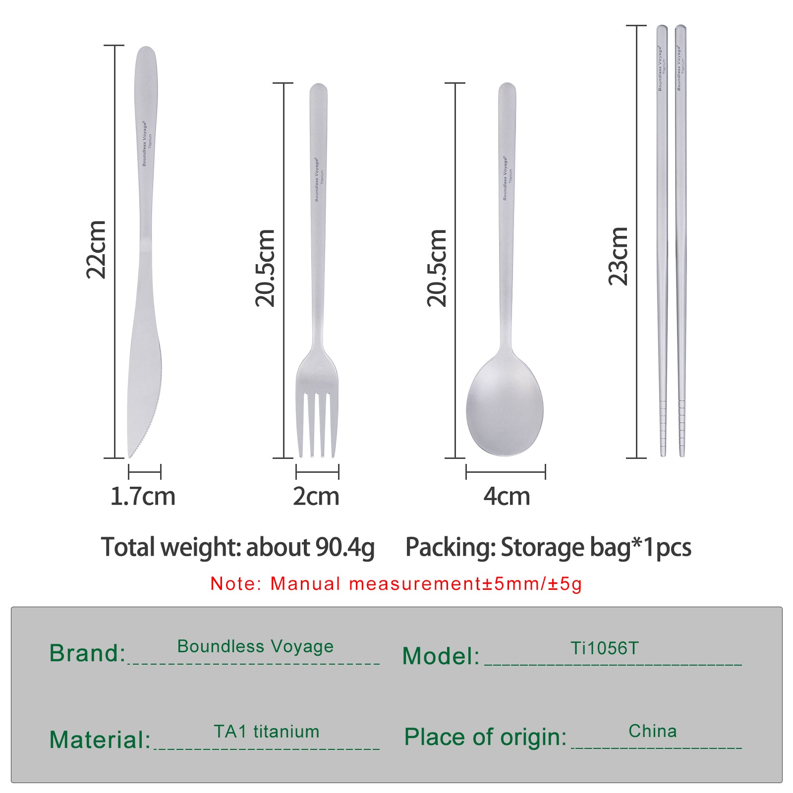 Boundless Voyage Titanium Camping Tableware Set – Eco-Friendly Cutlery & Chopsticks | Knife, Fork, Spoon for Home, Travel & Outdoor Adventures