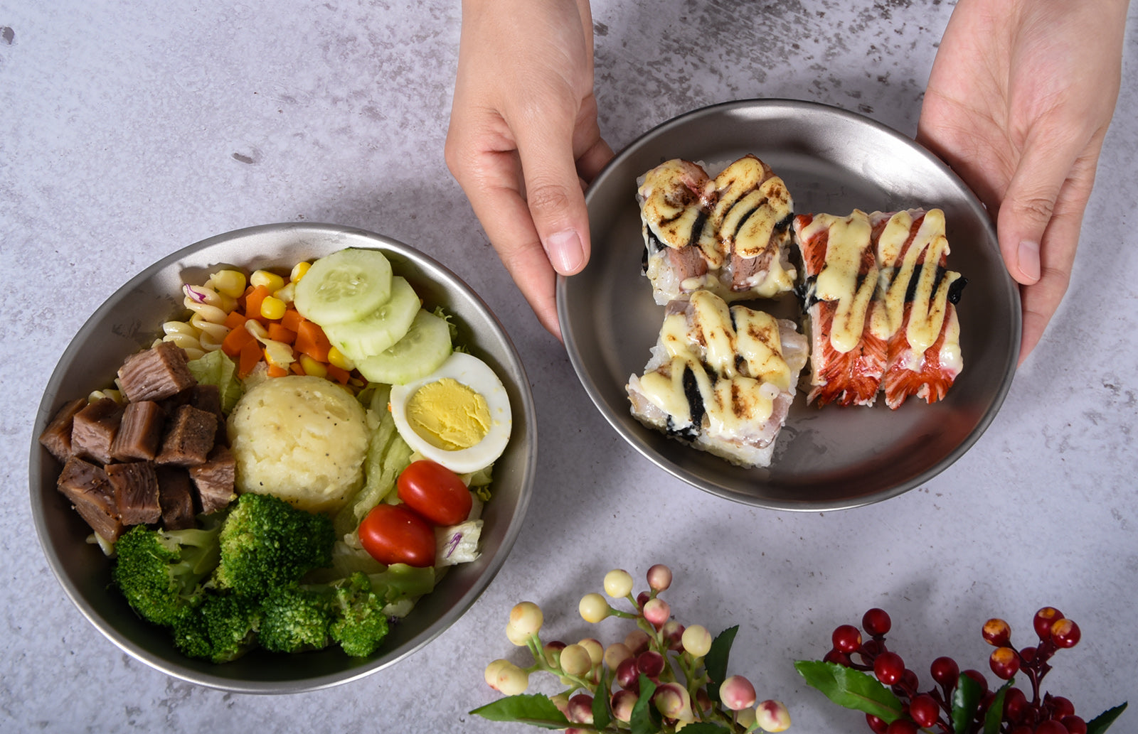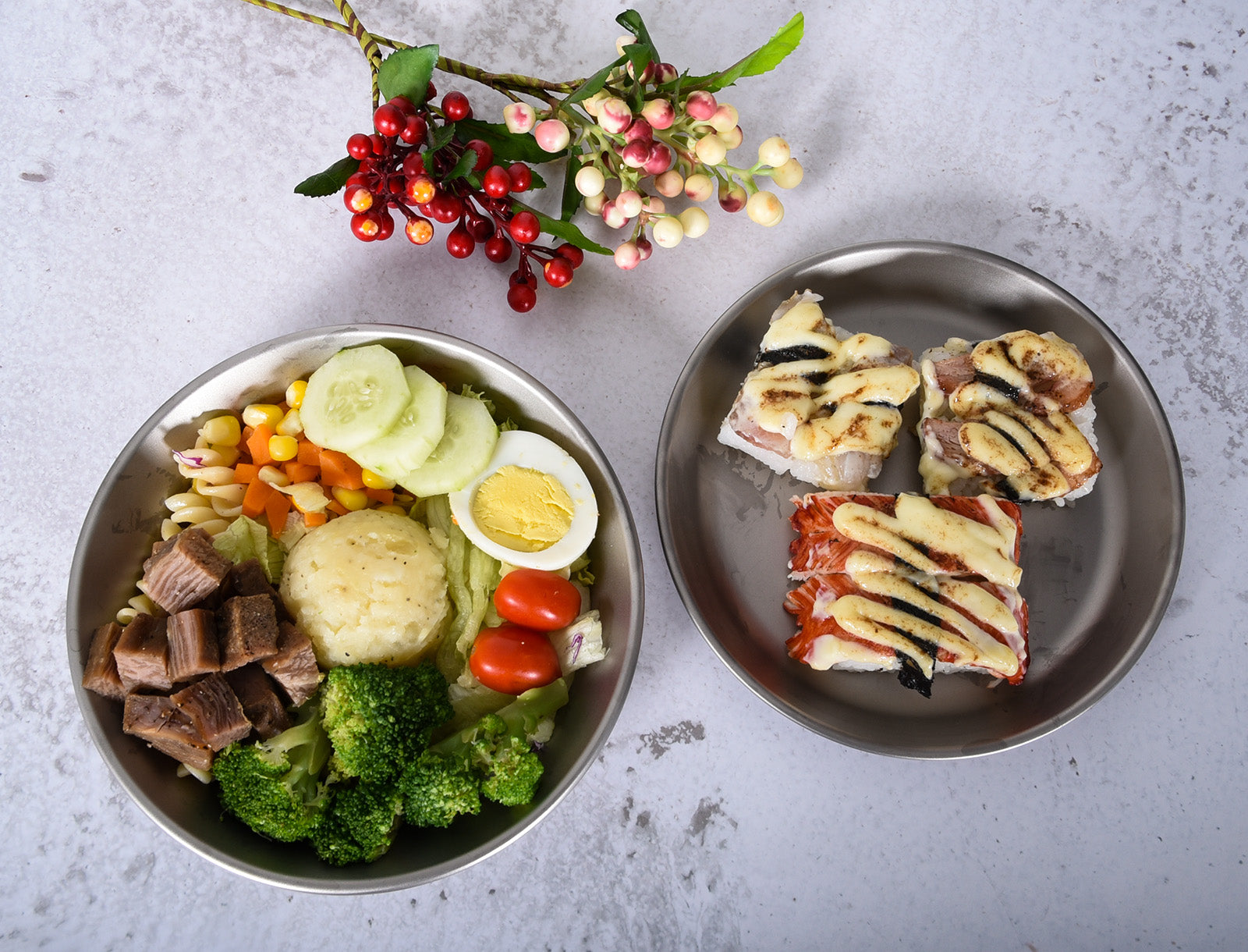 Includes a bowl + pan/plate combination for a more complete meal setup. -