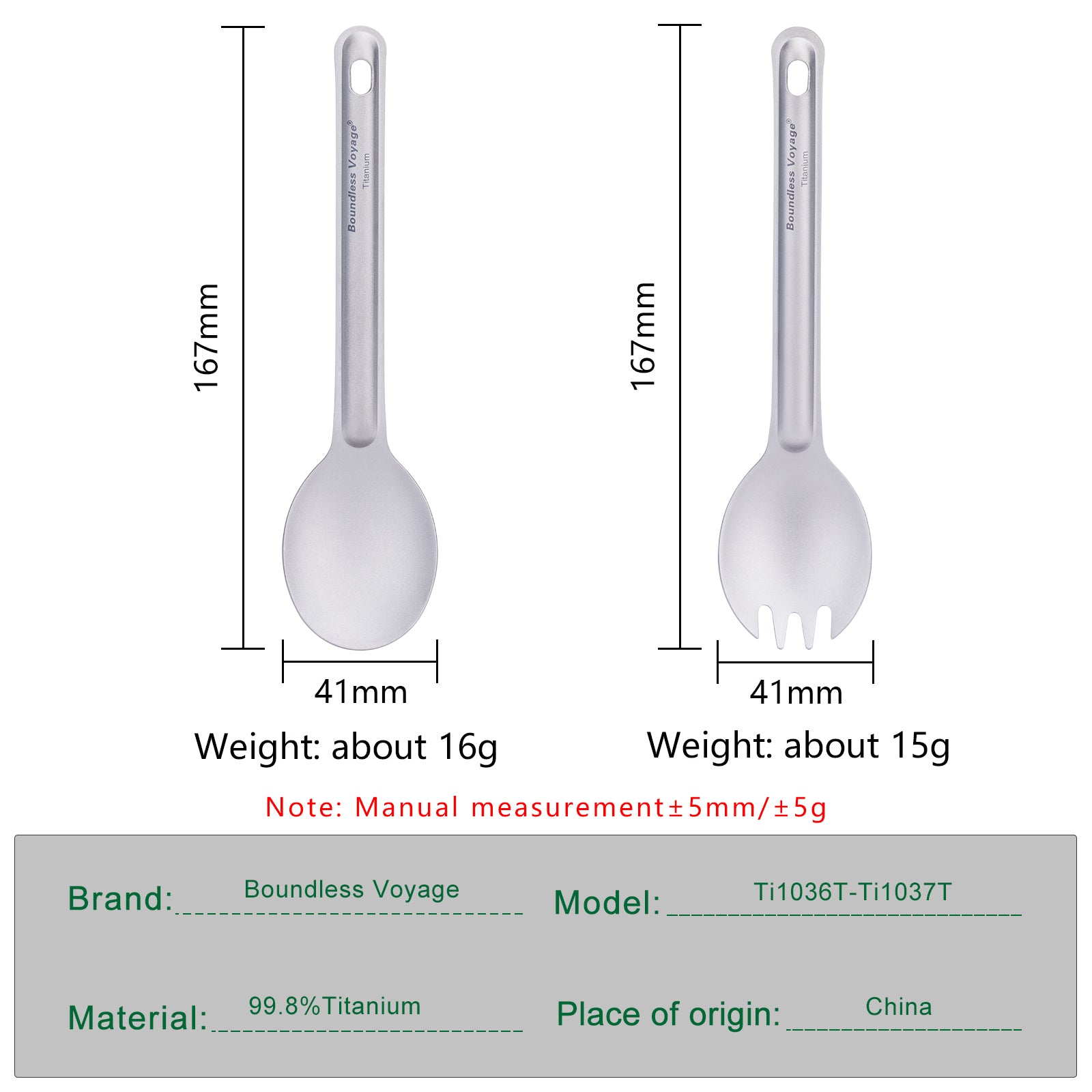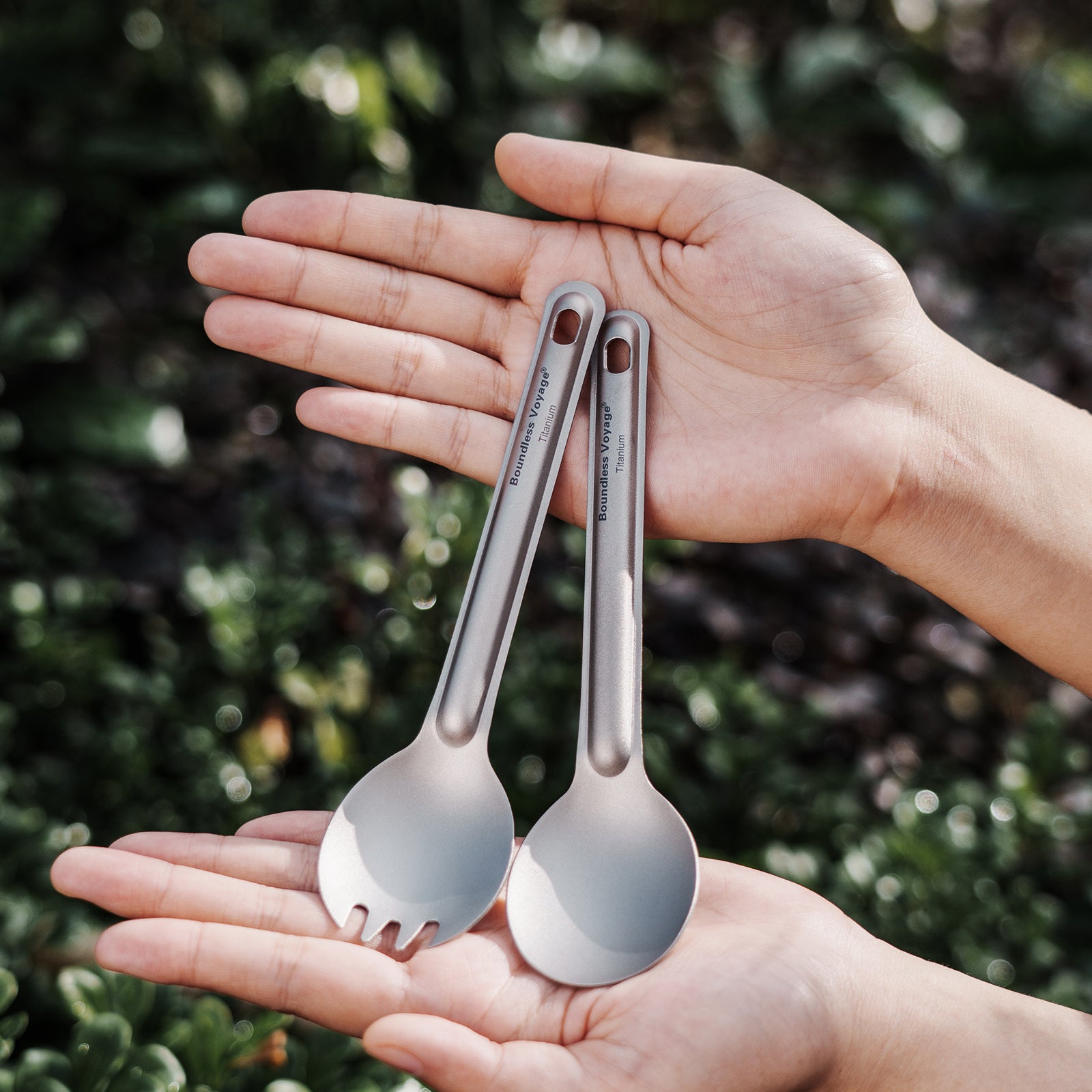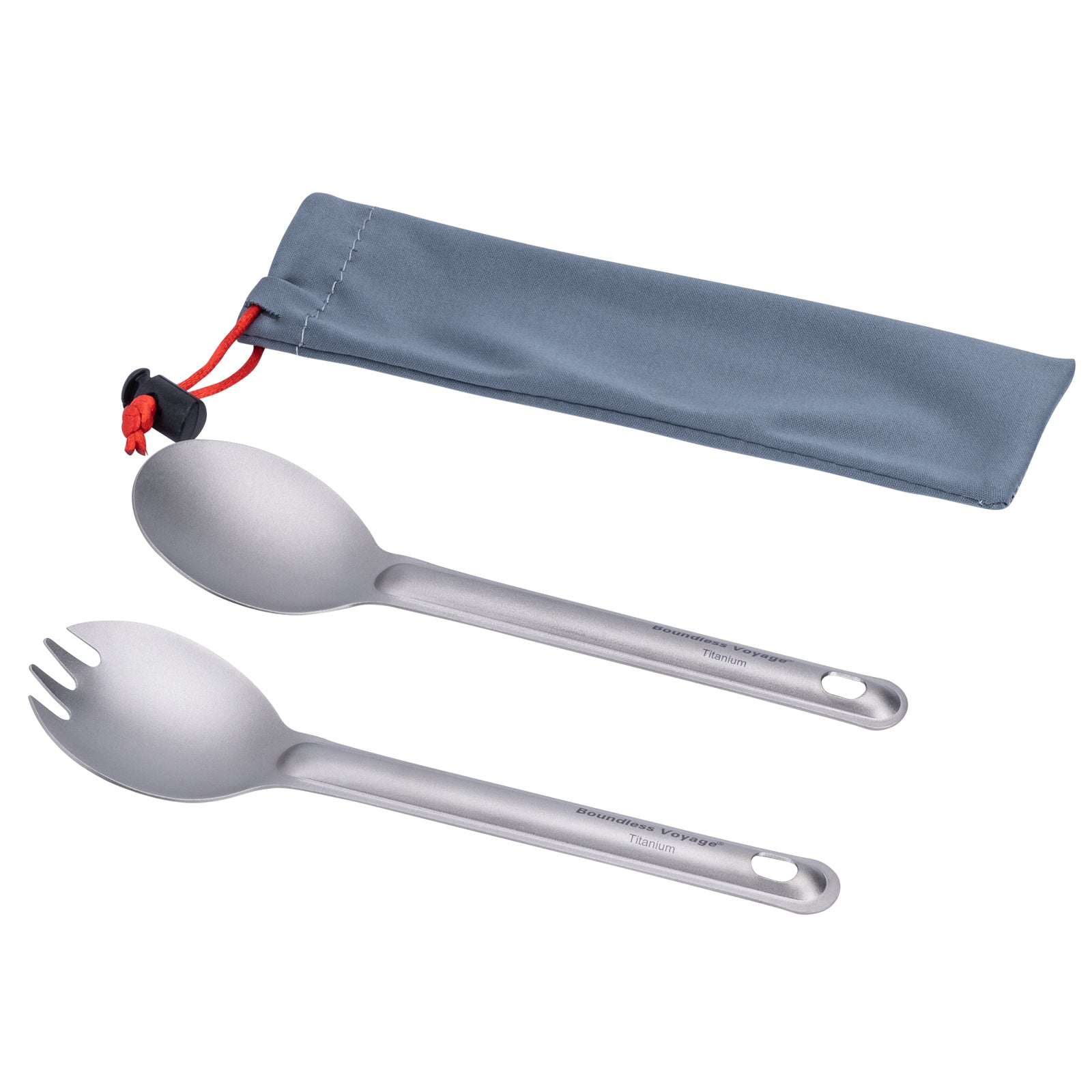 Boundless Voyage Titanium Spoon & Spork Set – Ultralight Camping Cutlery Set with Storage Bags for Travel & Outdoor Dining
