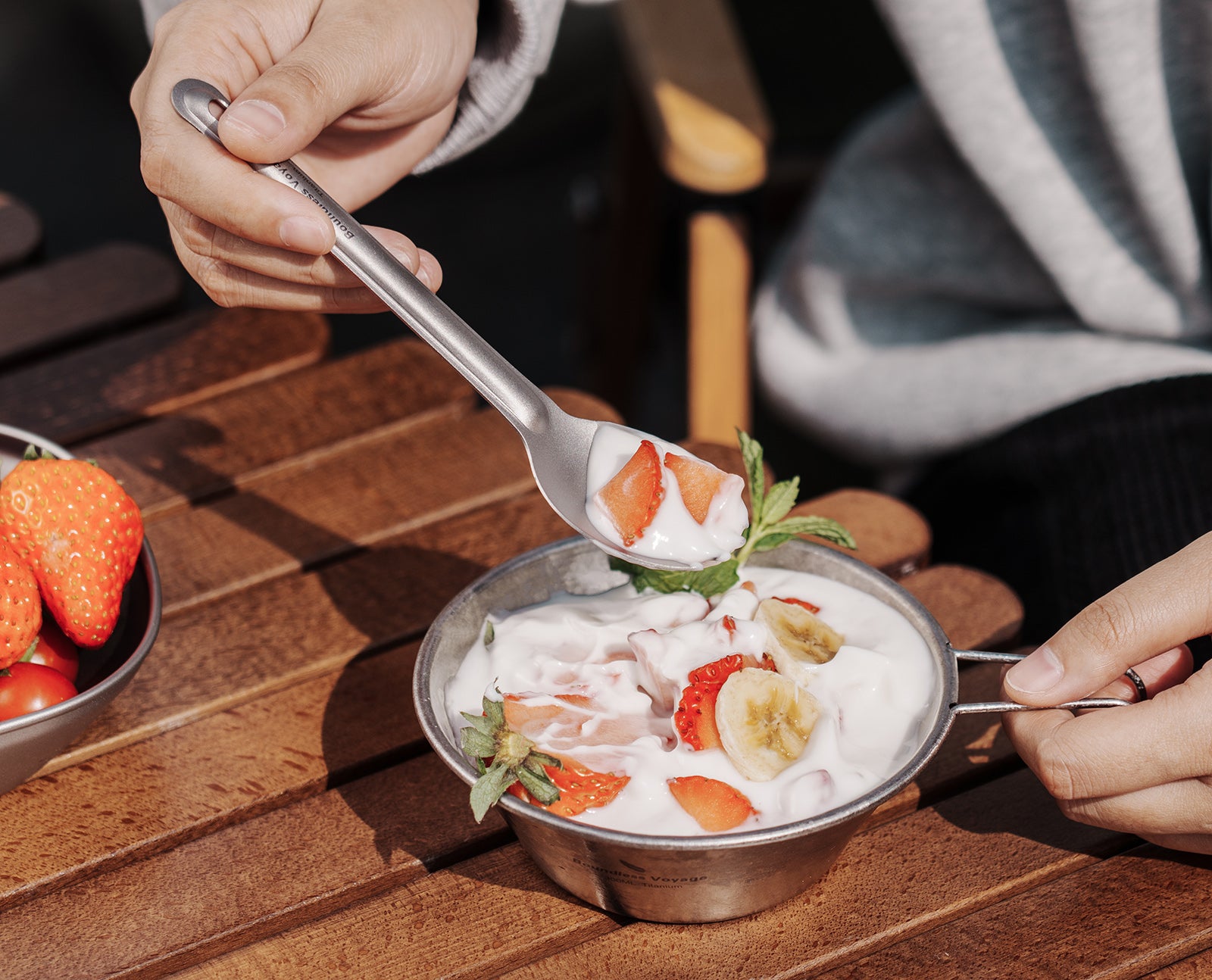 Use the spoon for traditional meals and the spork for minimalist convenience. -