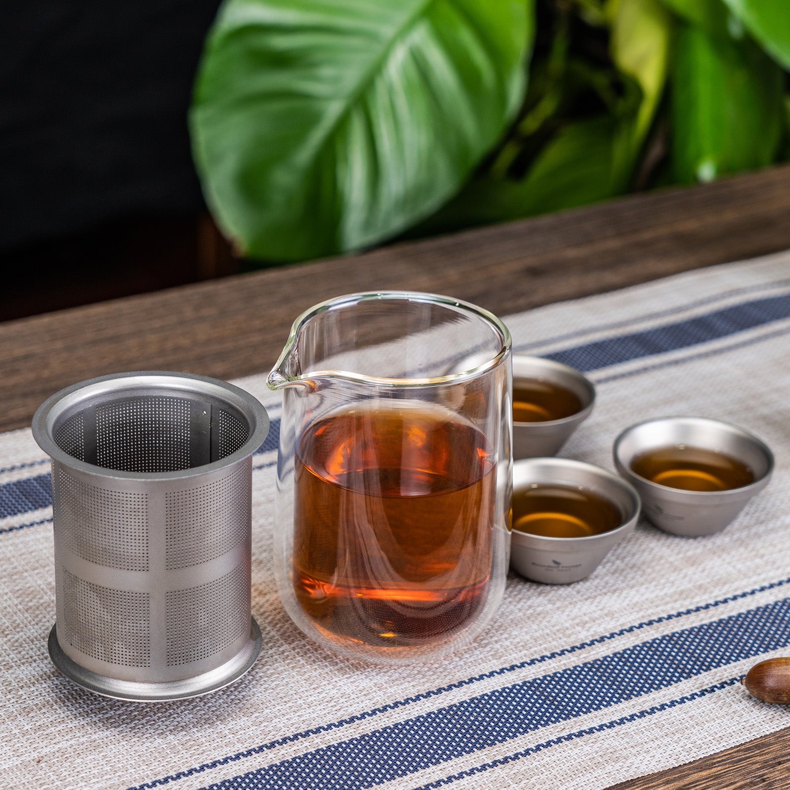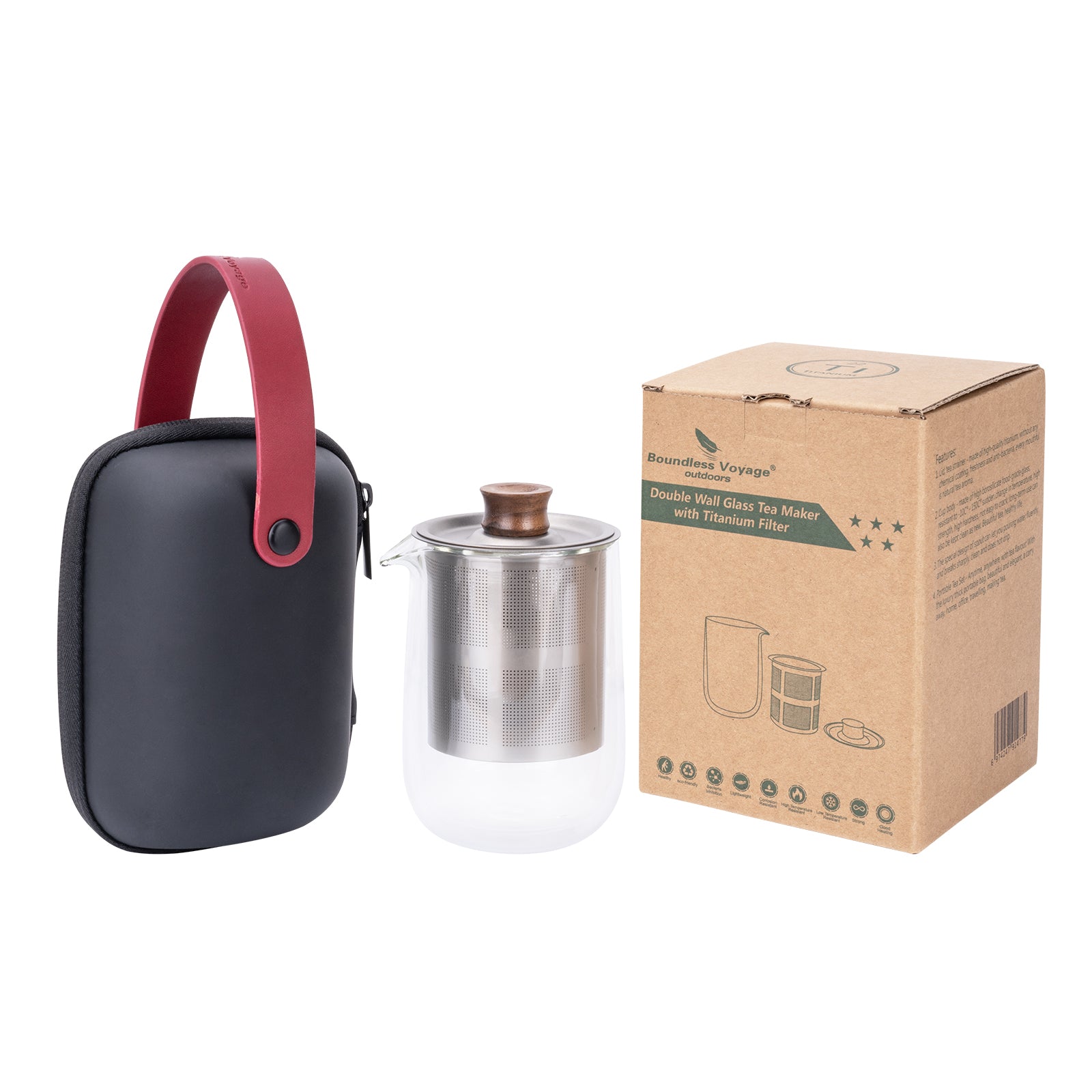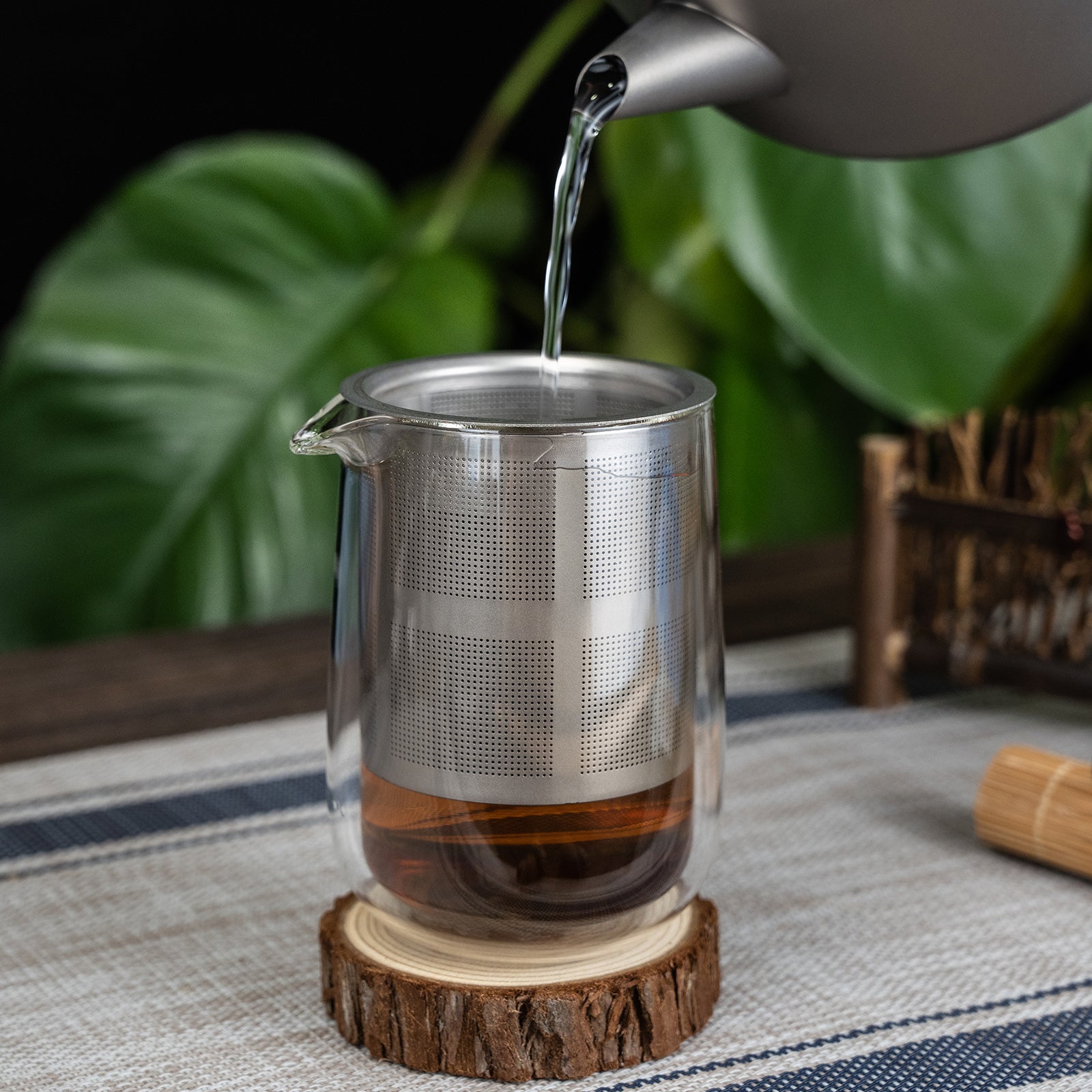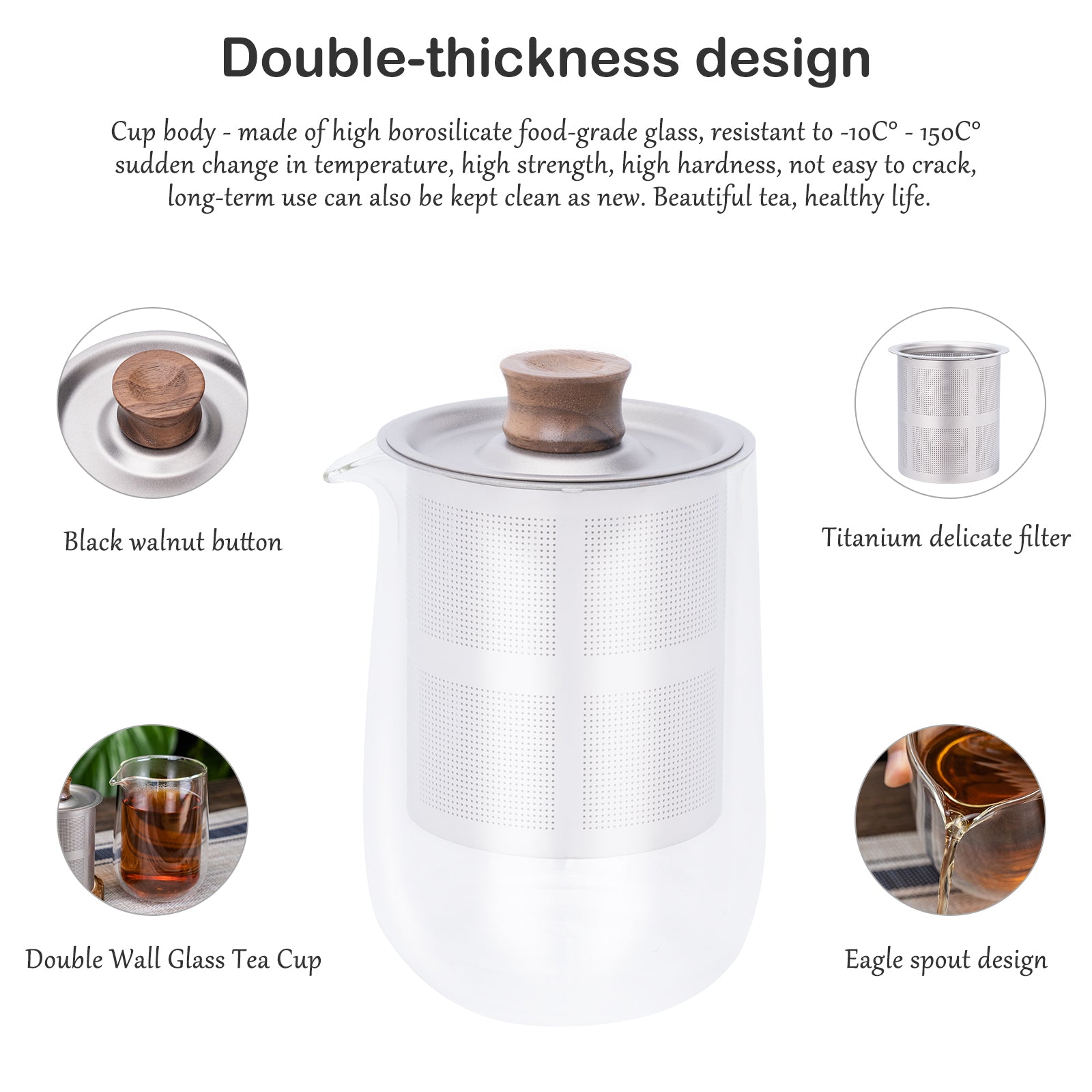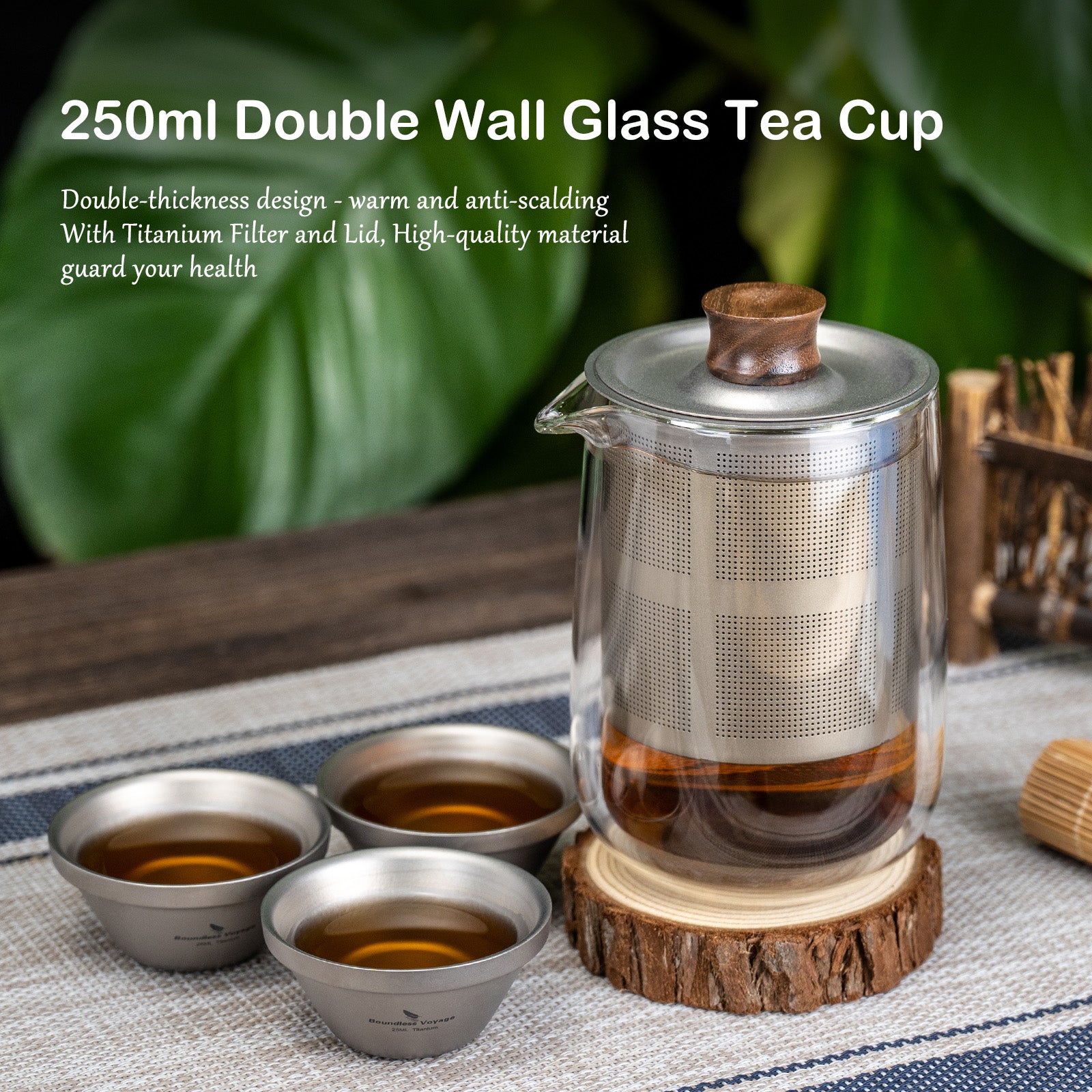 Boundless Voyage Double Wall Glass Tea Cup 250ml with Titanium Filter Lid Anti-scalding Coffee Mug Tea Maker for Camping Office Traveling Home Use