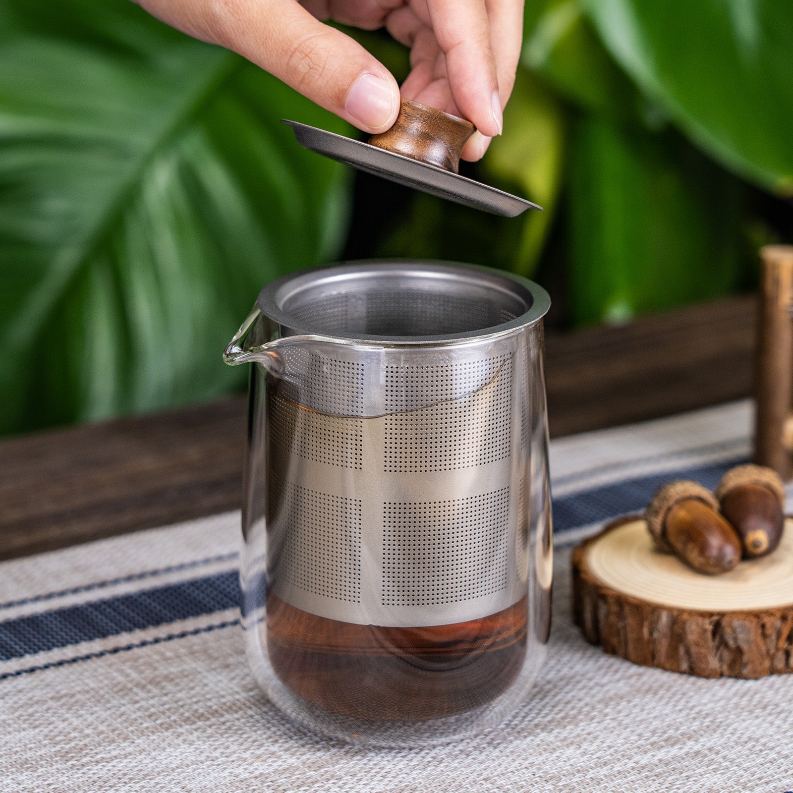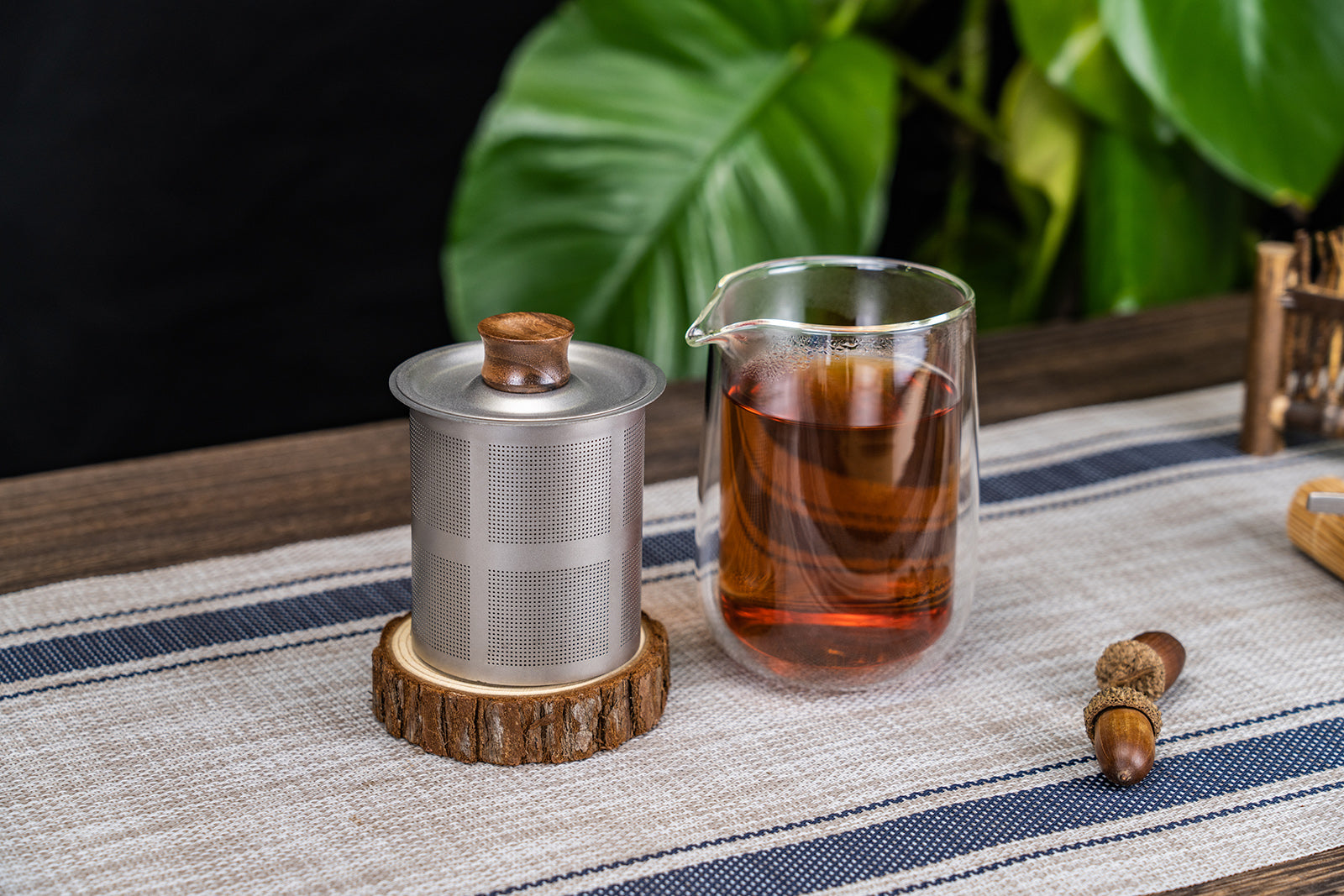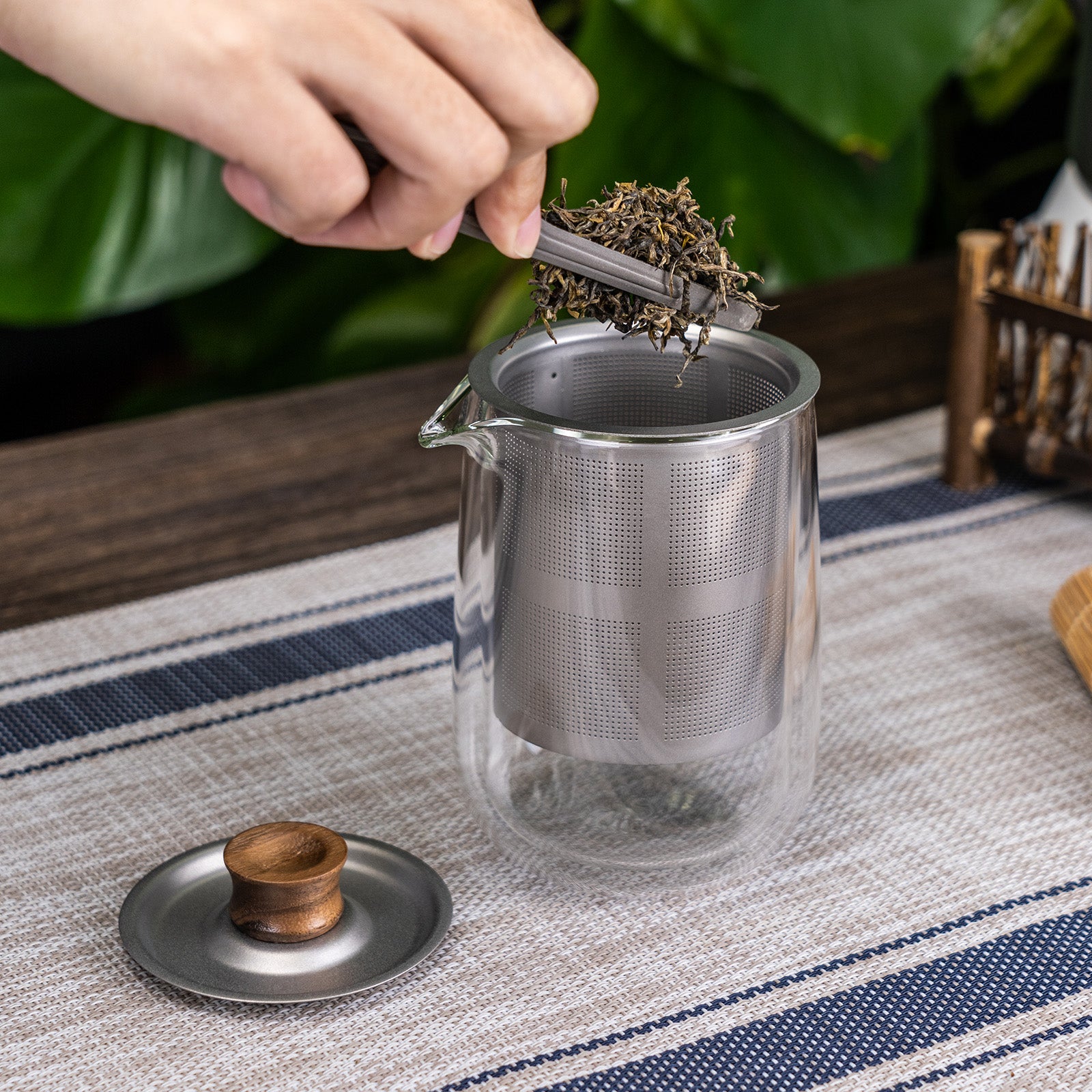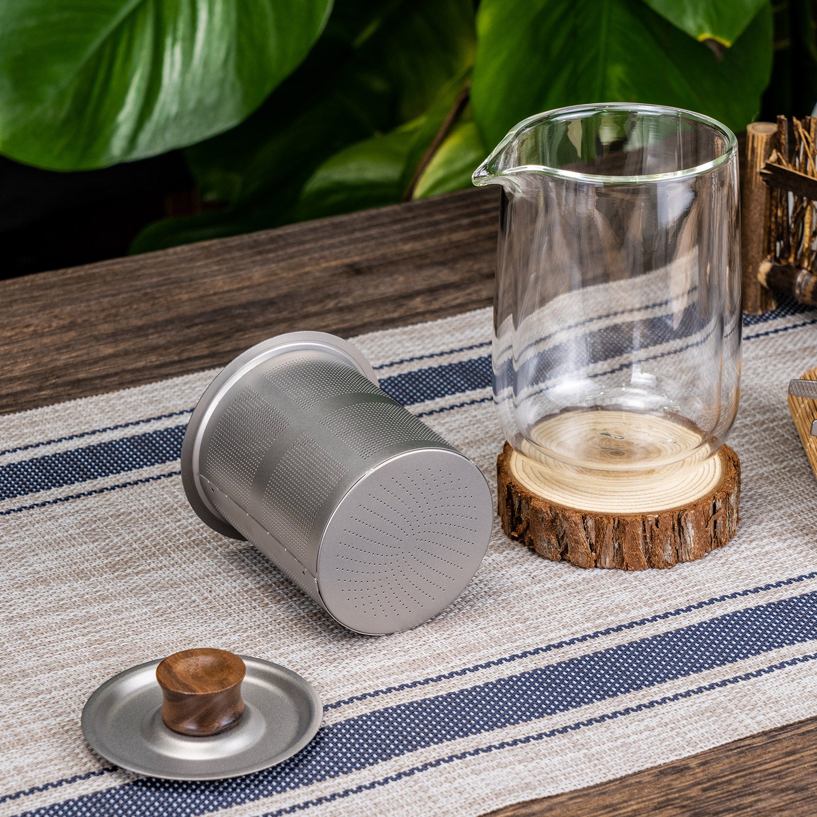 Boundless Voyage Double Wall Glass Tea Cup 250ml with Titanium Filter Lid Anti-scalding Coffee Mug Tea Maker for Camping Office Traveling Home Use