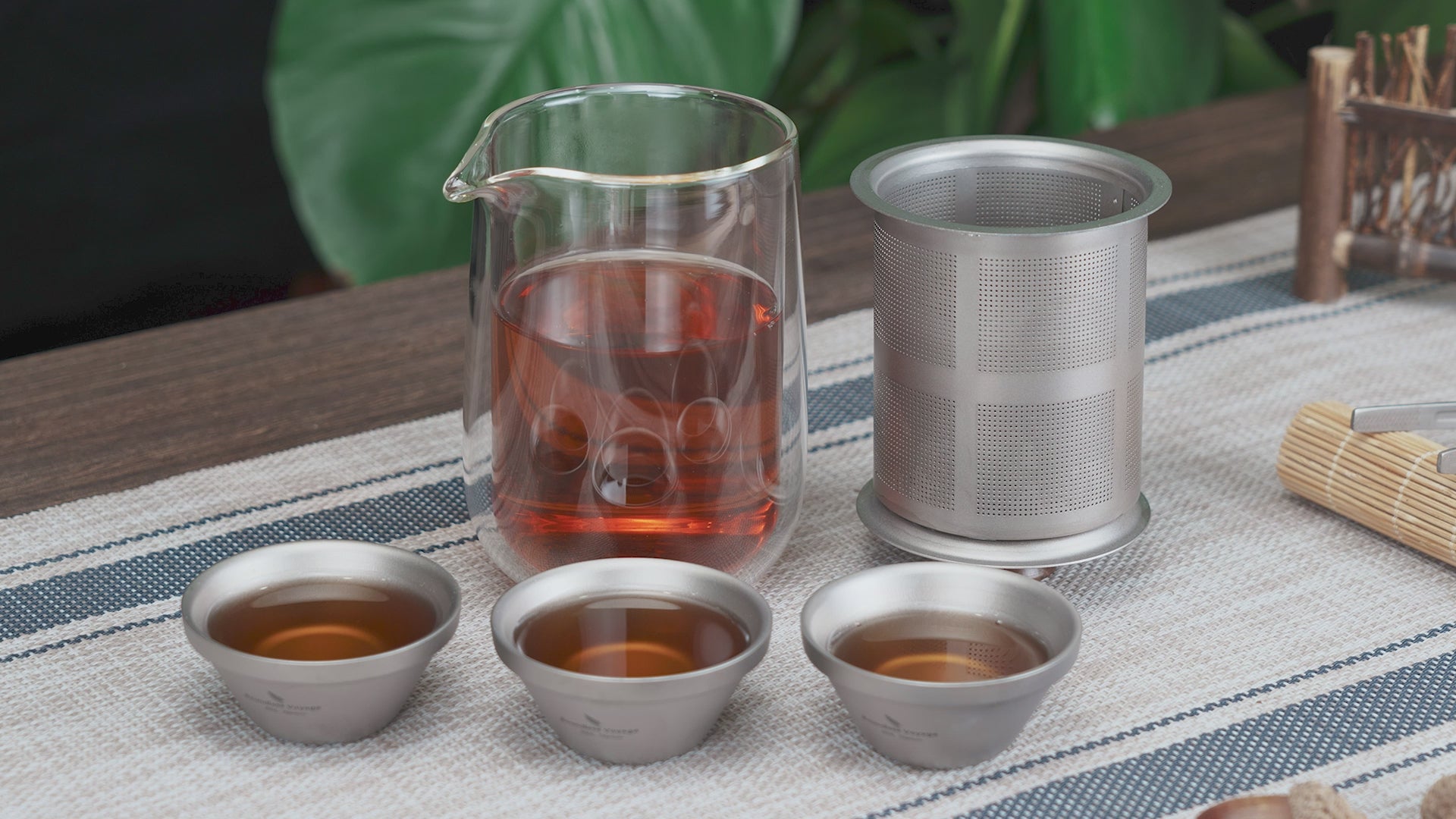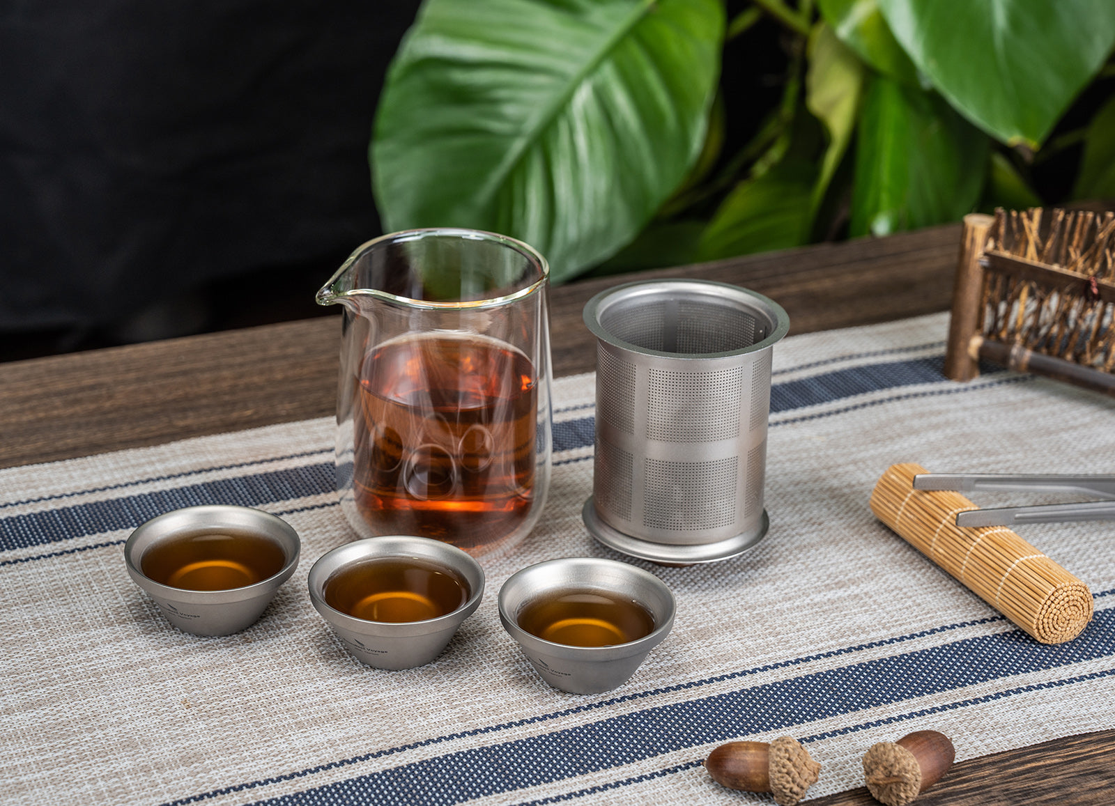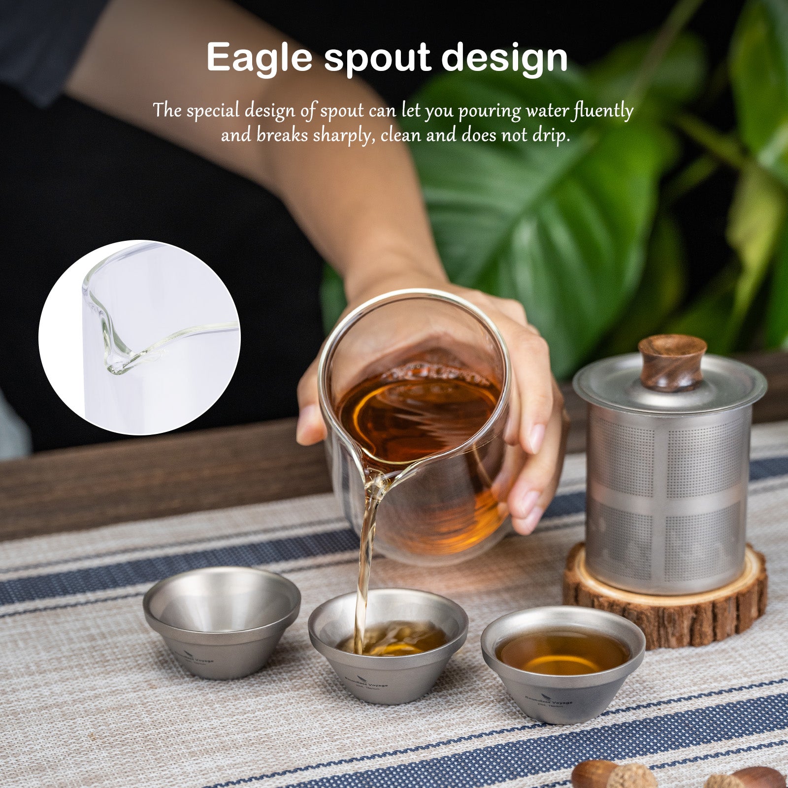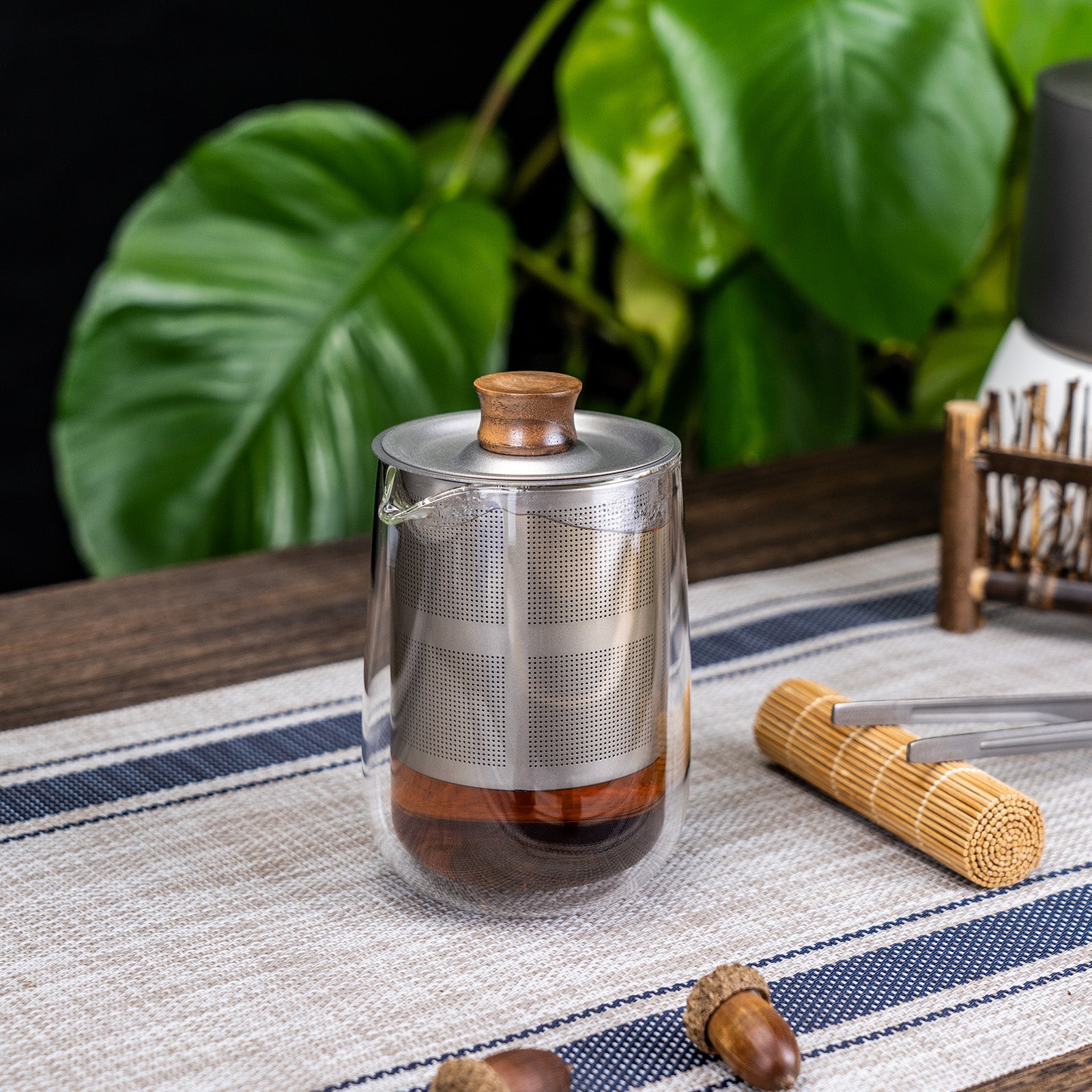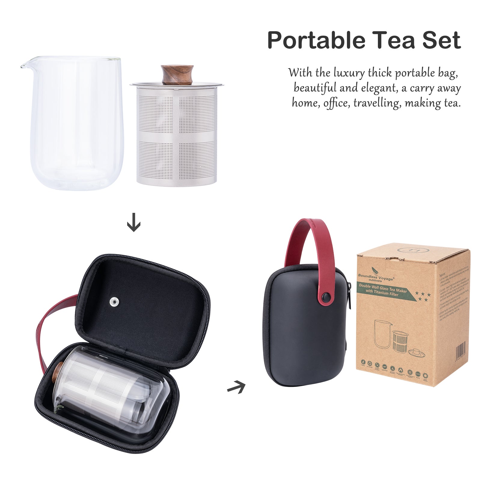 Boundless Voyage Double Wall Glass Tea Cup 250ml with Titanium Filter Lid Anti-scalding Coffee Mug Tea Maker for Camping Office Traveling Home Use