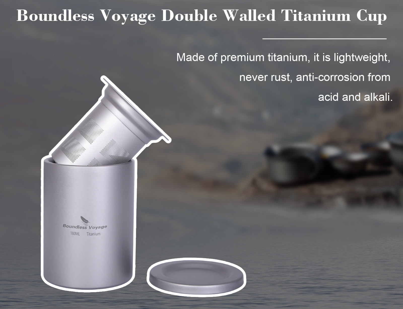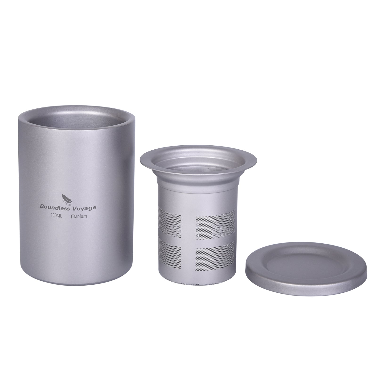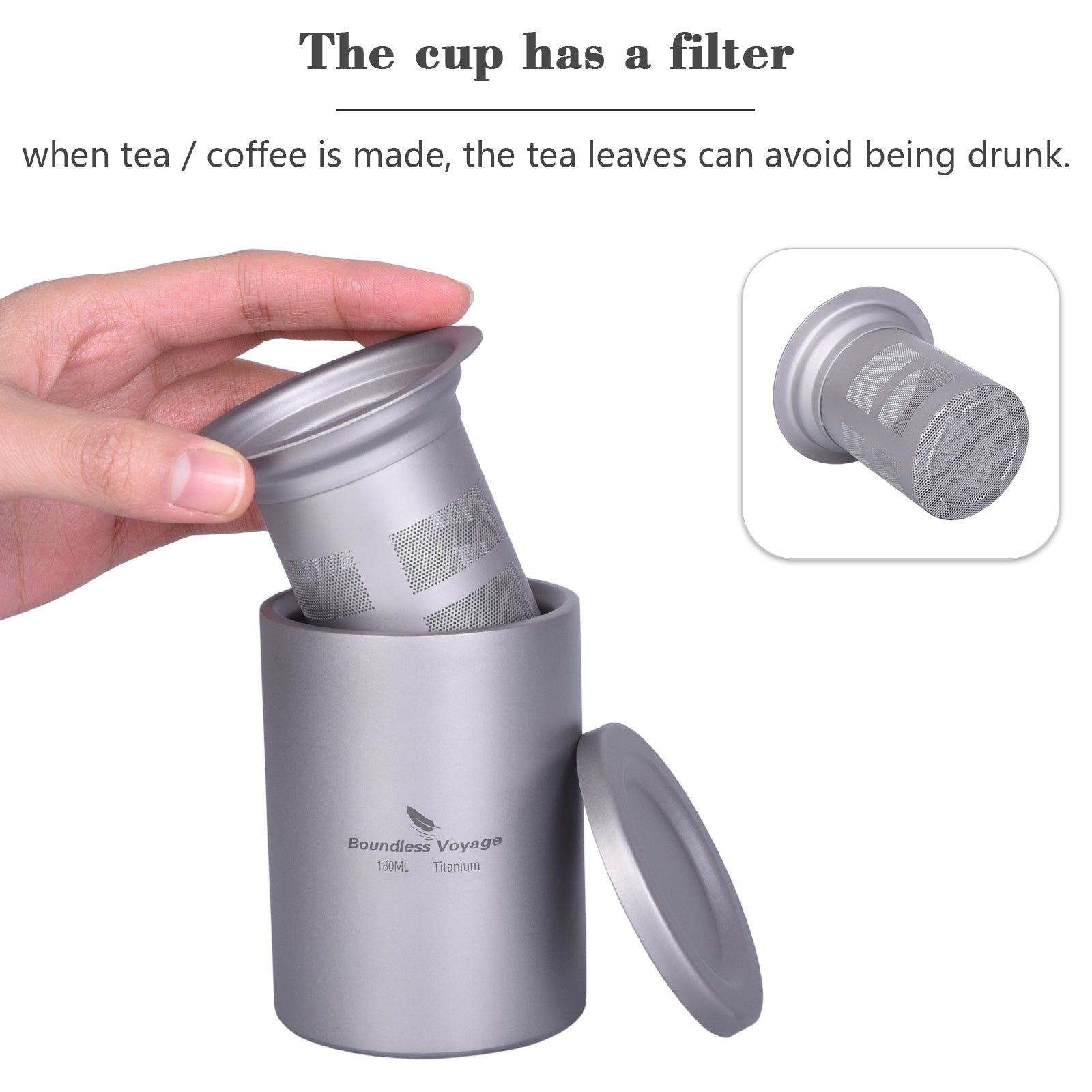 Boundless Voyage Double Walled Titanium Cup with Filter Lid Outdoor Tea Coffee Water Mug Drinkware 180ml