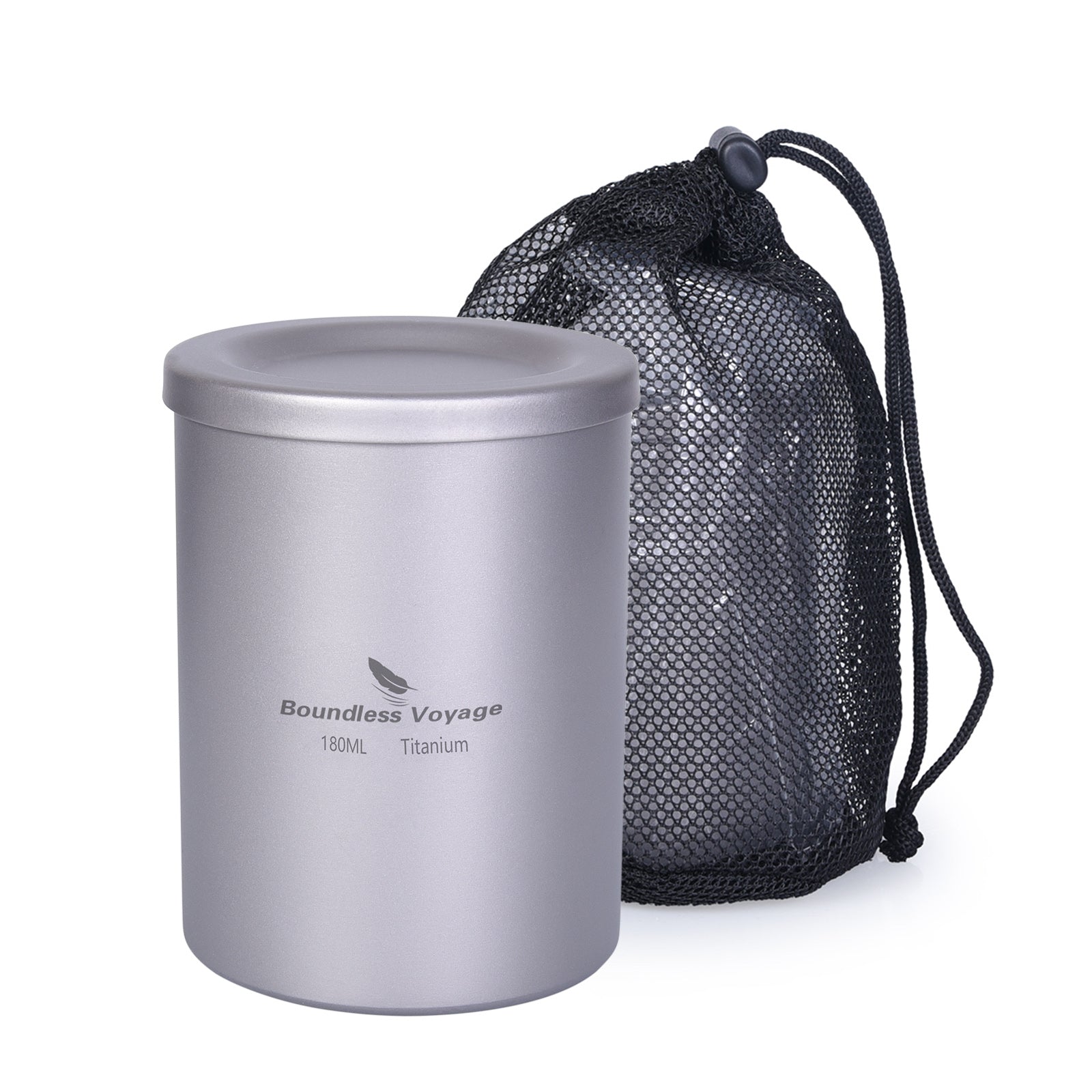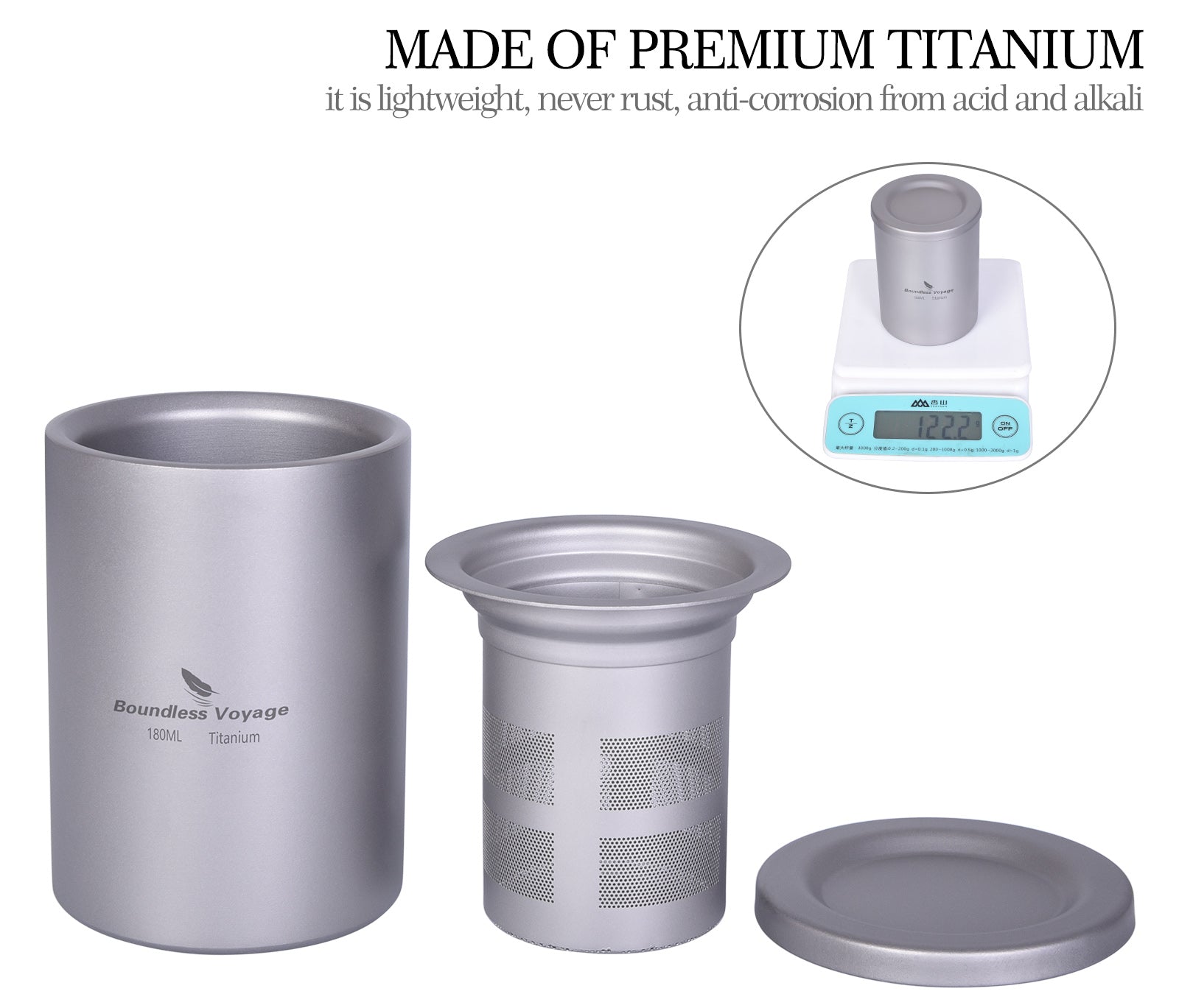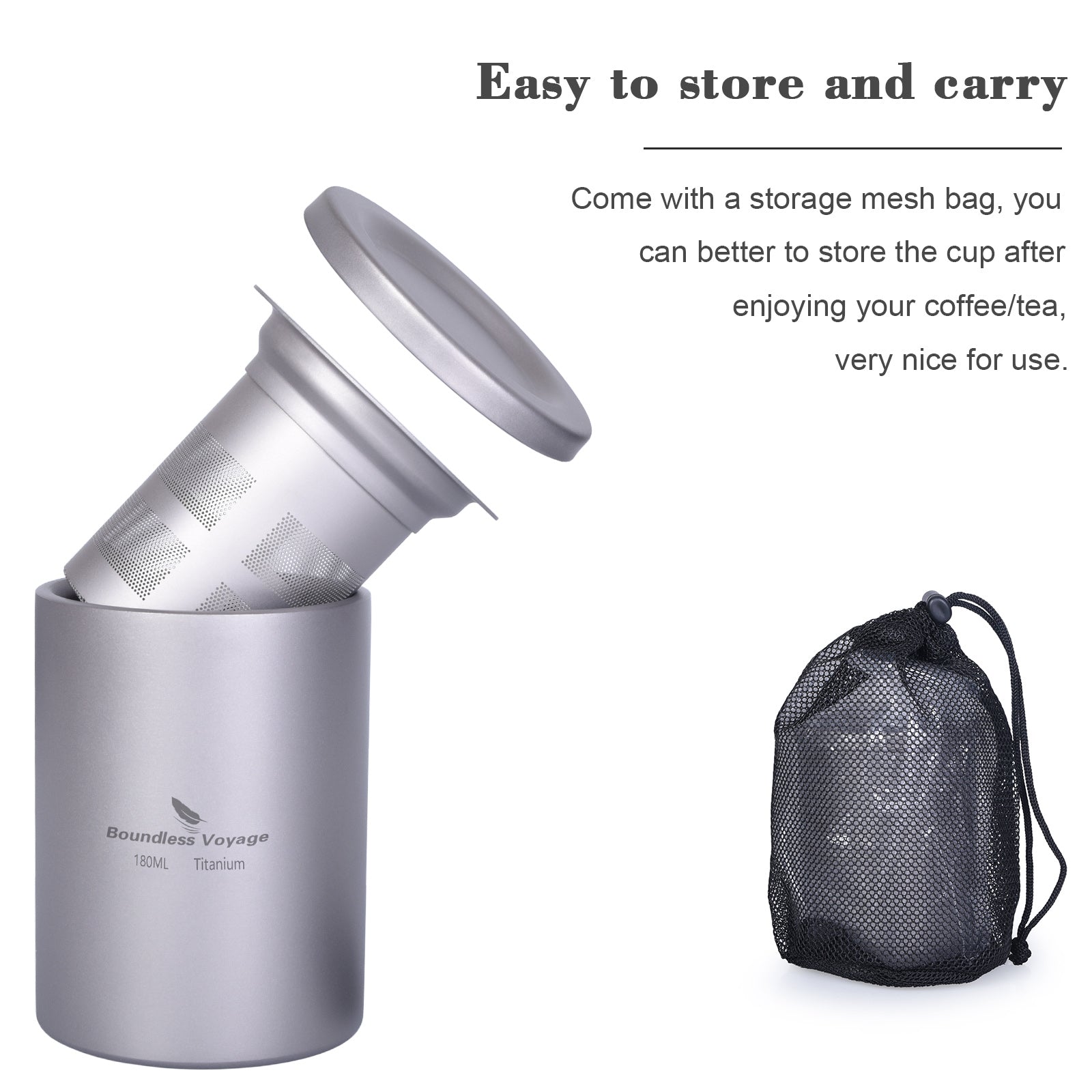 Boundless Voyage Double Walled Titanium Cup with Filter Lid Outdoor Tea Coffee Water Mug Drinkware 180ml