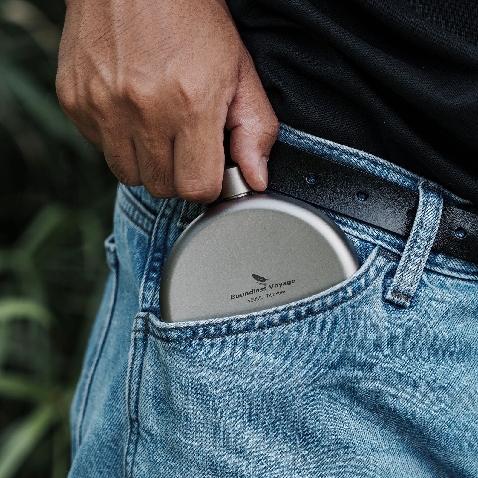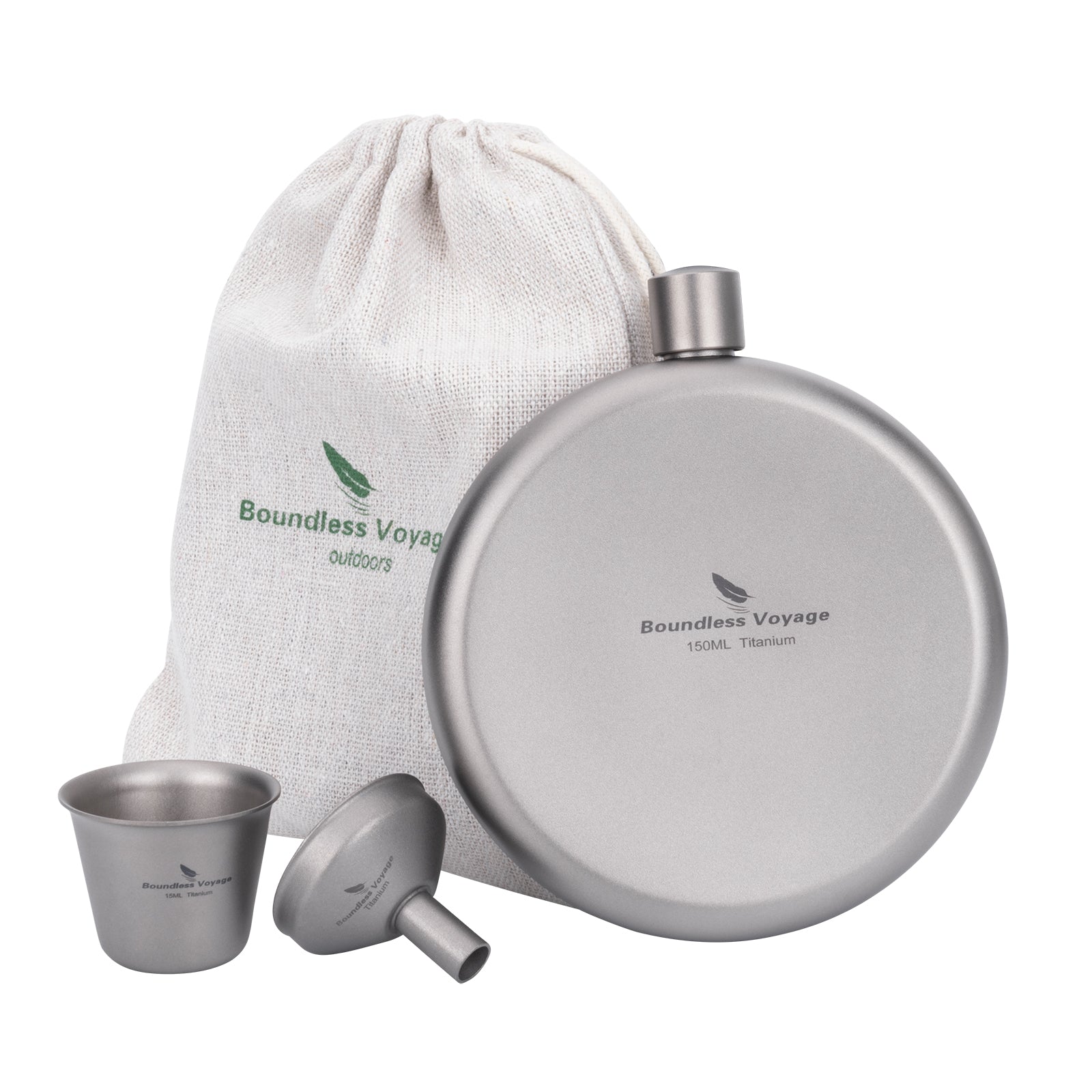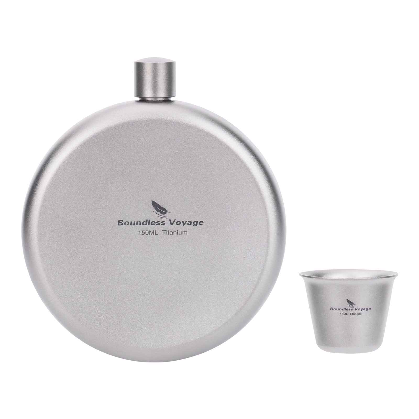 Boundless Voyage 150ml Titanium Hip Flask Set with Funnel & Shot Cup – Ultralight TA1 Titanium Whiskey Flask, Leakproof Pocket Liquor Bottle for Camping, Travel & Gifts