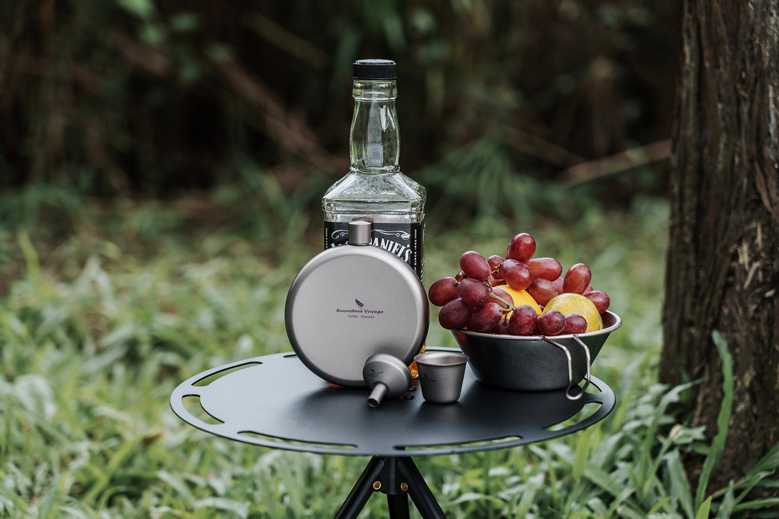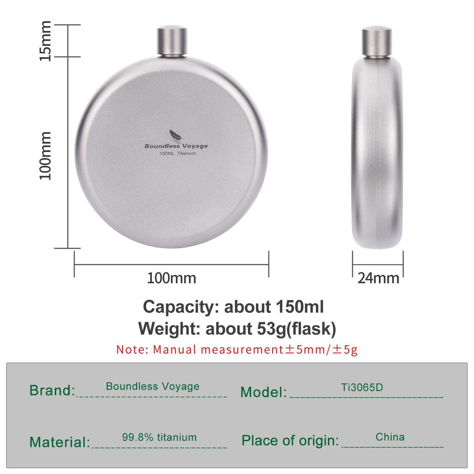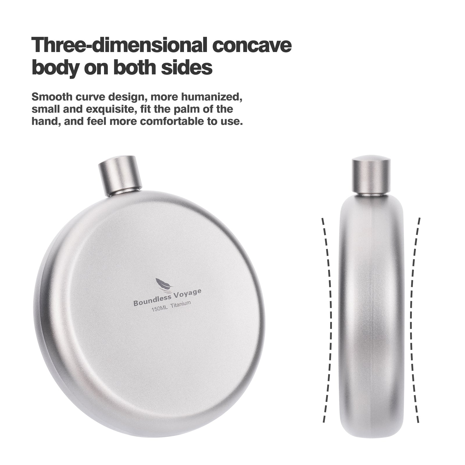 Boundless Voyage 150ml Titanium Hip Flask Set with Funnel & Shot Cup – Ultralight TA1 Titanium Whiskey Flask, Leakproof Pocket Liquor Bottle for Camping, Travel & Gifts