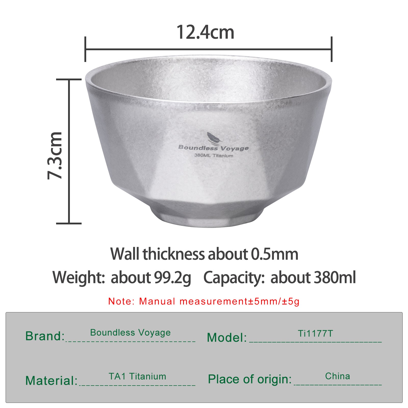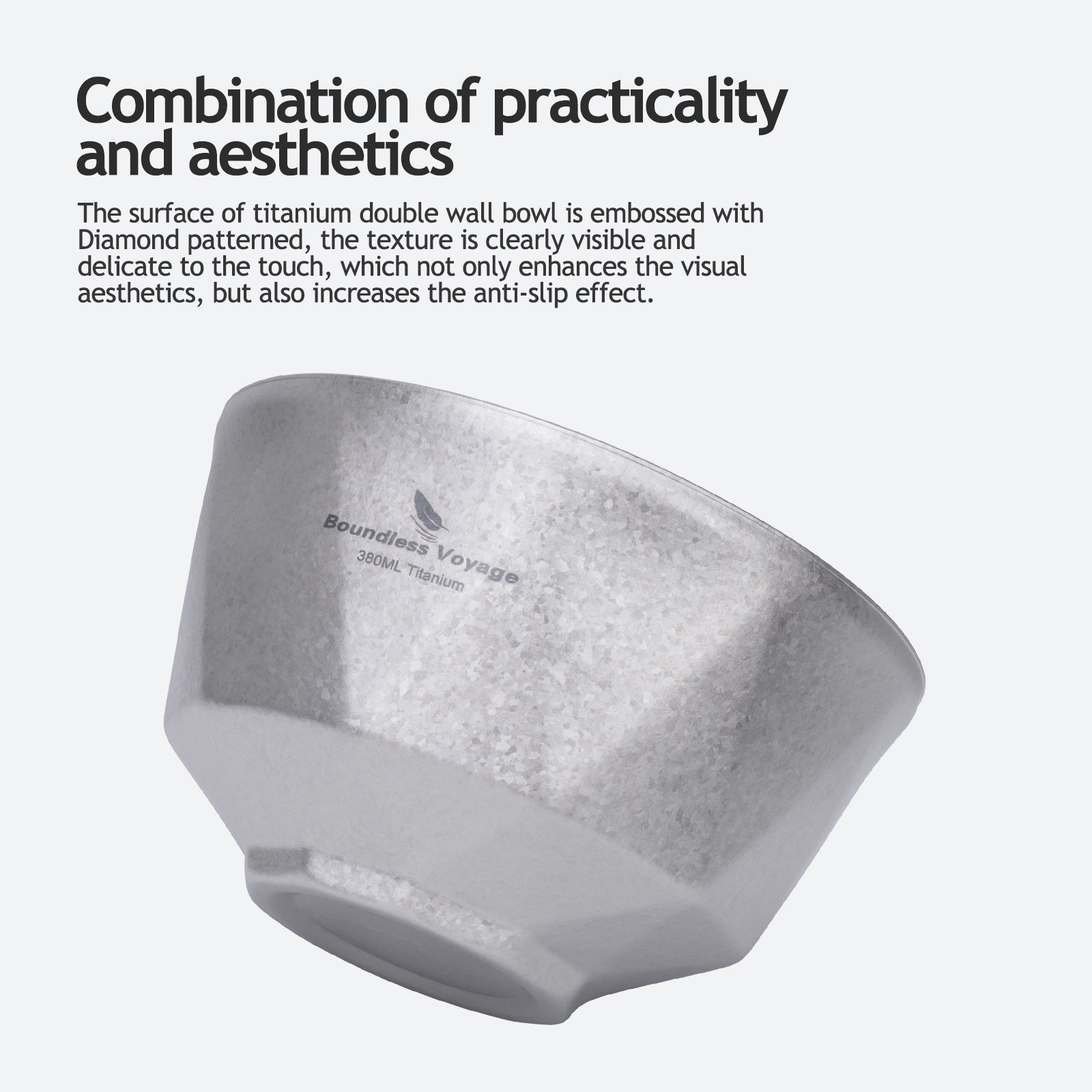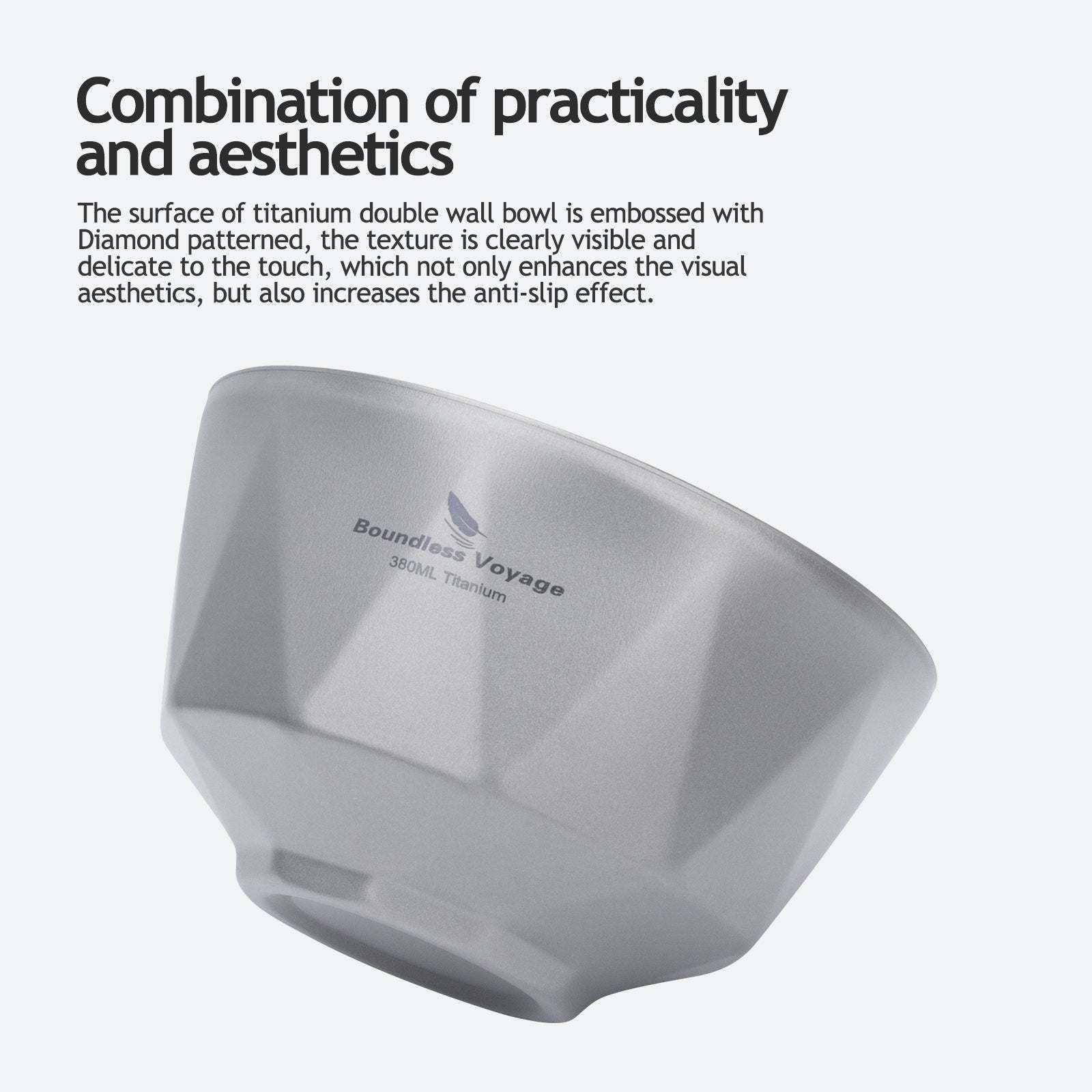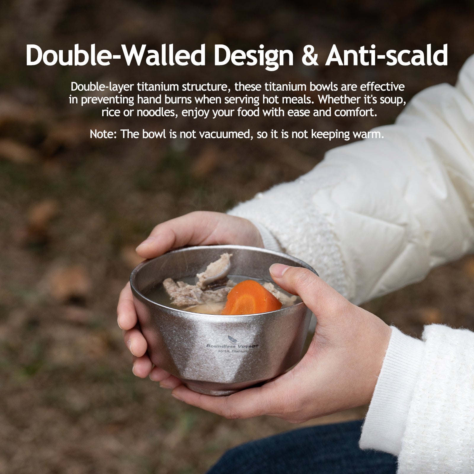 Boundless Voyage Titanium Double-Wall Bowl 380ml – Ultralight Insulated Serving Bowl for Rice, Soup & Camping