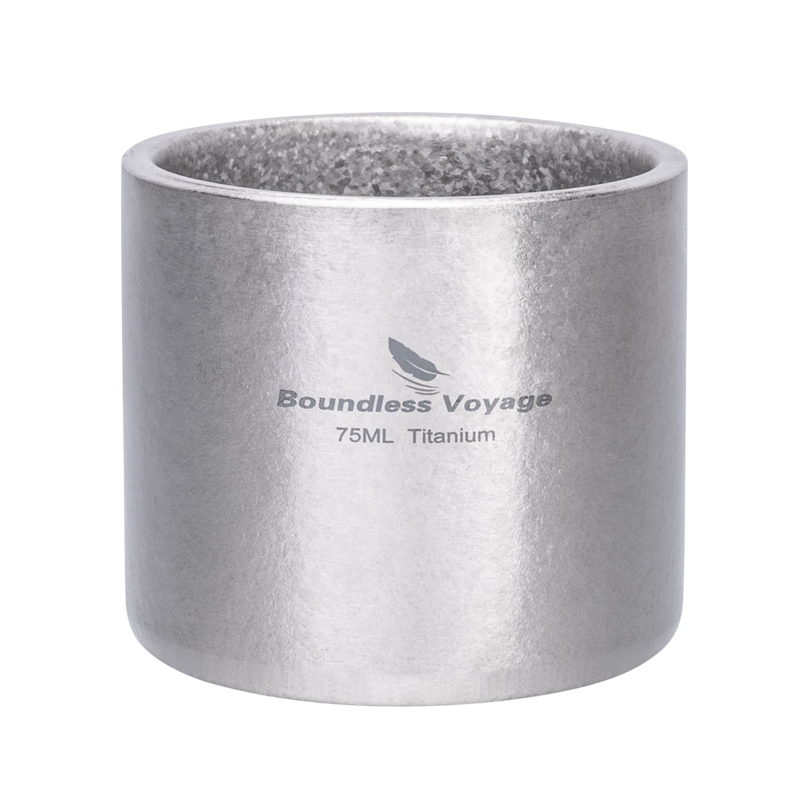 Boundless Voyage 75ml Titanium Double-Wall Mug – Ultralight Heat-Resistant Camping Cup with Storage Bag for Coffee & Tea