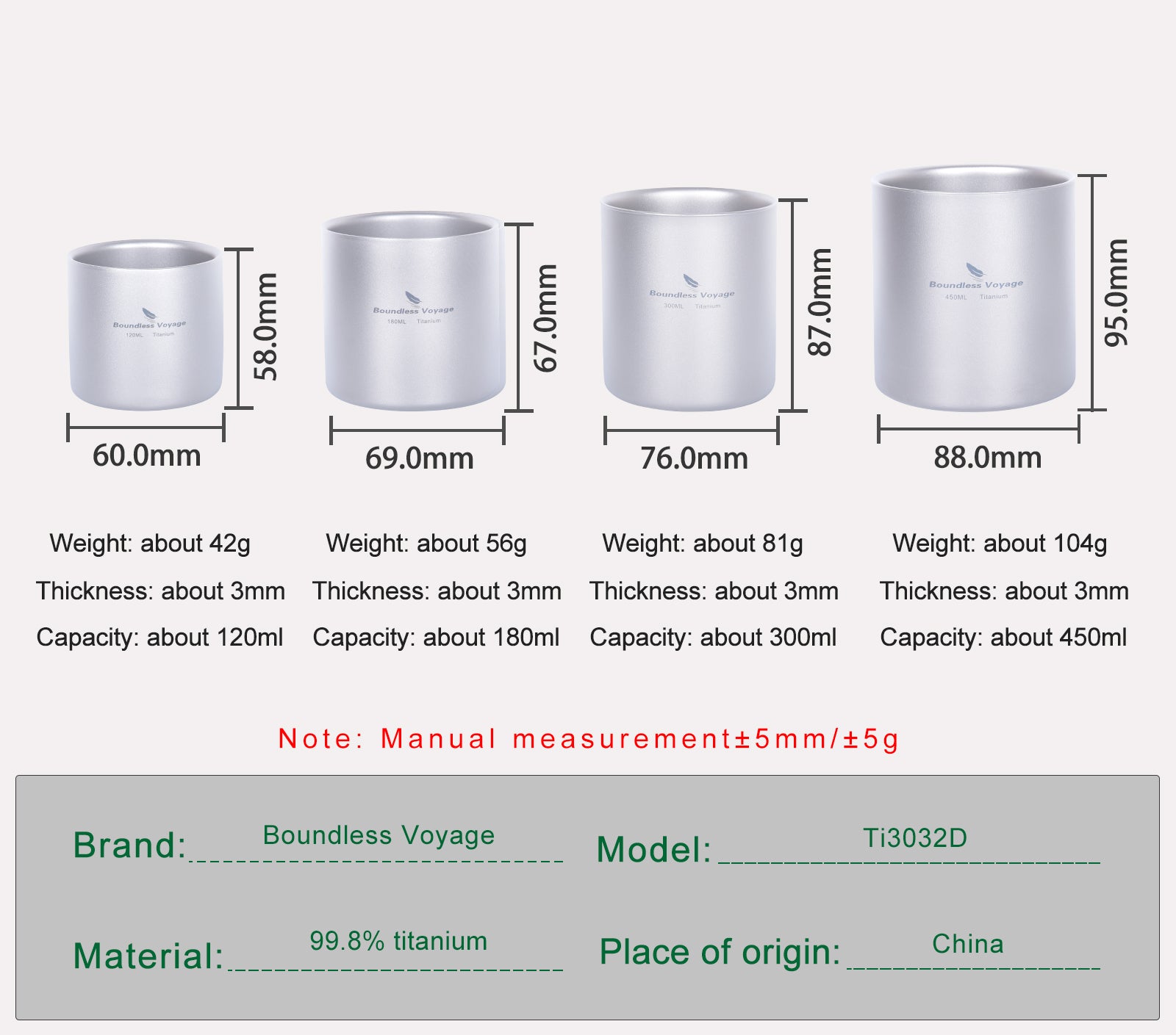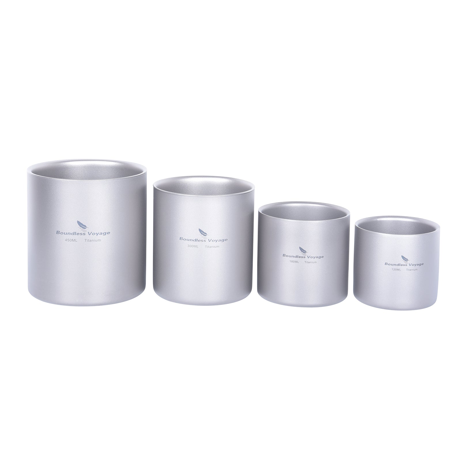 Boundless Voyage 4-Piece Double-Walled Titanium Cup Set | 120ml-450ml Ultralight Insulated Mugs | Anti-Scalding Nesting Cup Set for Camping & Office