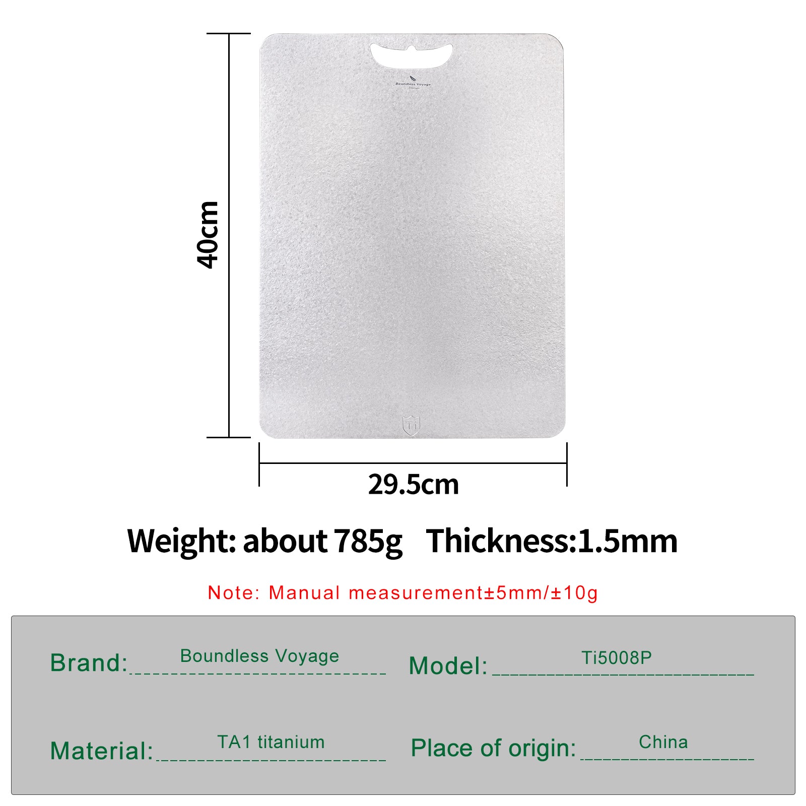 Boundless Voyage Titanium Cutting Board – Large Metal Chopping Board for Kitchen, Camping & Outdoor Cooking