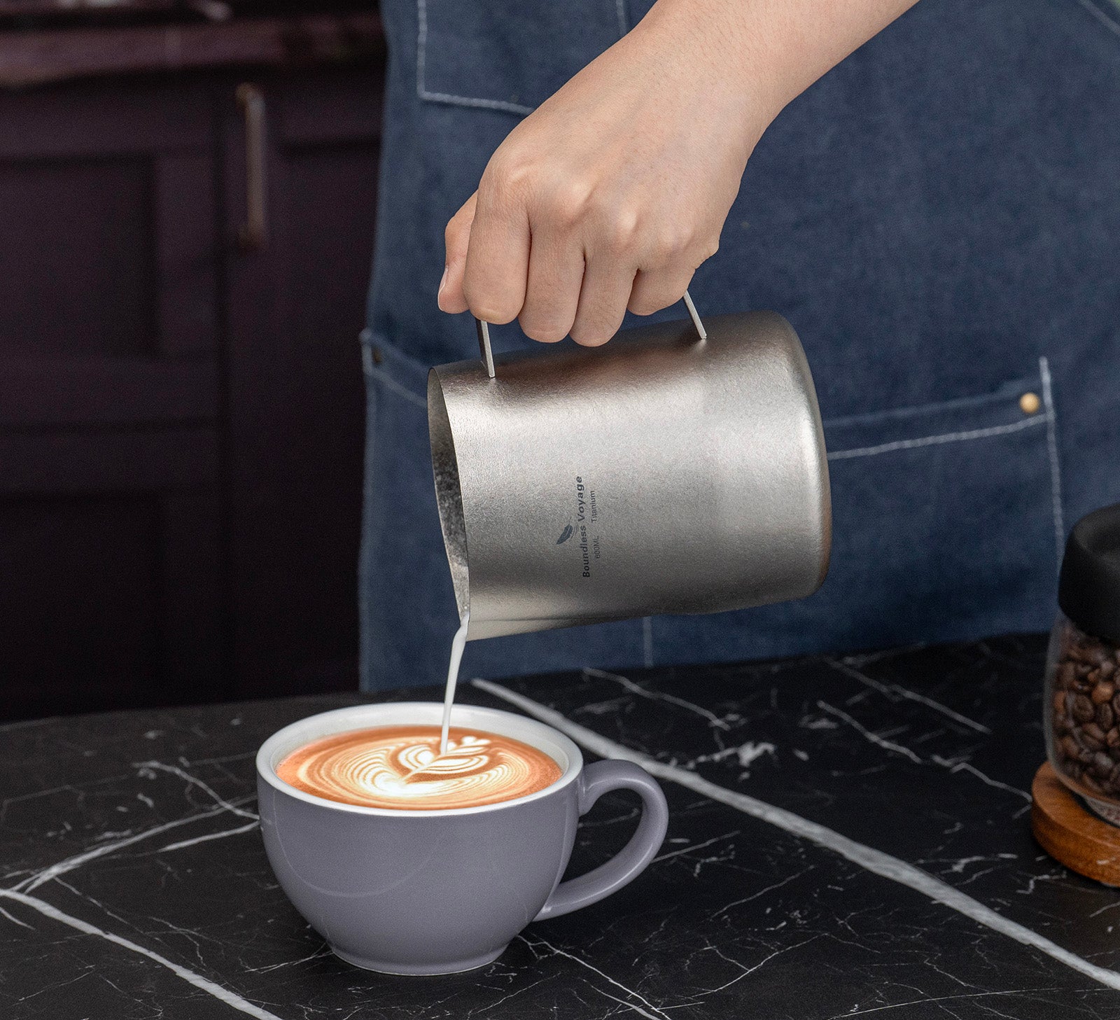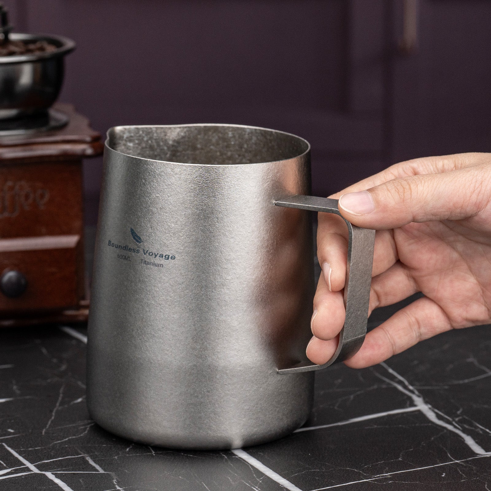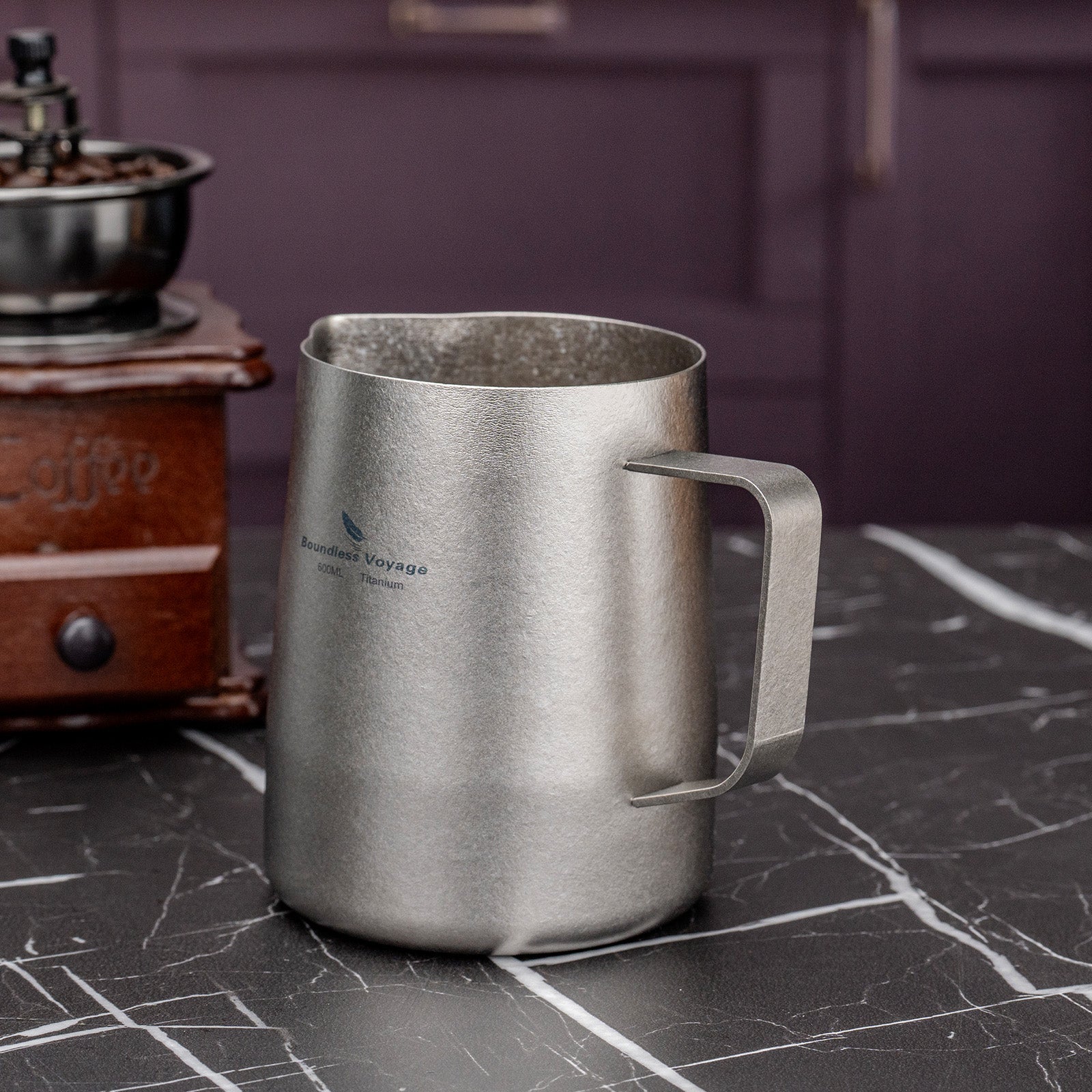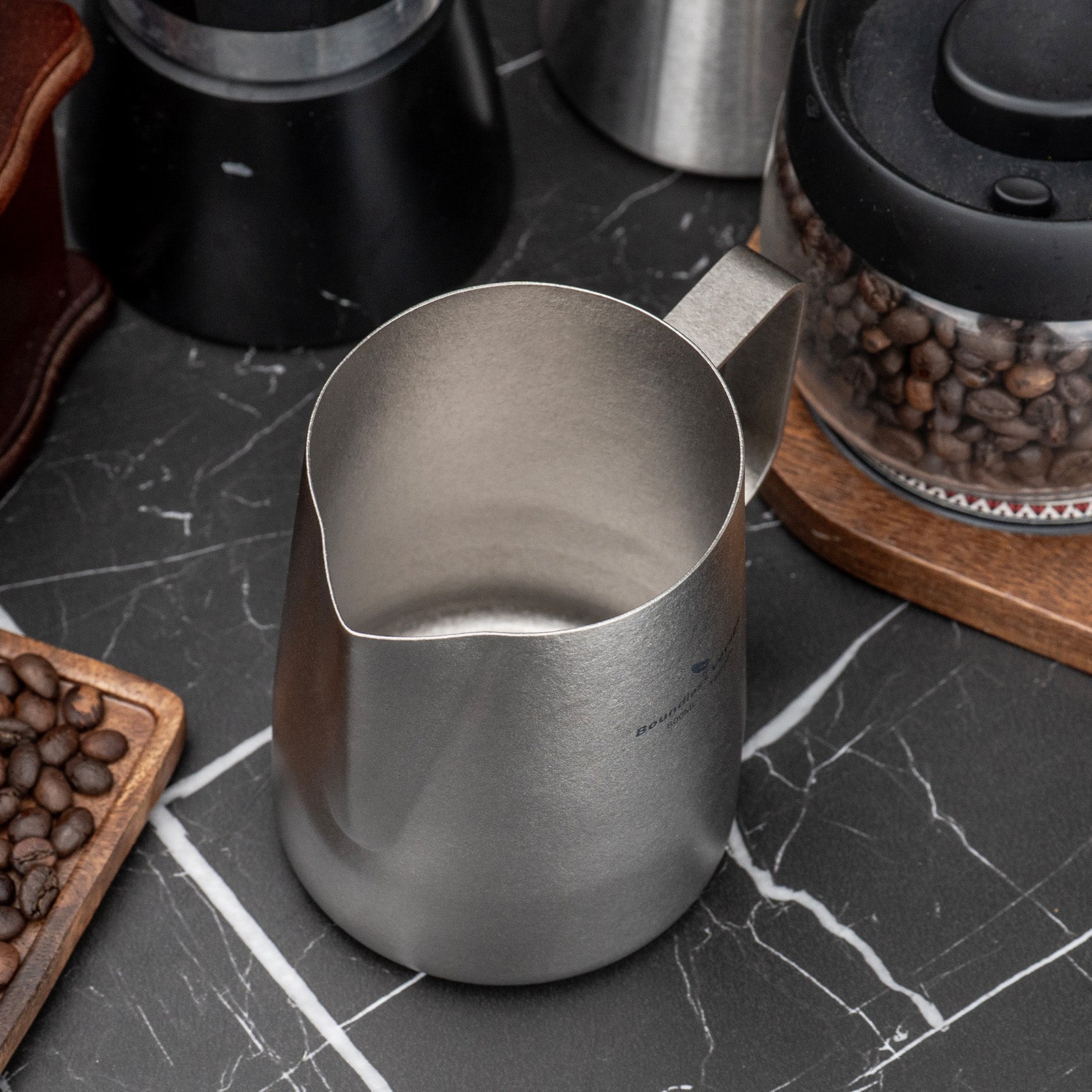 Boundless Voyage Titanium Espresso Steaming Pitcher – Milk Frother Cup with Round Spout for Barista Latte Art & Coffee