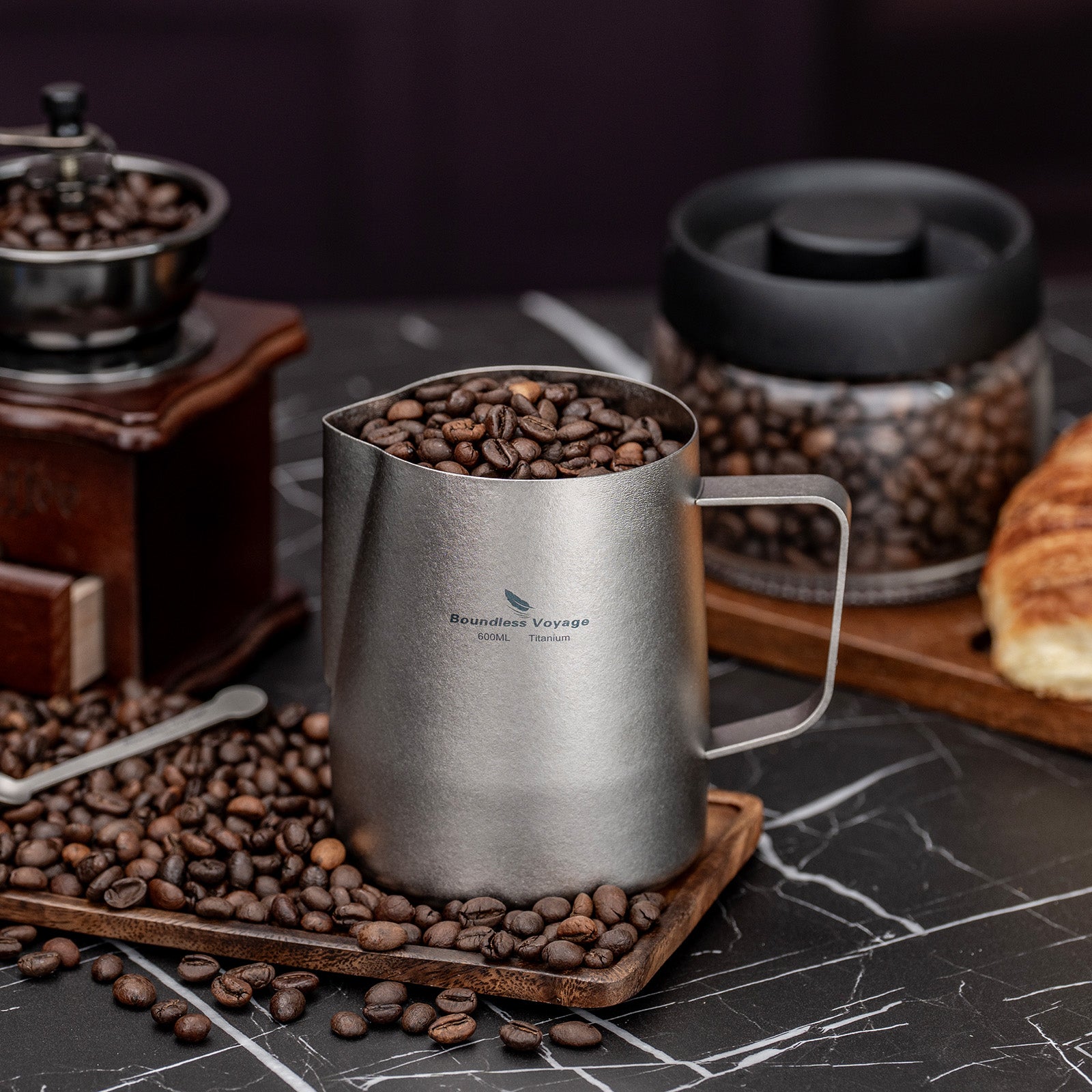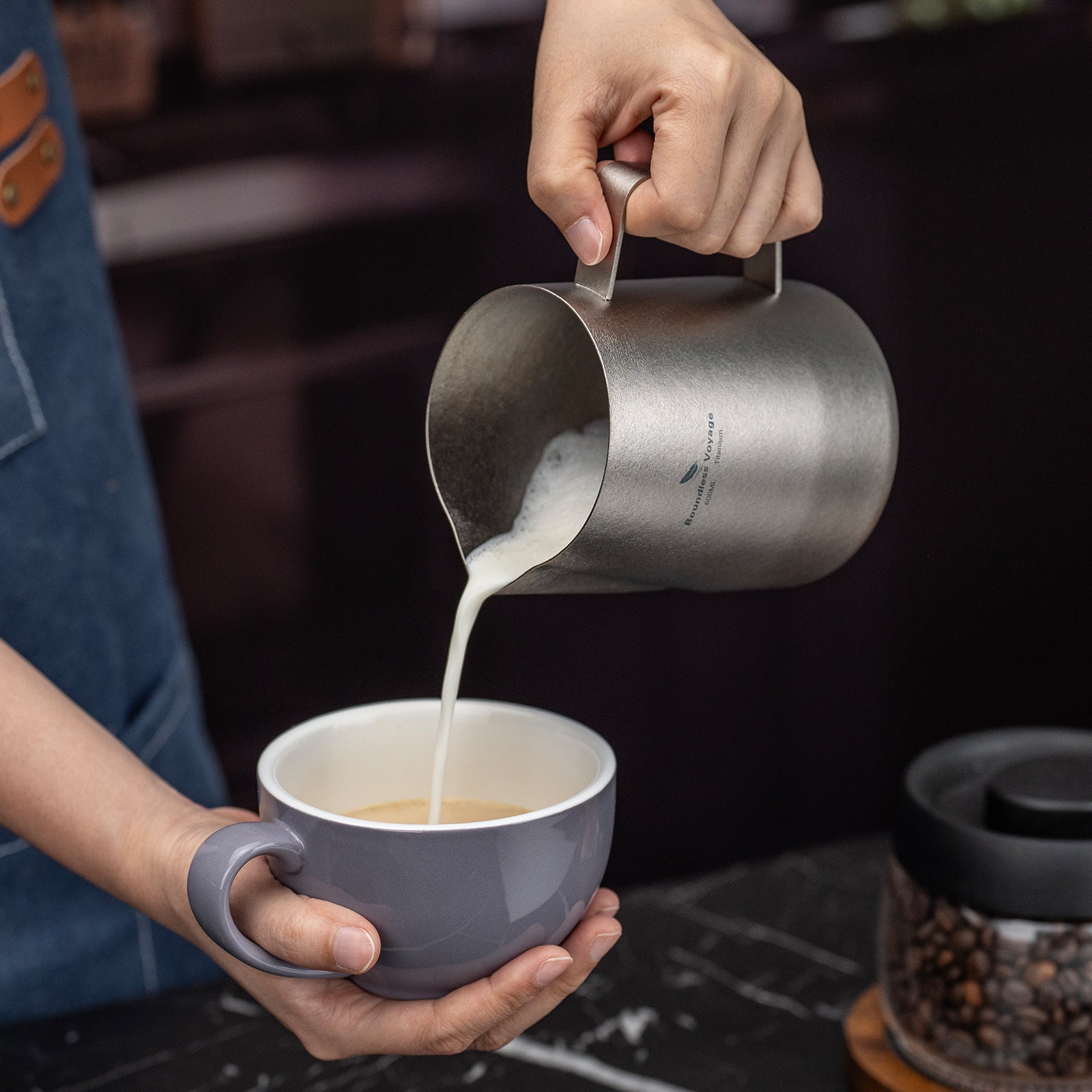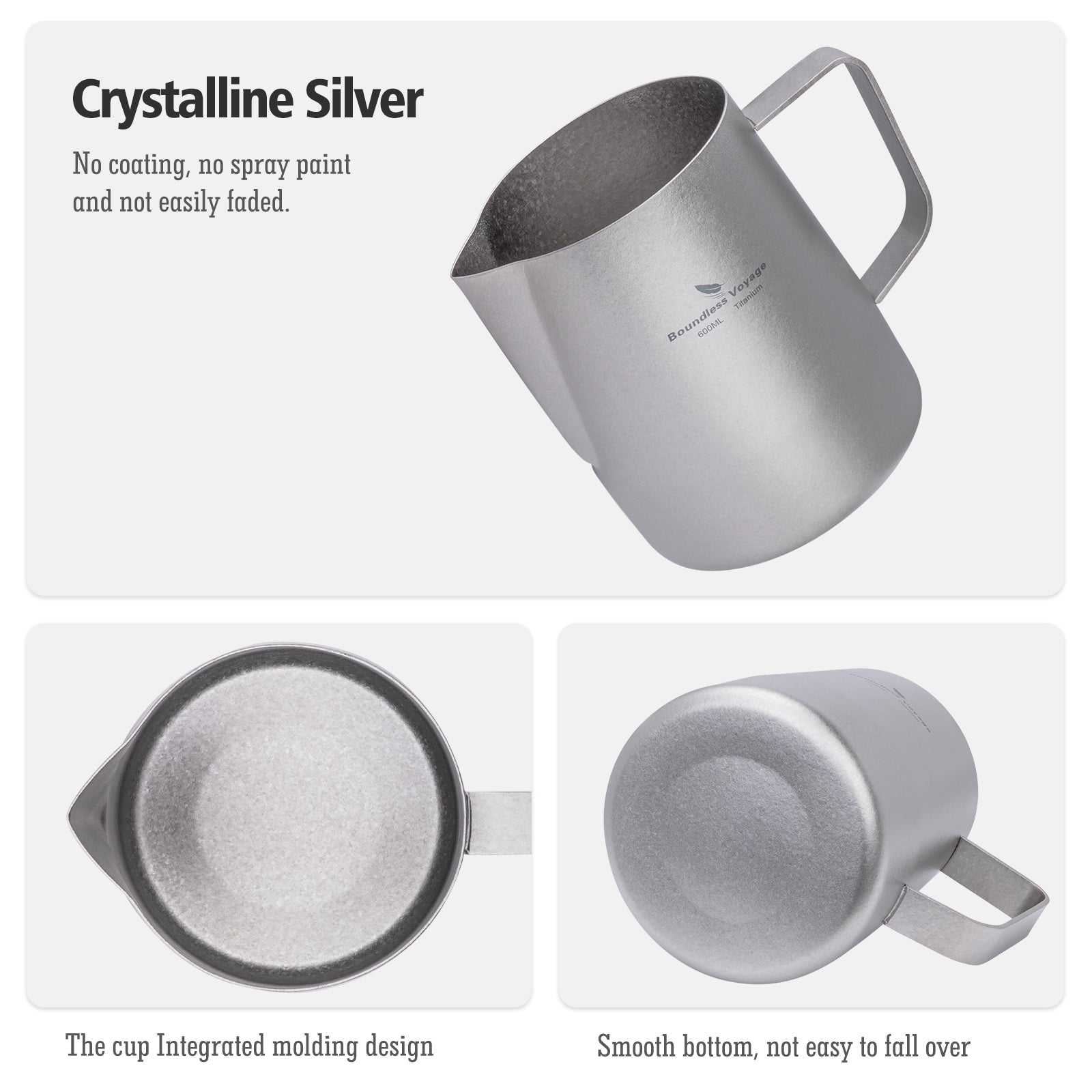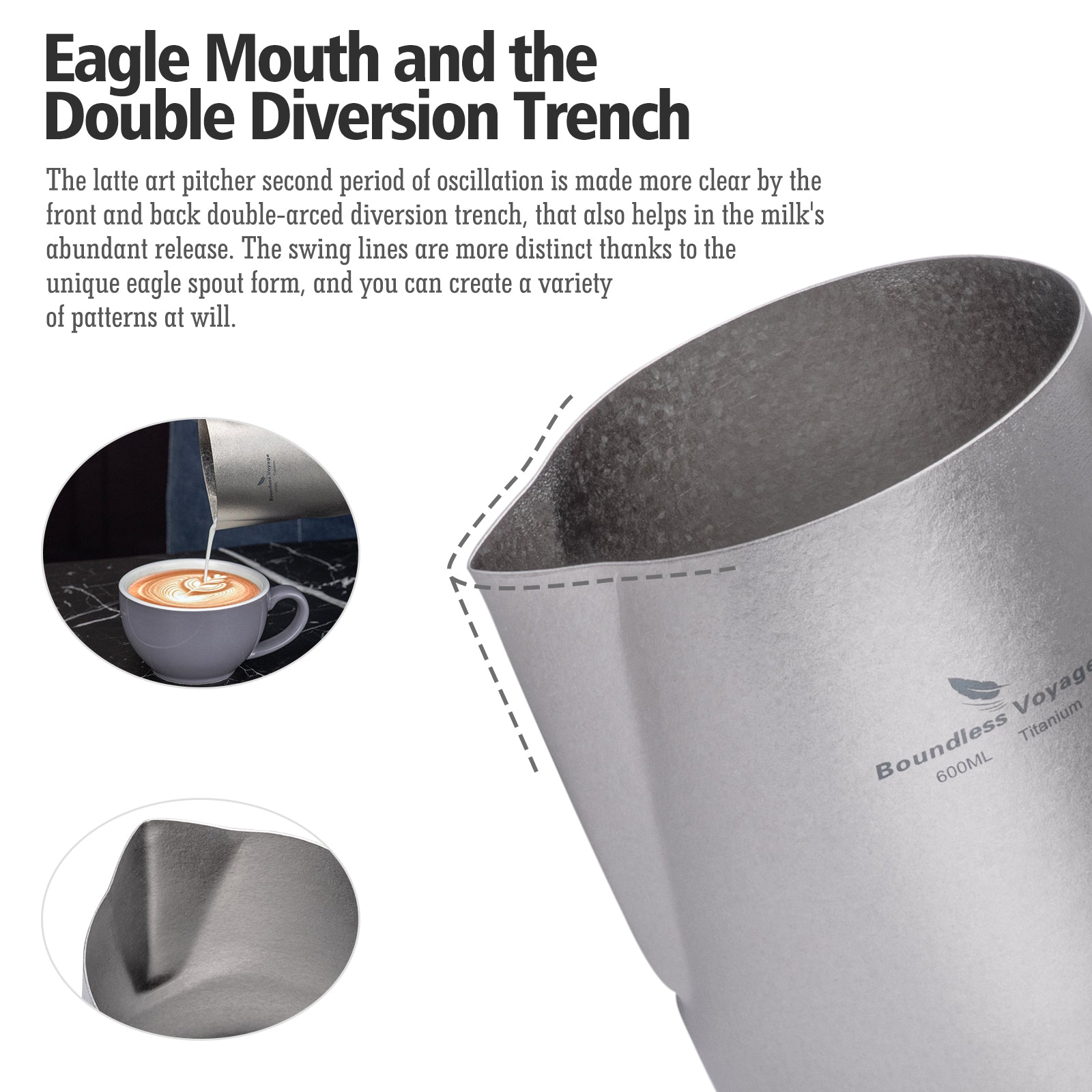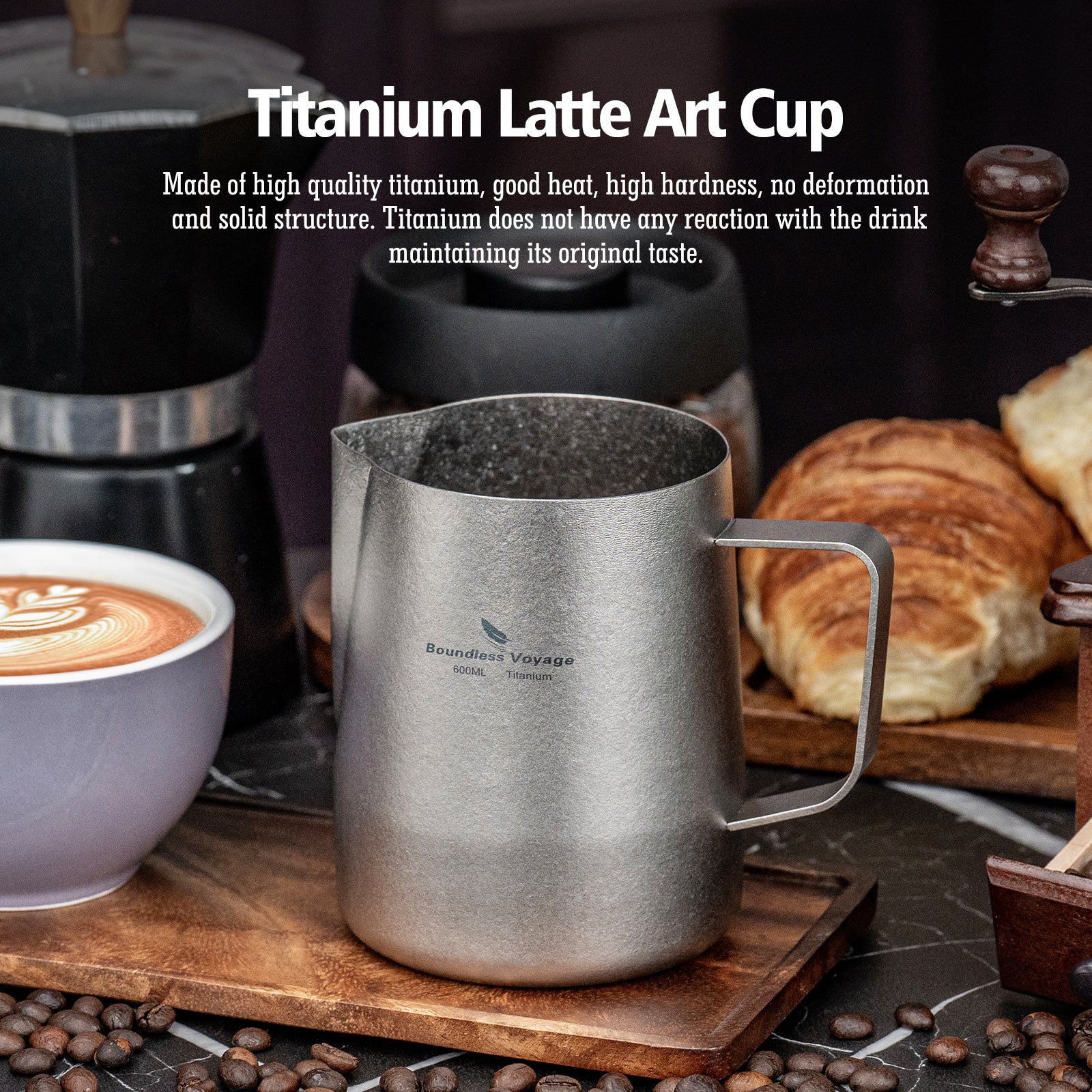 Boundless Voyage Titanium Espresso Steaming Pitcher – Milk Frother Cup with Round Spout for Barista Latte Art & Coffee