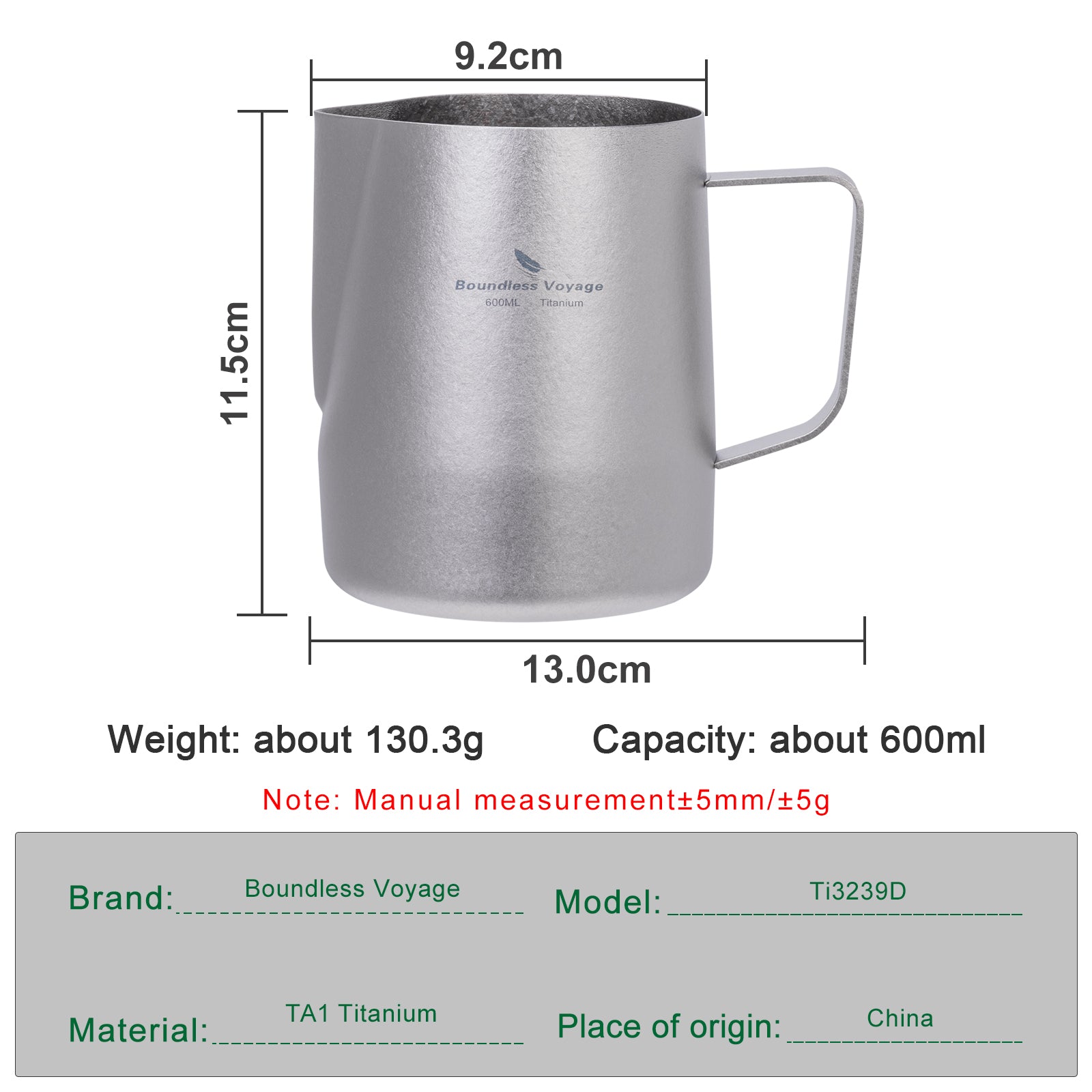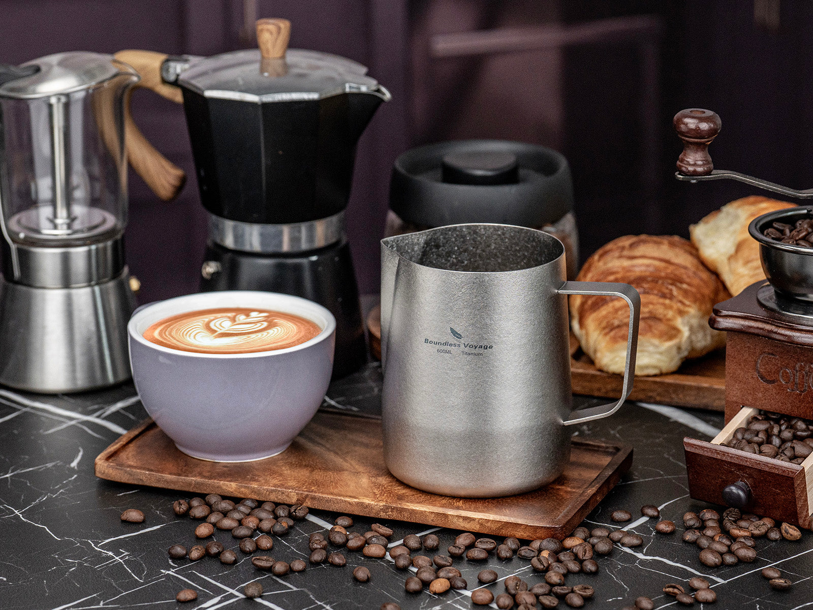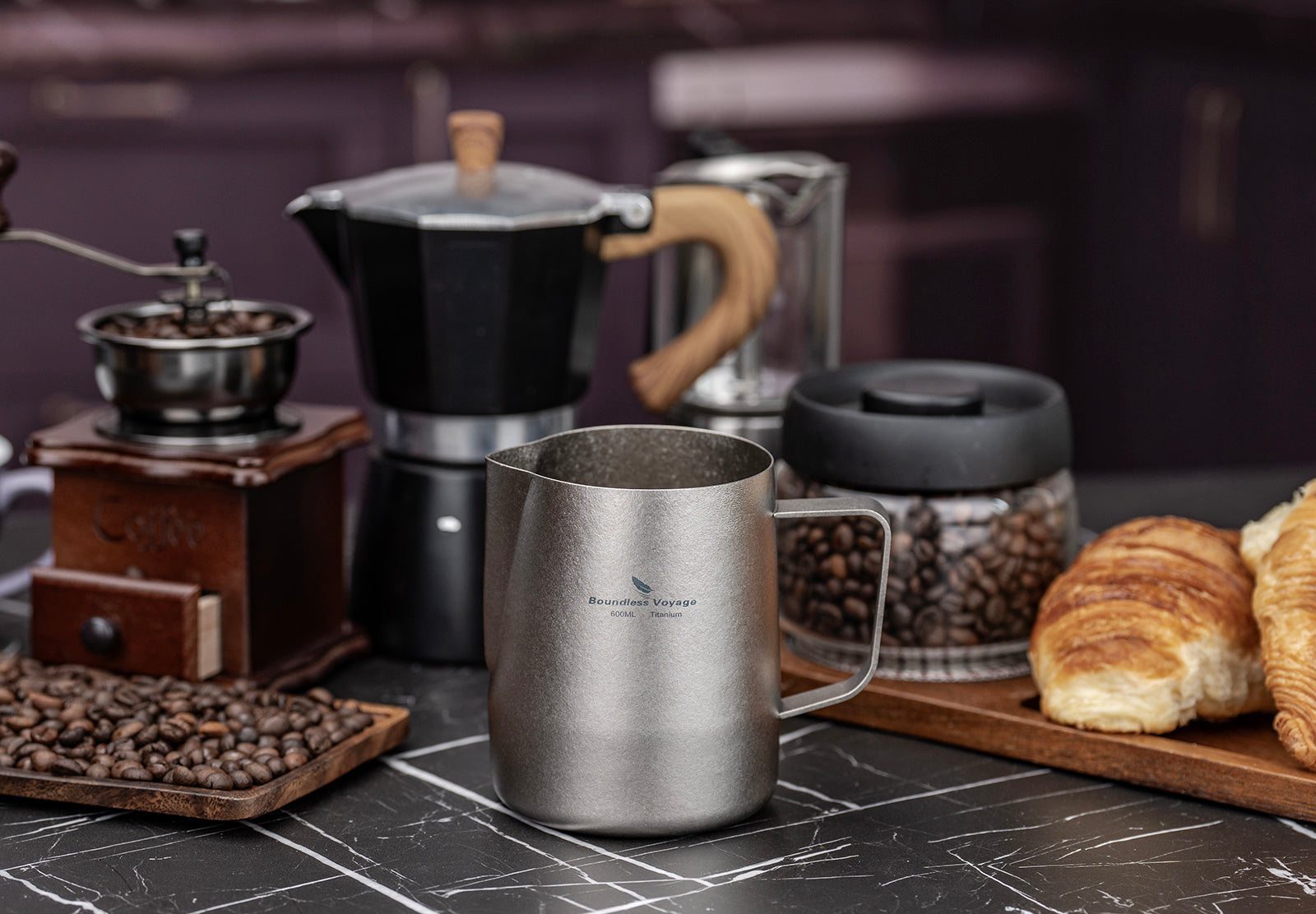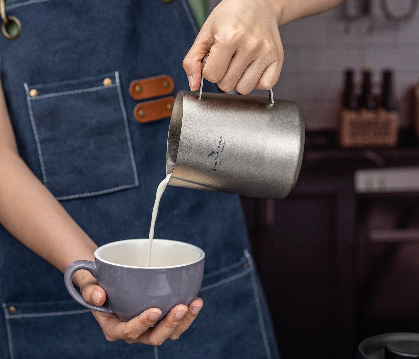Boundless Voyage Titanium Espresso Steaming Pitcher – Milk Frother Cup with Round Spout for Barista Latte Art & Coffee