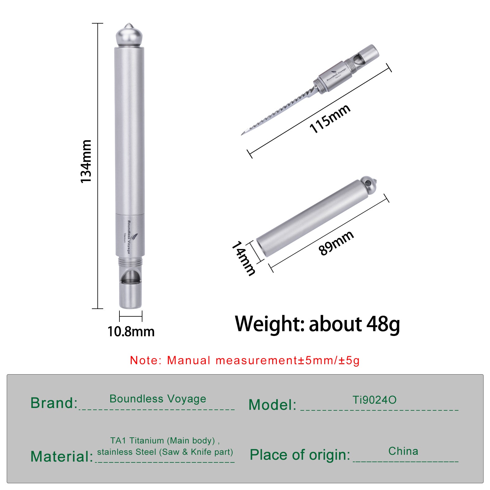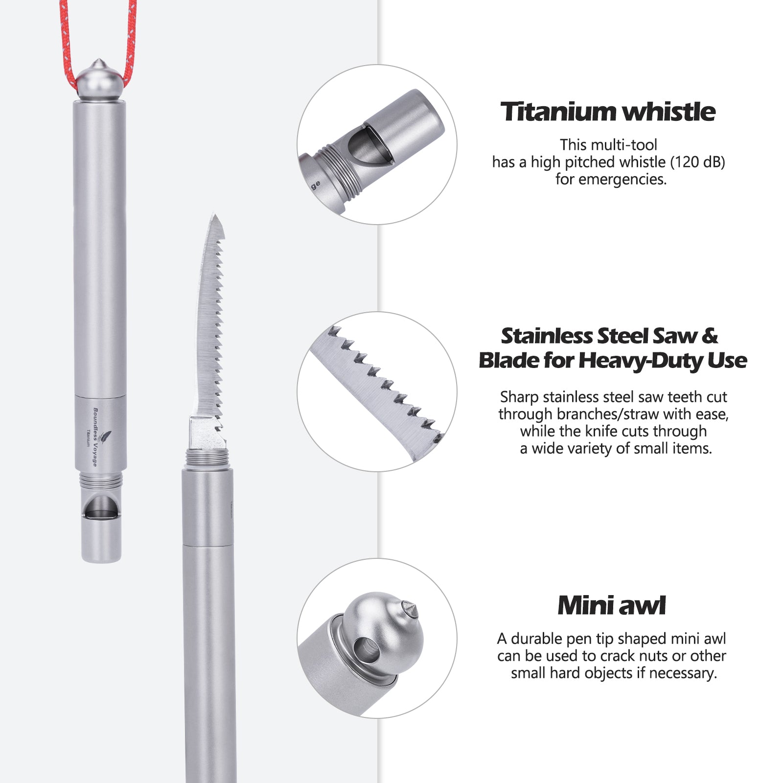Boundless Voyage Titanium Survival Whistle 120dB – 4-in-1 EDC Emergency Tool with Knife, Saw & Awl for Camping, Hiking & Outdoor