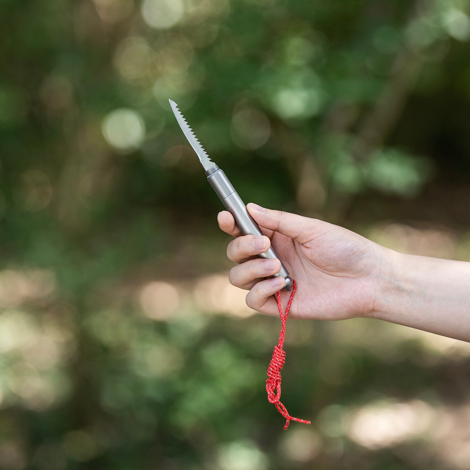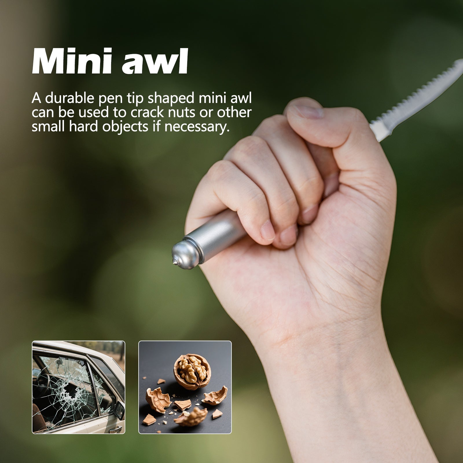 Be prepared for any situation with this titanium 4-in-1 survival tool, combining a 120dB emergency whistle, knife, saw, and awl in one compact design. Built for reliability and versatility, it’s an essential piece of gear for outdoor adventures and everyday carry.