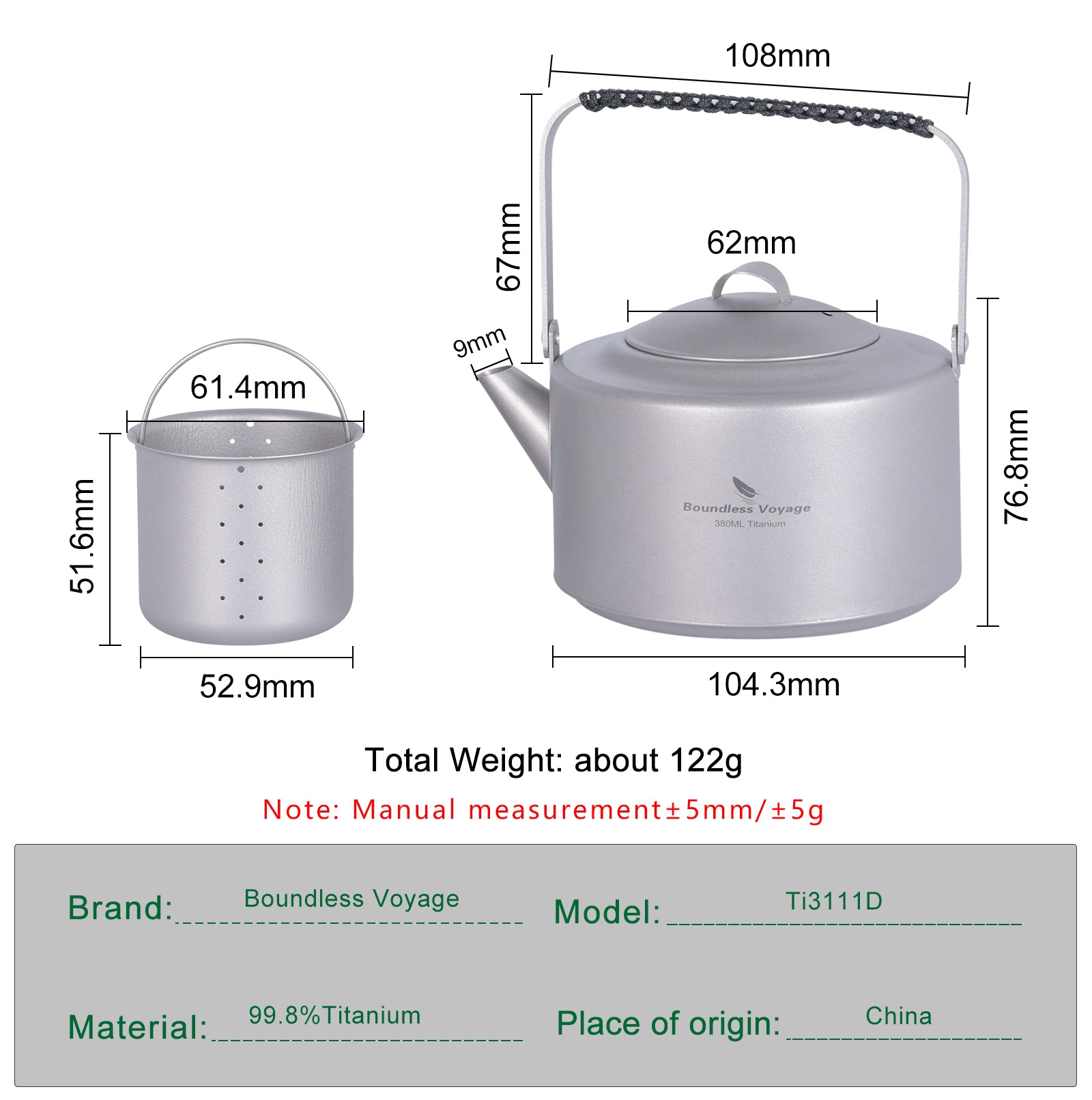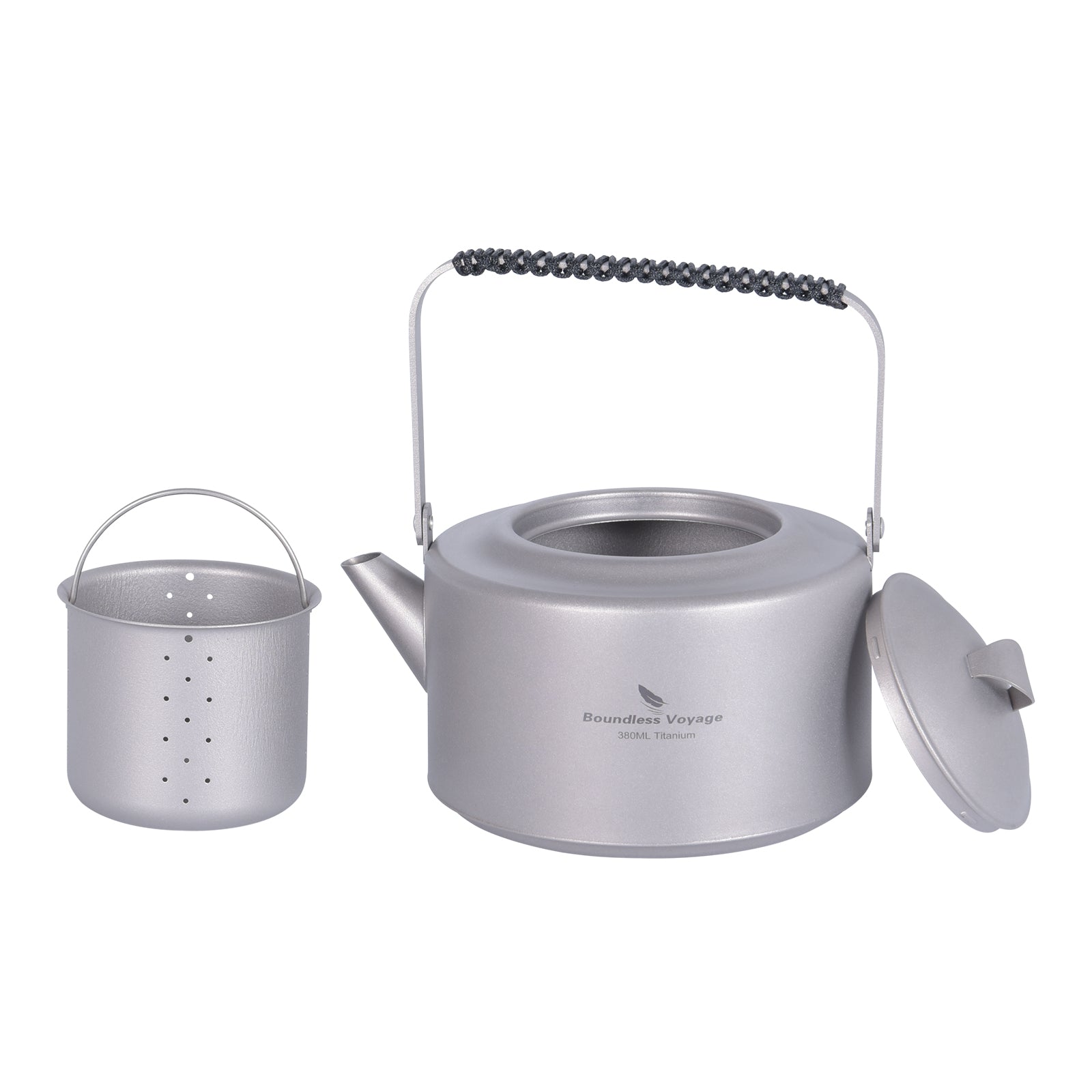 Boundless Voyage 380ml Ultralight Titanium Teapot | 122g Portable Mini Kettle with Filter & Foldable Lifting Handle | Camping & Hiking