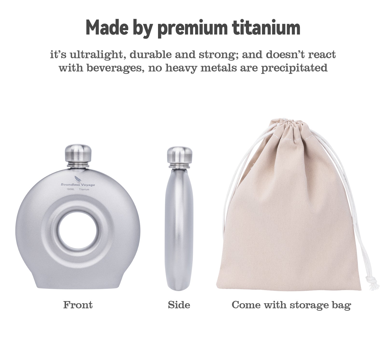 The Boundless Voyage 180ml Eco-Friendly Titanium Hip Flask is designed for those who value simplicity, quality, and sustainability.