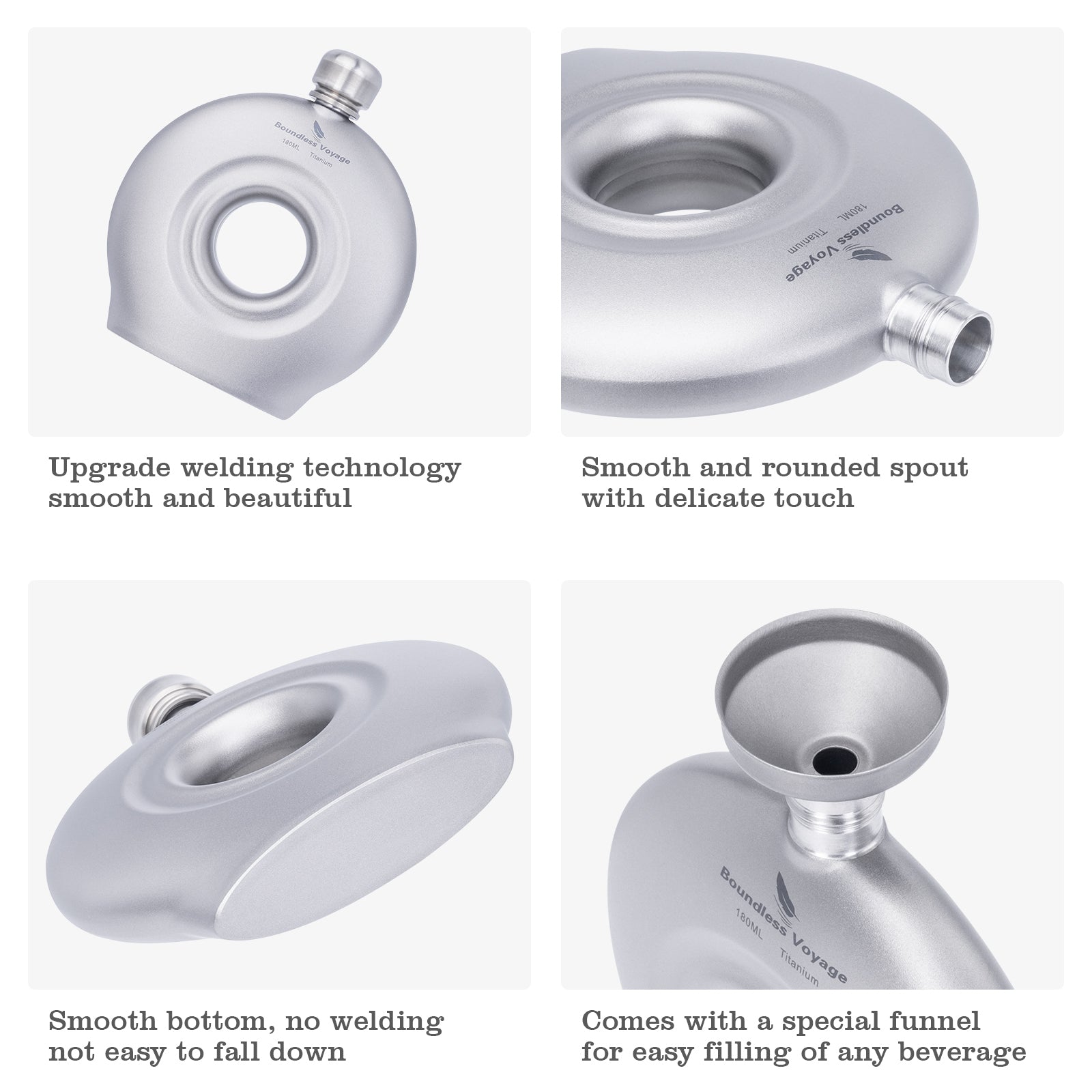 Boundless Voyage Titanium Hip Flask with Funnel – Eco-Friendly, Lightweight & Durable | 180ml Whiskey Flask for Camping, Travel & Home Use