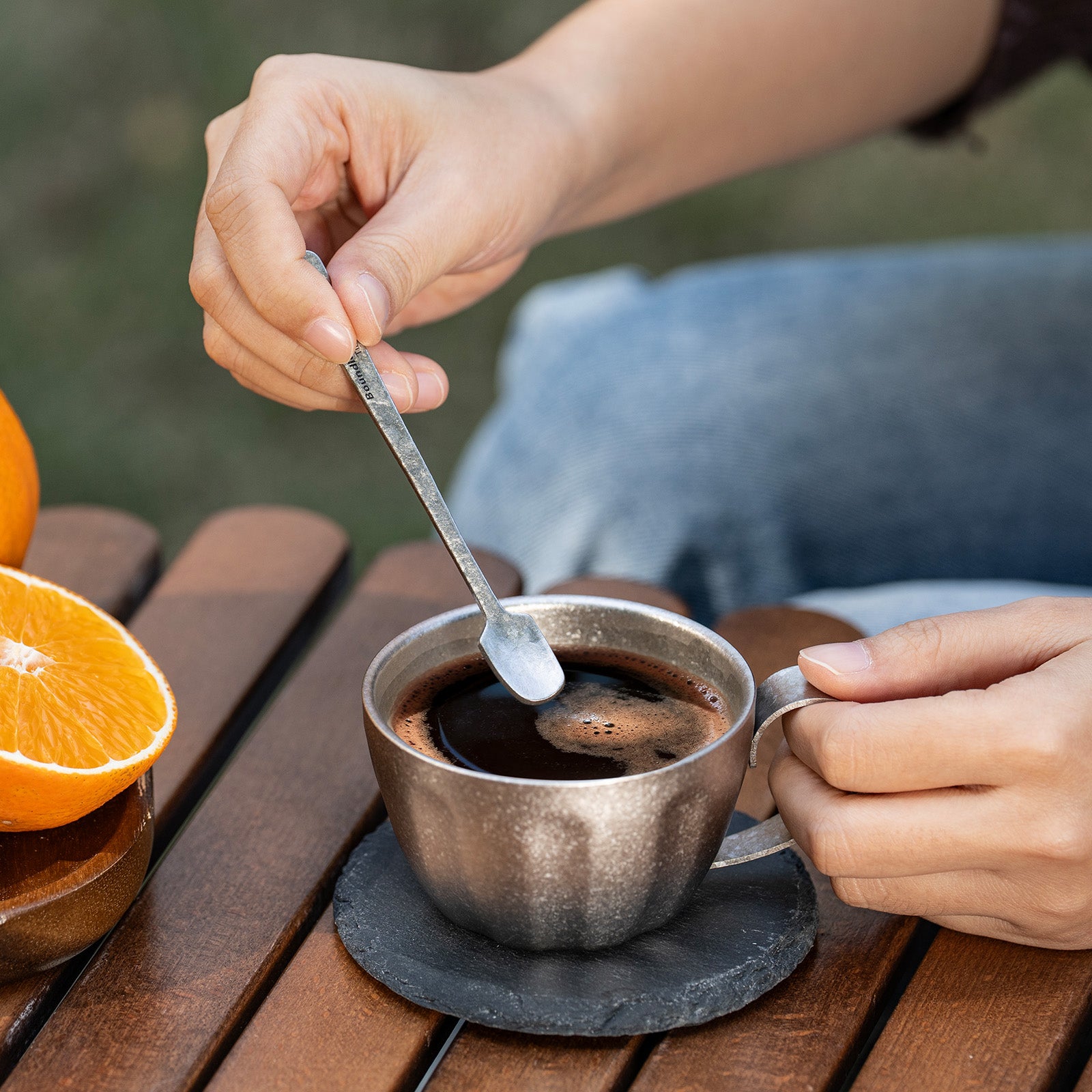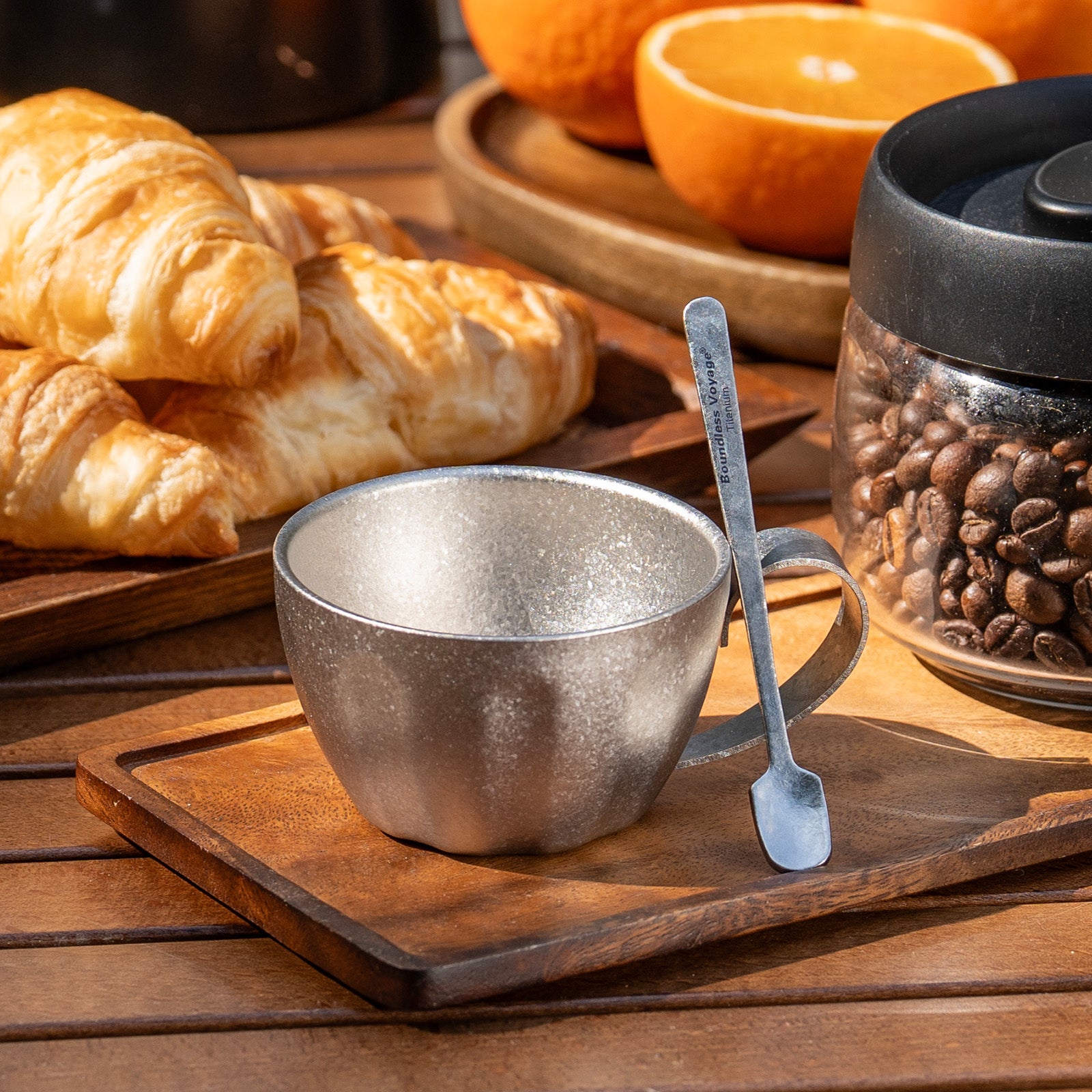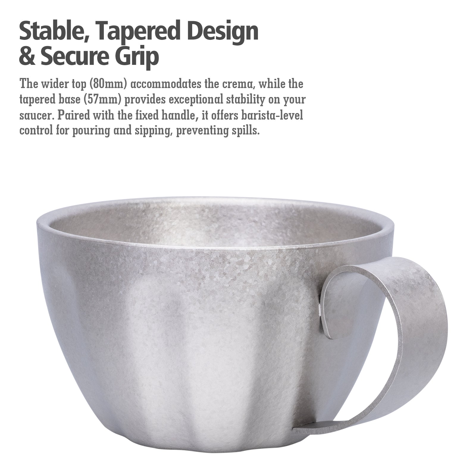 Stronger and lighter than stainless steel Corrosion-resistant & biocompatible No metallic taste — keeps espresso flavor pure Extremely durable — built for daily use and outdoor environments Sustainable & recyclable material Safe for hot drinks and outdoor heat sources