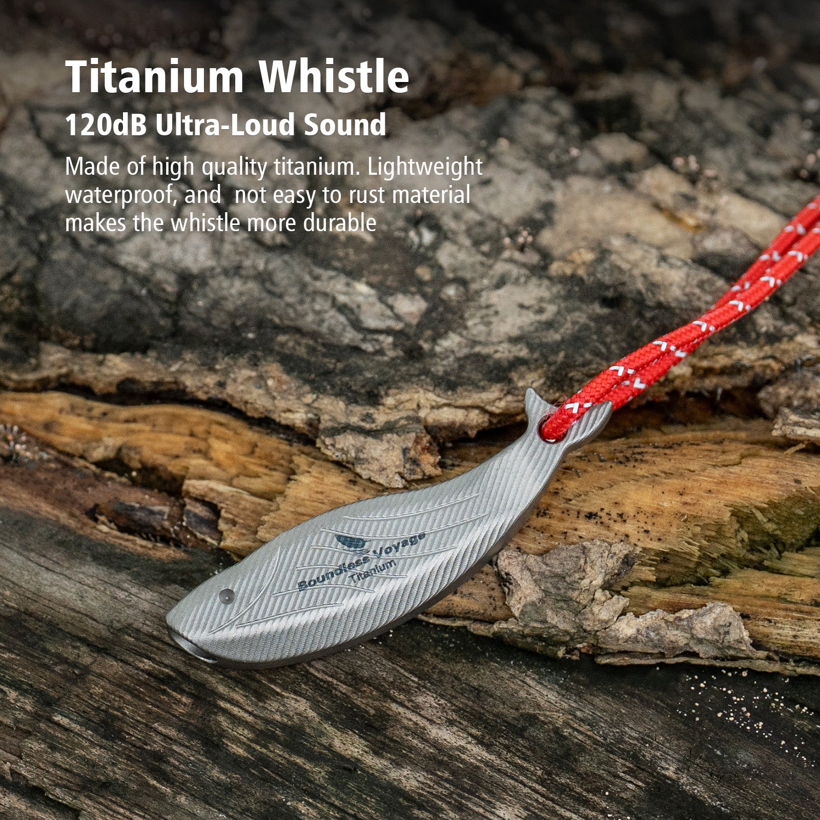 Stay safe on every adventure with the Boundless Voyage 120dB Titanium Survival Whistle.