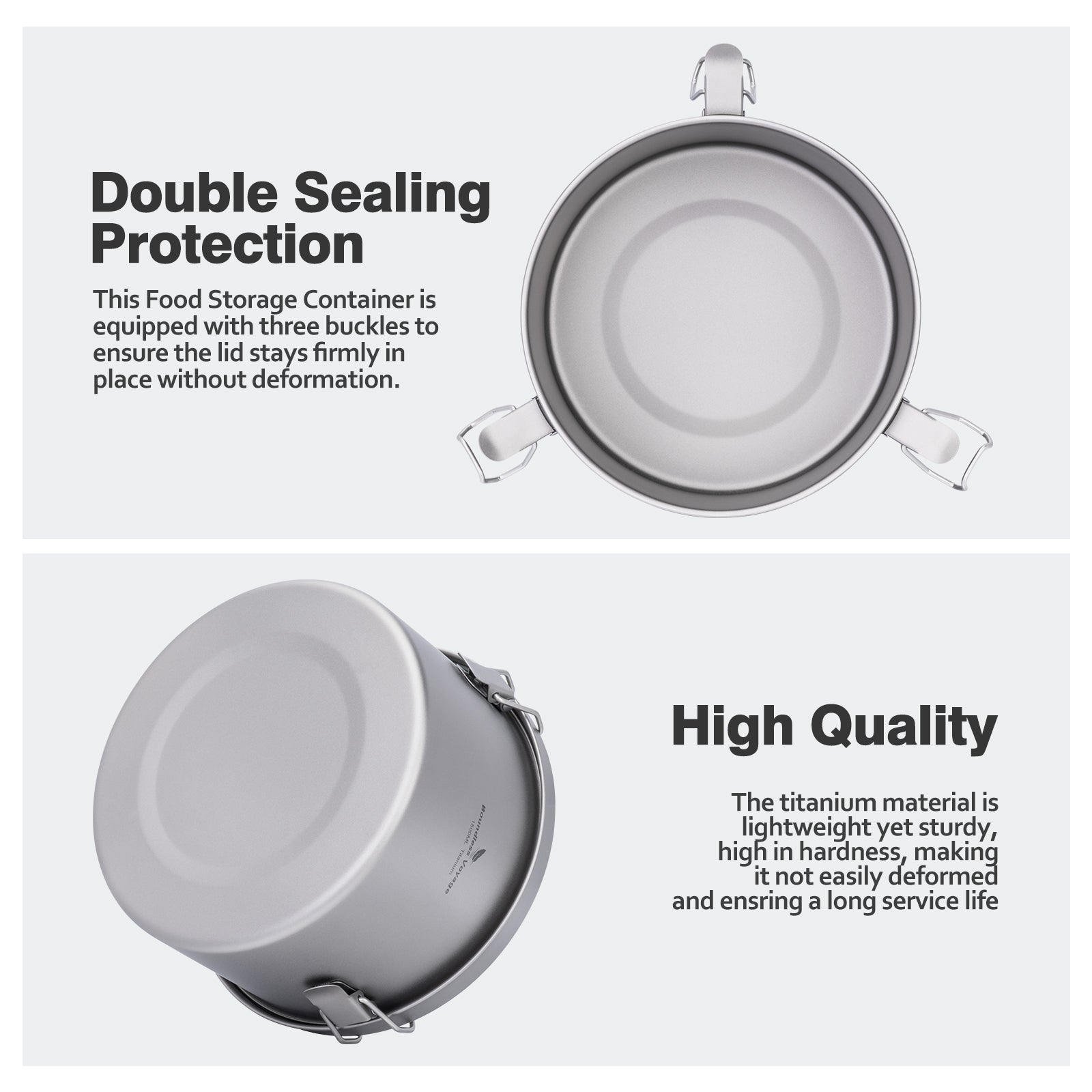 Boundless Voyage 1500ml Titanium Food Storage Container – Multi-Functional Lunch Box & Steamer with Sealed & Vented Lids for Camping, Travel & Meal Prep