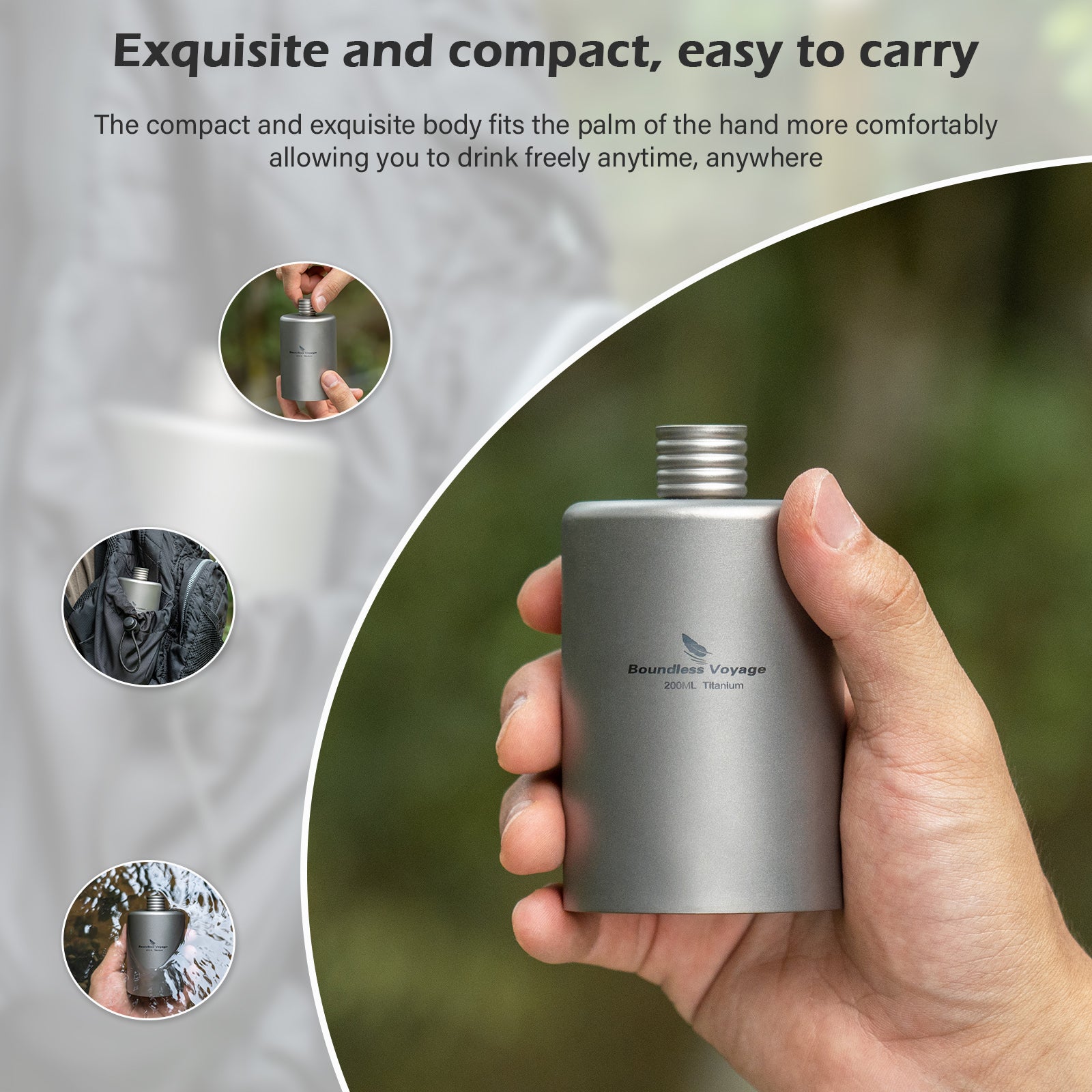 Boundless Voyage 200ml Titanium Pocket Flagon – Ultralight Portable Hip Flask for Camping, Hiking, Travel & Outdoor Adventures