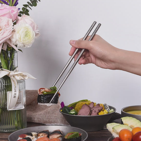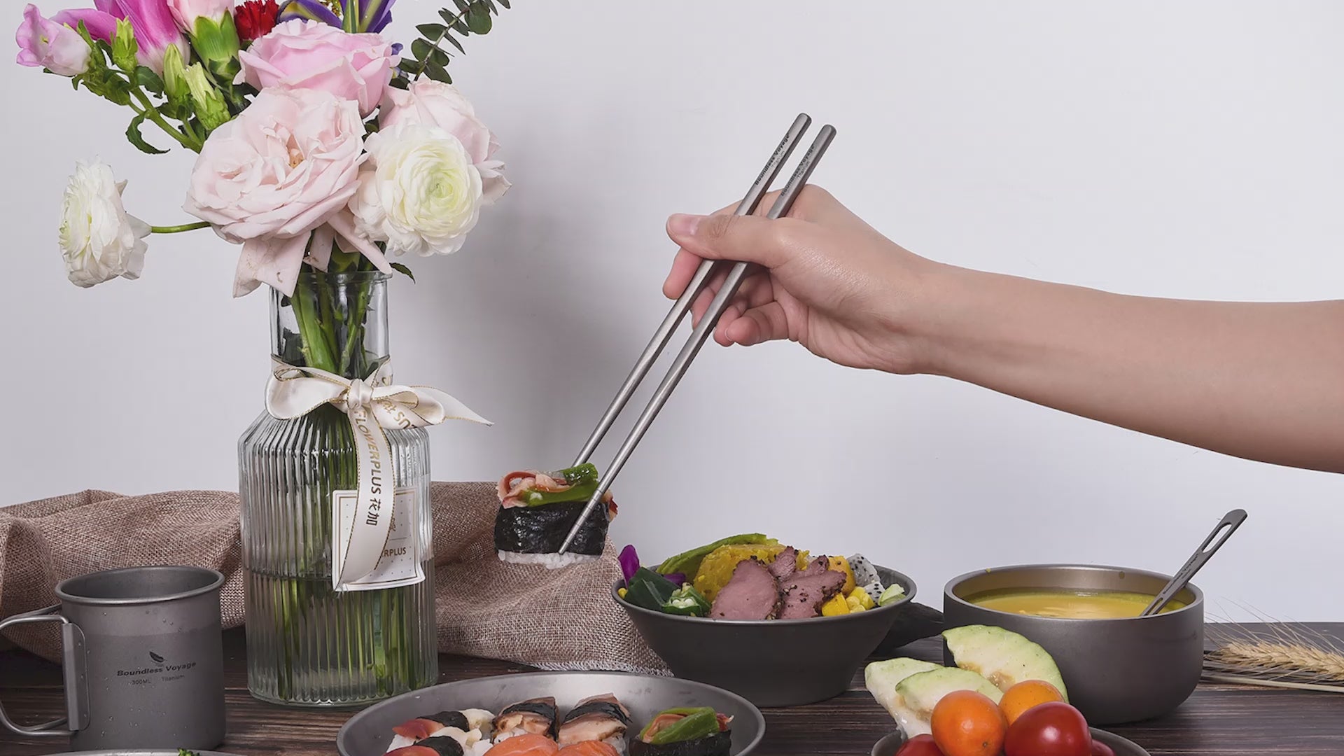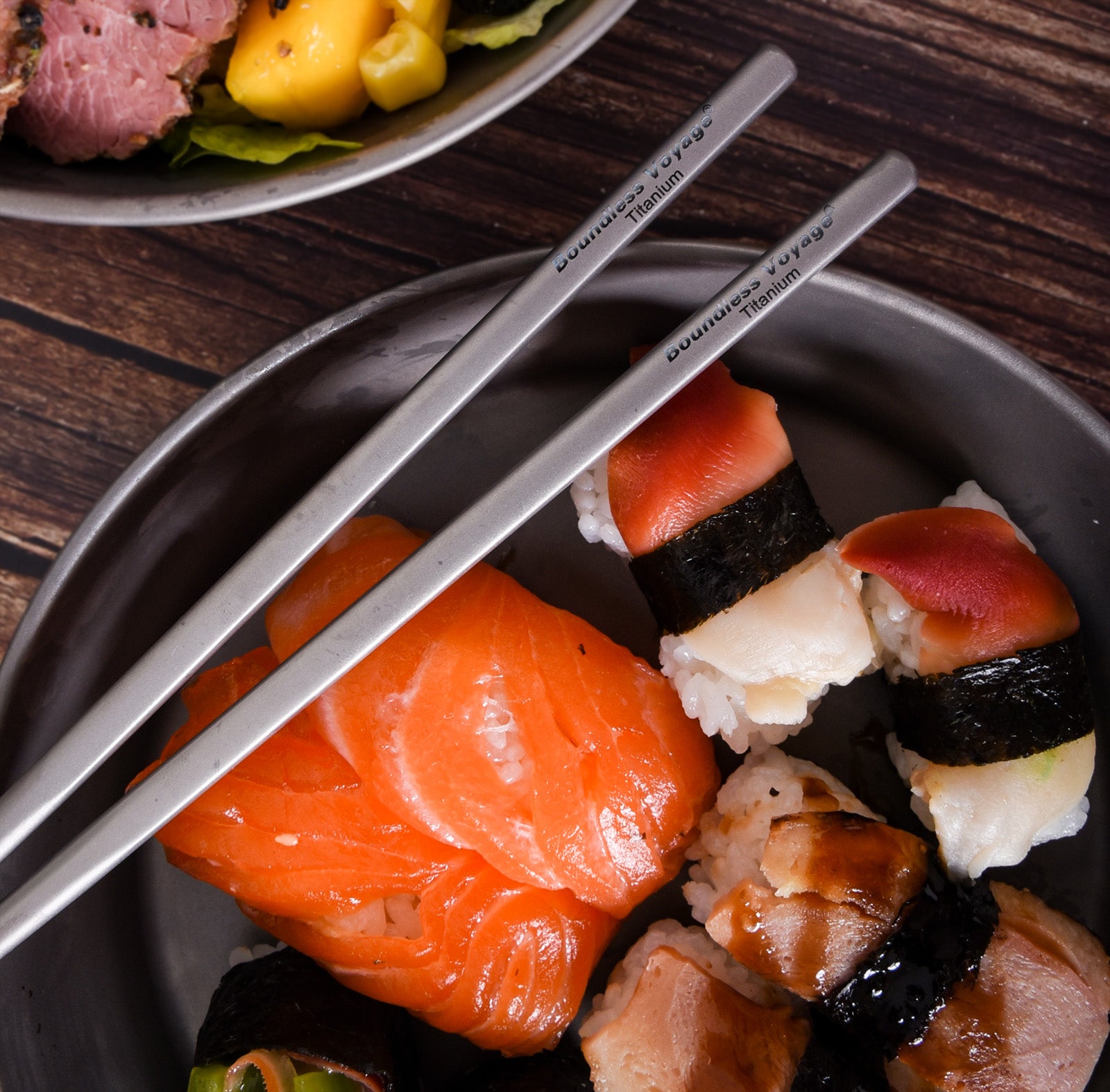 Enjoy every meal with Boundless Voyage TA1 Titanium Square Chopsticks, designed for everyday use at home and on the go. These ultra-light, durable chopsticks feature a square anti-roll shape, making them easy to grip and use, whether you're eating noodles at home or enjoying a meal around a campfire. Reusable, eco-friendly, and built for a lifetime of meals.