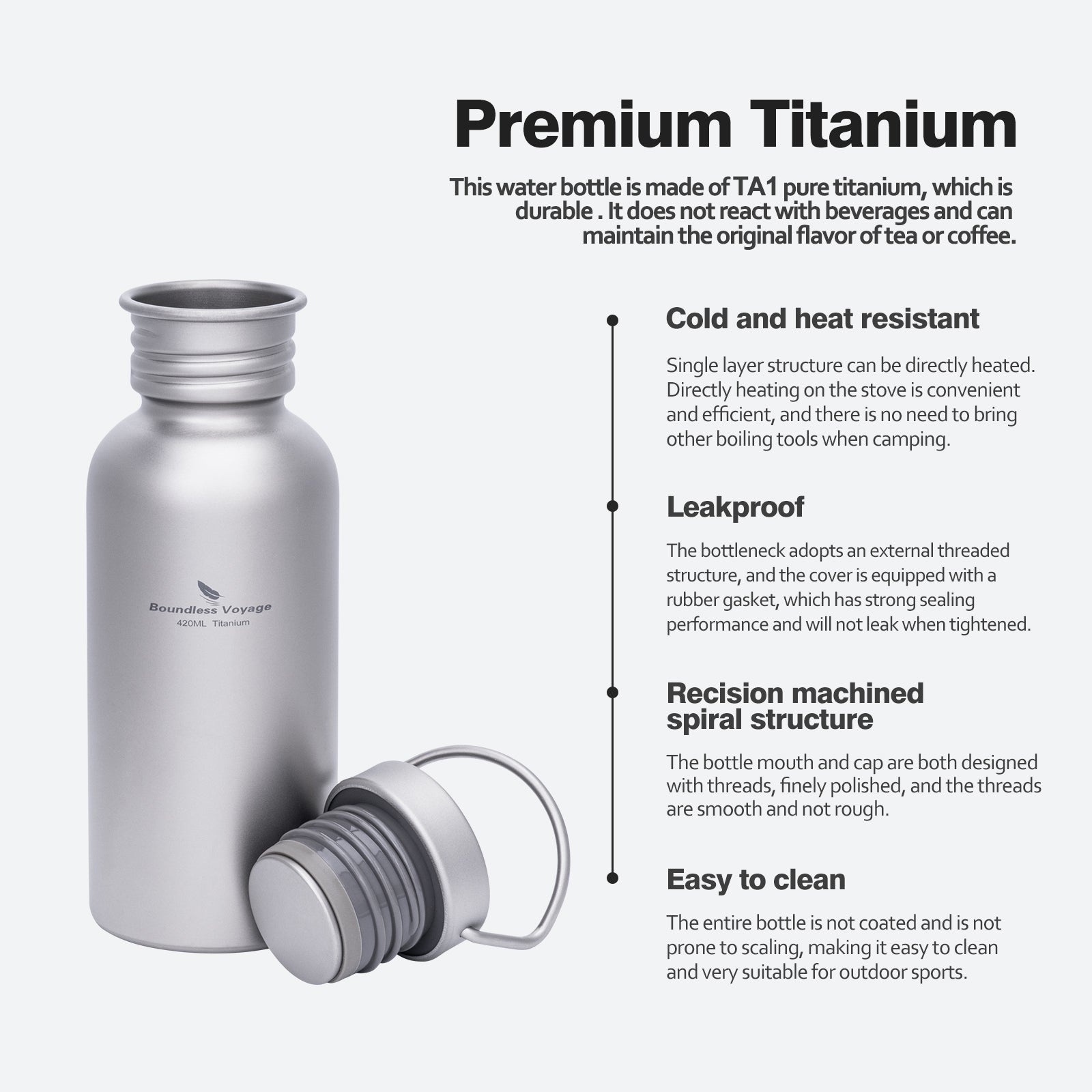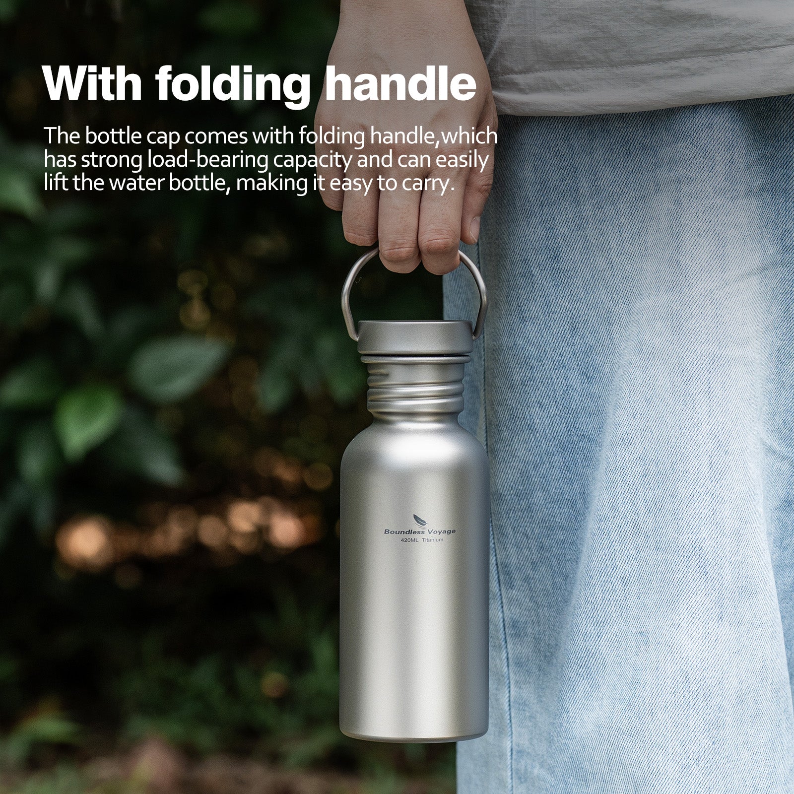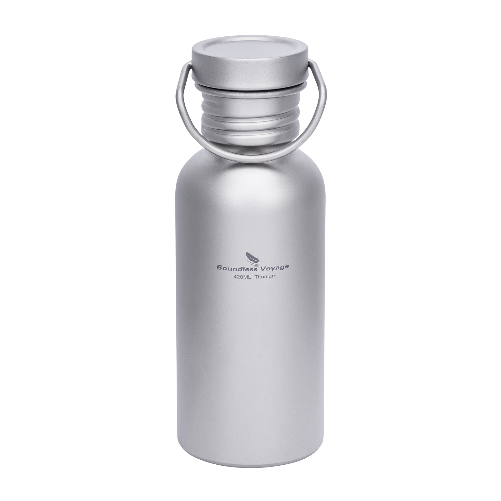 Boundless Voyage 420ml Titanium Water Bottle with Lid – Wide Mouth, Leak-Proof & Reusable Bottle for Camping, Hiking, and Everyday Use