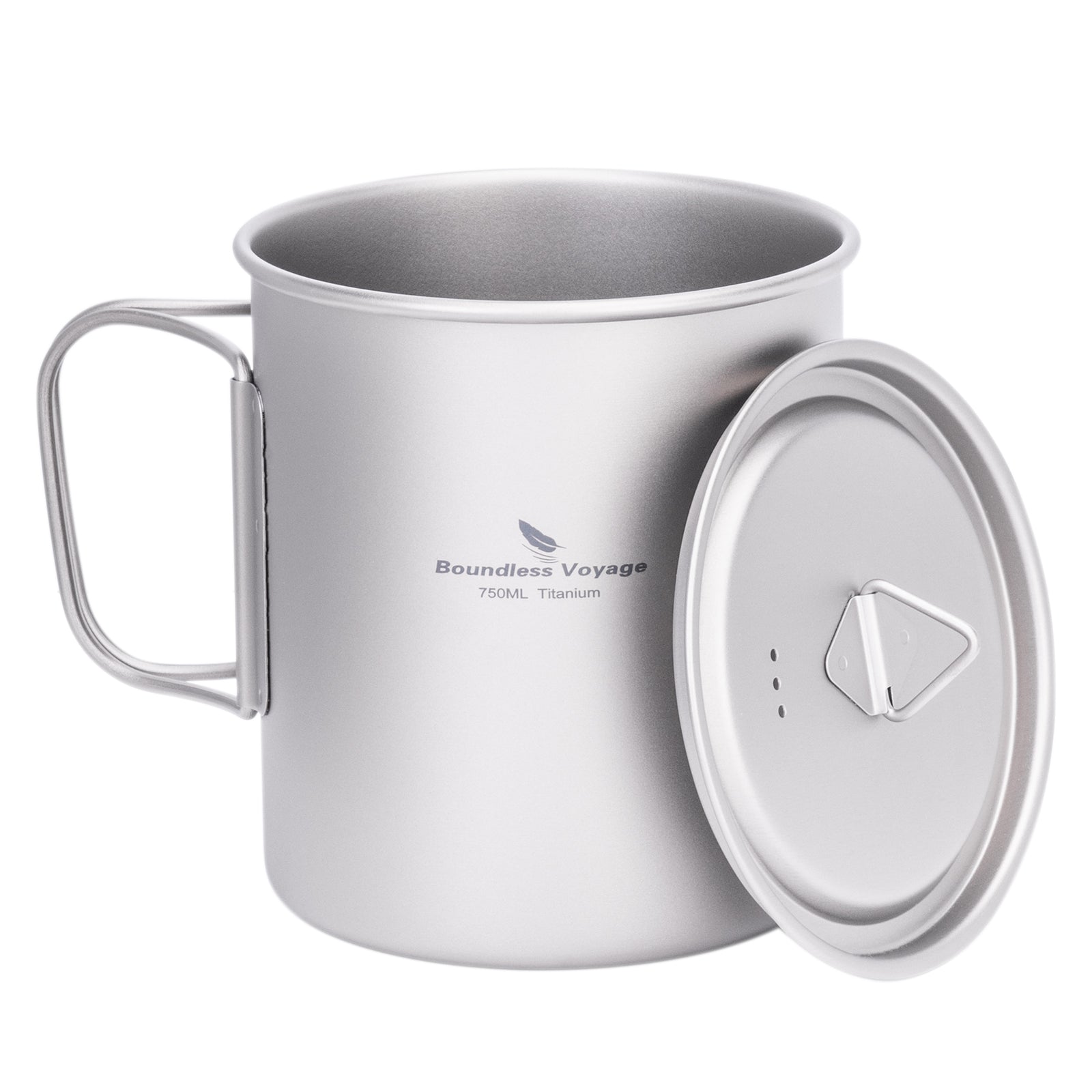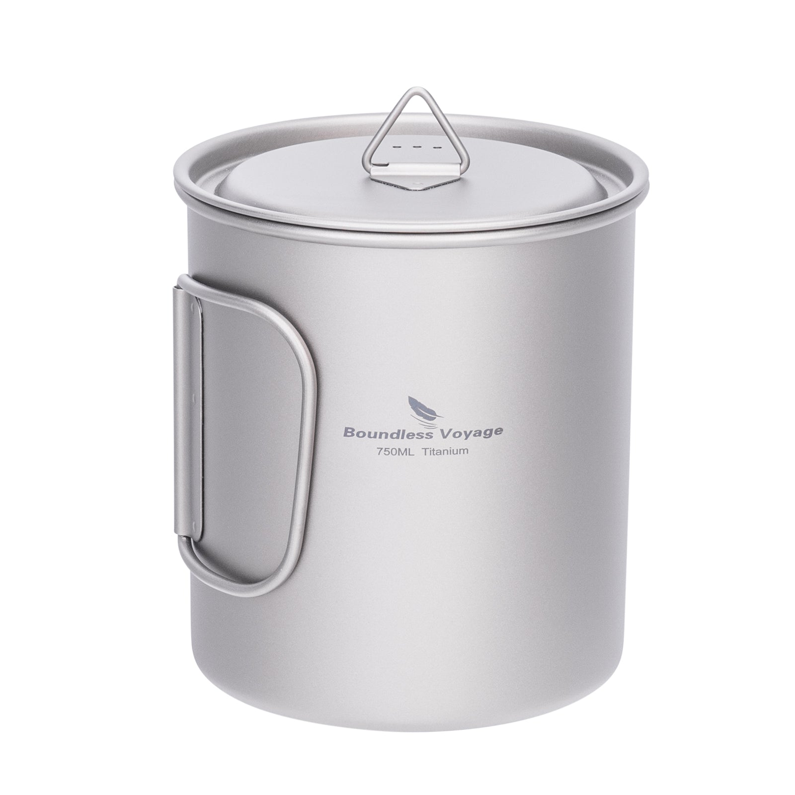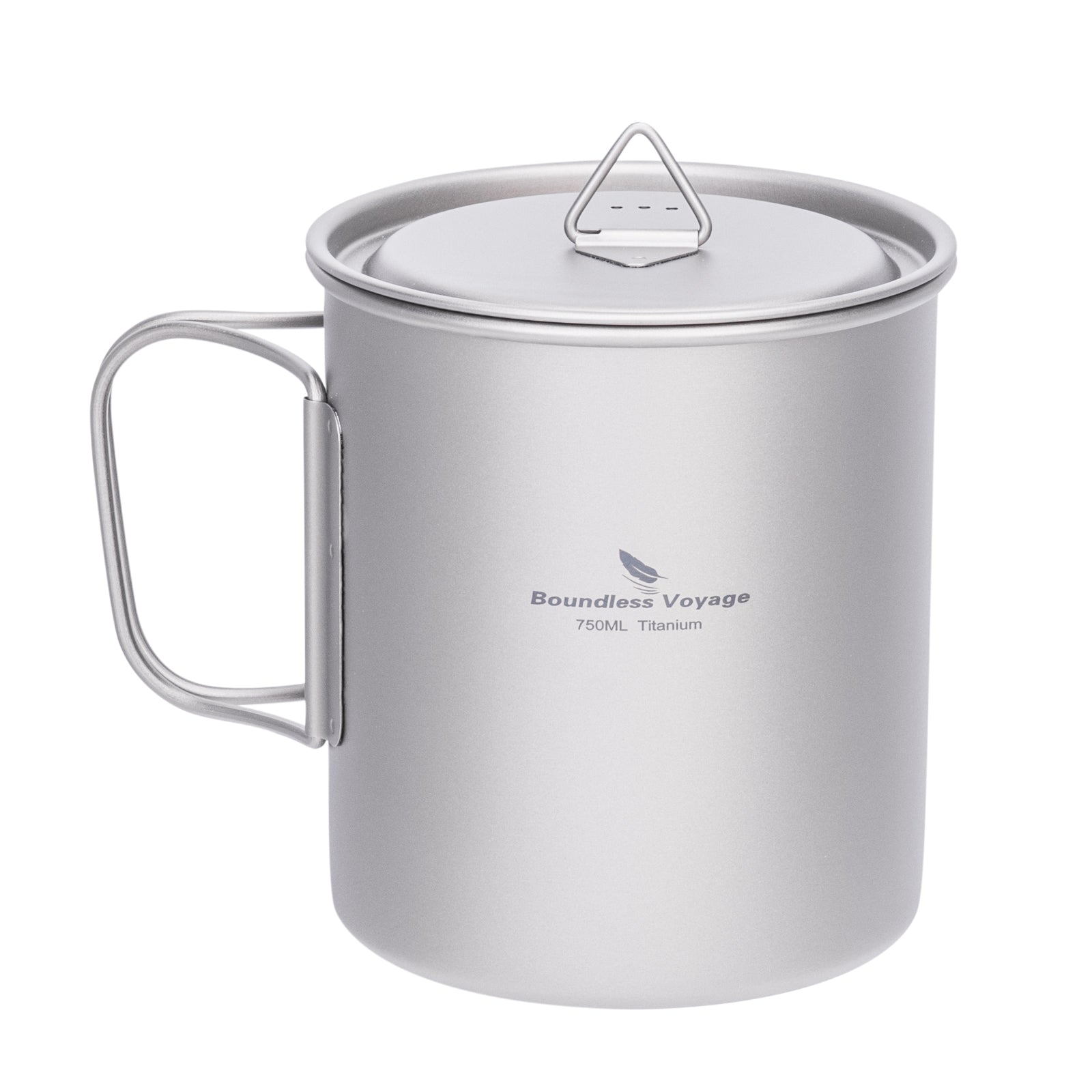 Boundless Voyage 750ml Titanium Camping Cup with Lid – Eco-Friendly, Stackable & Ultralight | Durable Mug Pot for Backpacking, Hiking & Travel