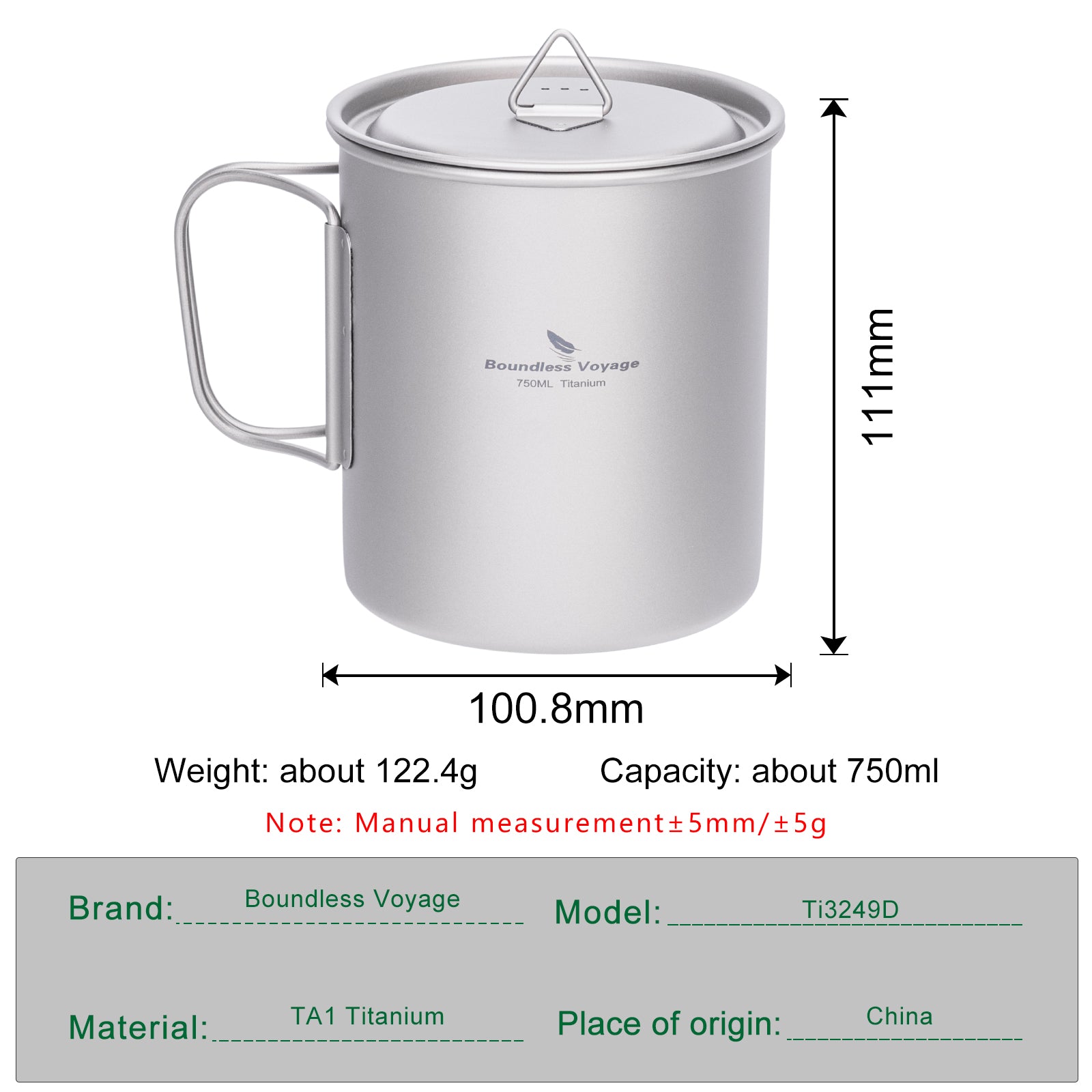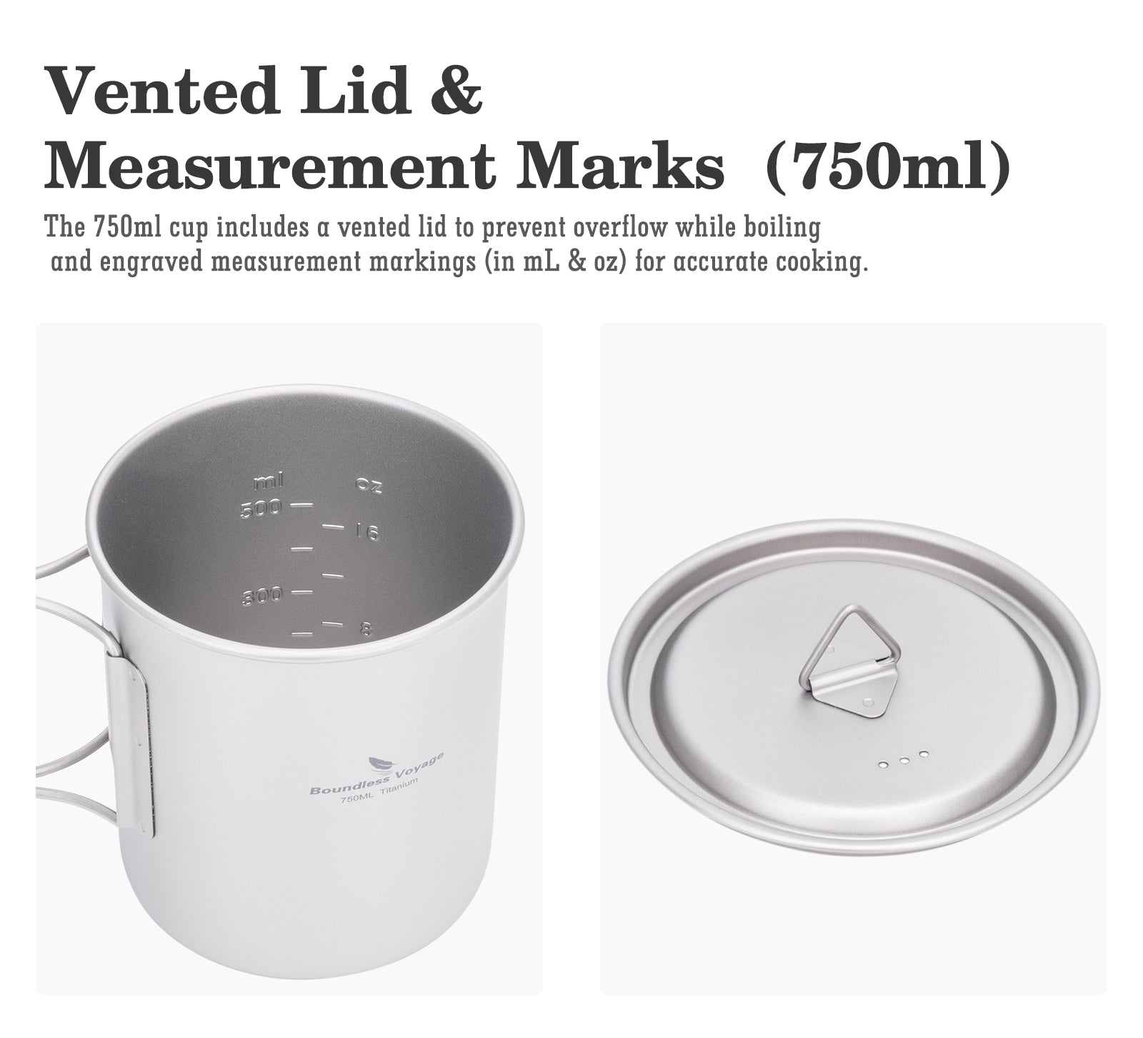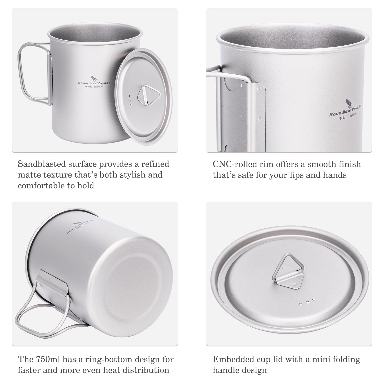 Boundless Voyage 750ml Titanium Camping Cup with Lid – Eco-Friendly, Stackable & Ultralight | Durable Mug Pot for Backpacking, Hiking & Travel