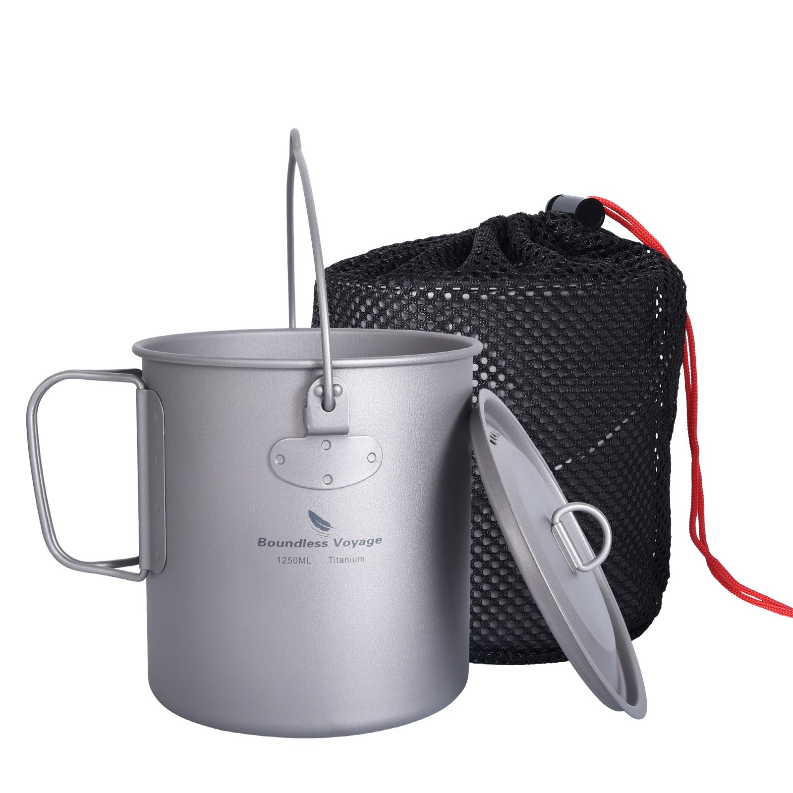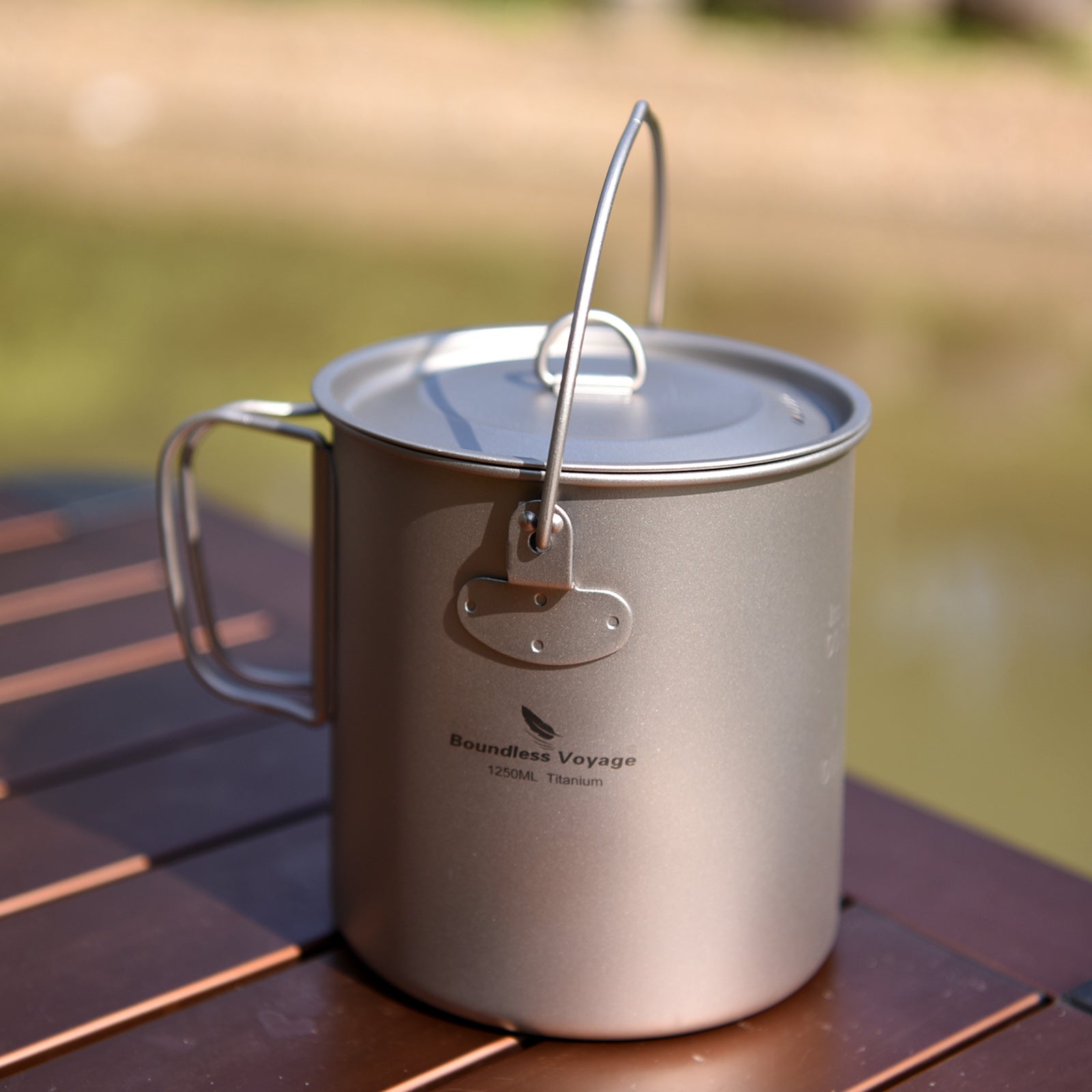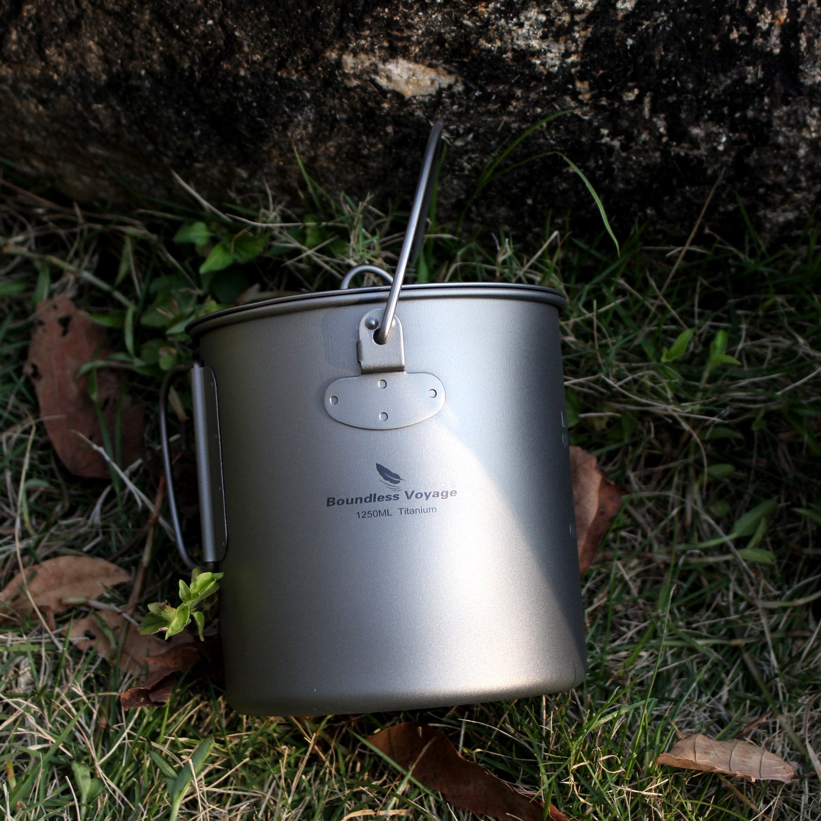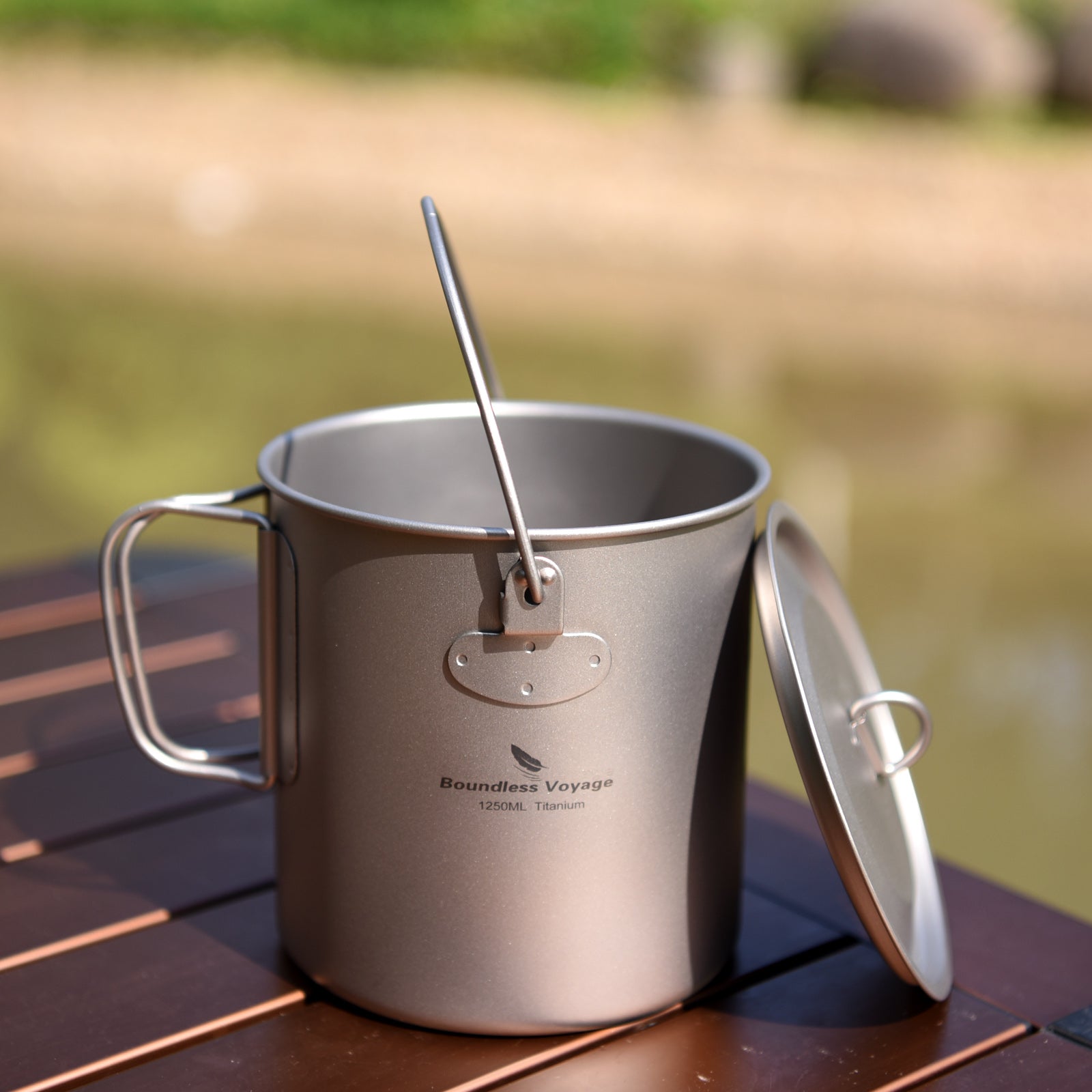 Boundless Voyage Outdoor Titanium Camping Pot with Lid Foldable Handle Outdoor Hiking Ultralight Portable Water Cup 1250ml