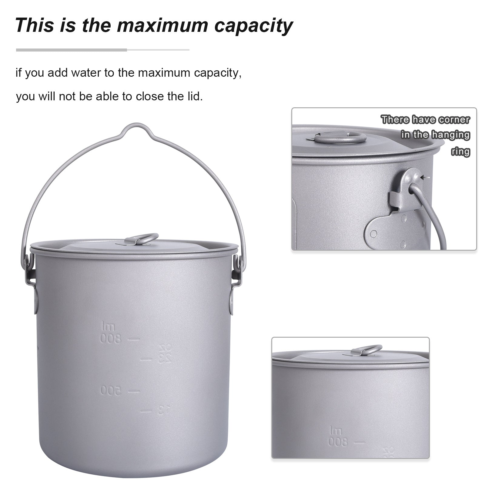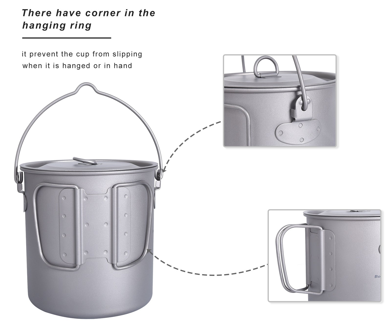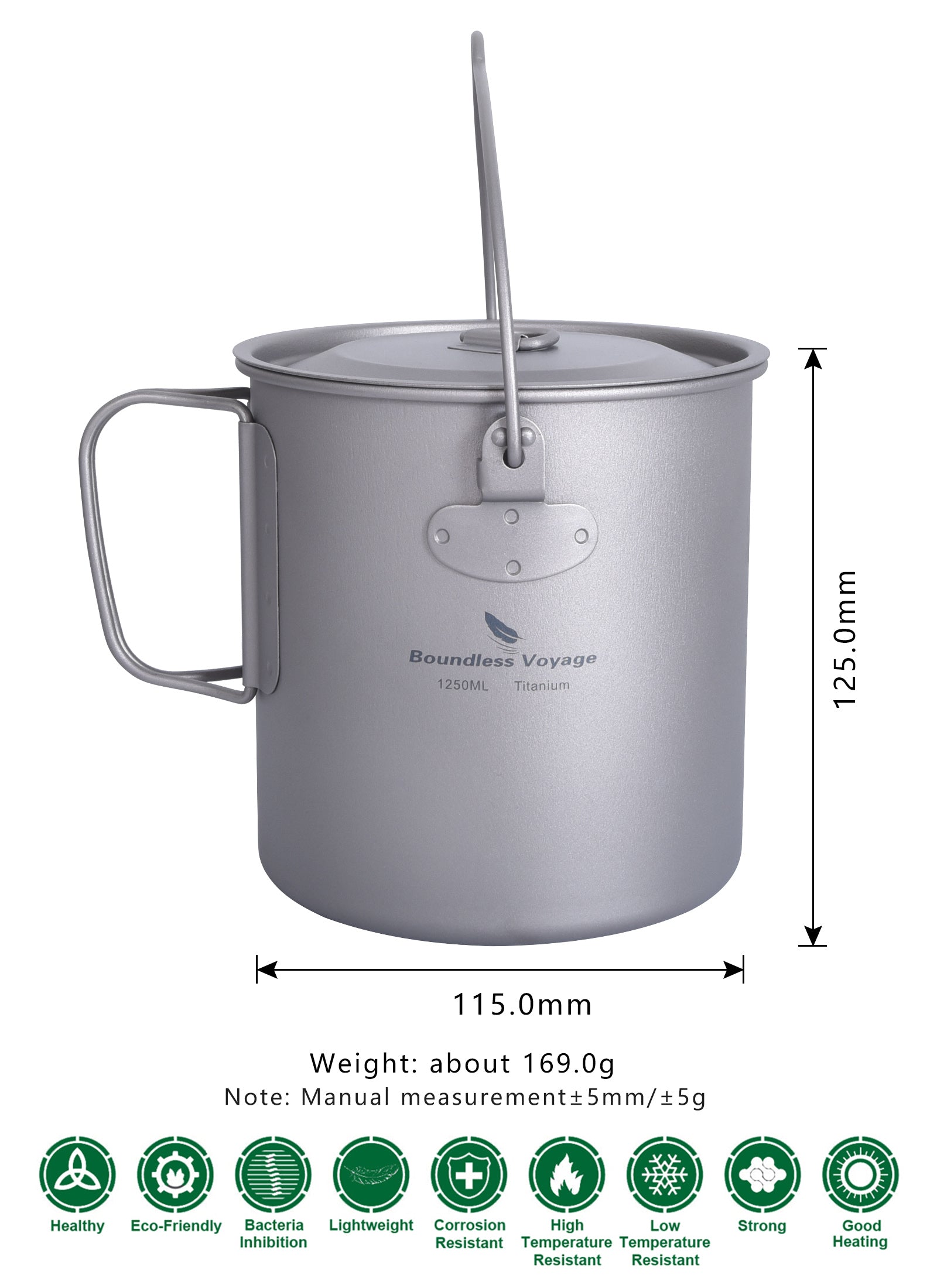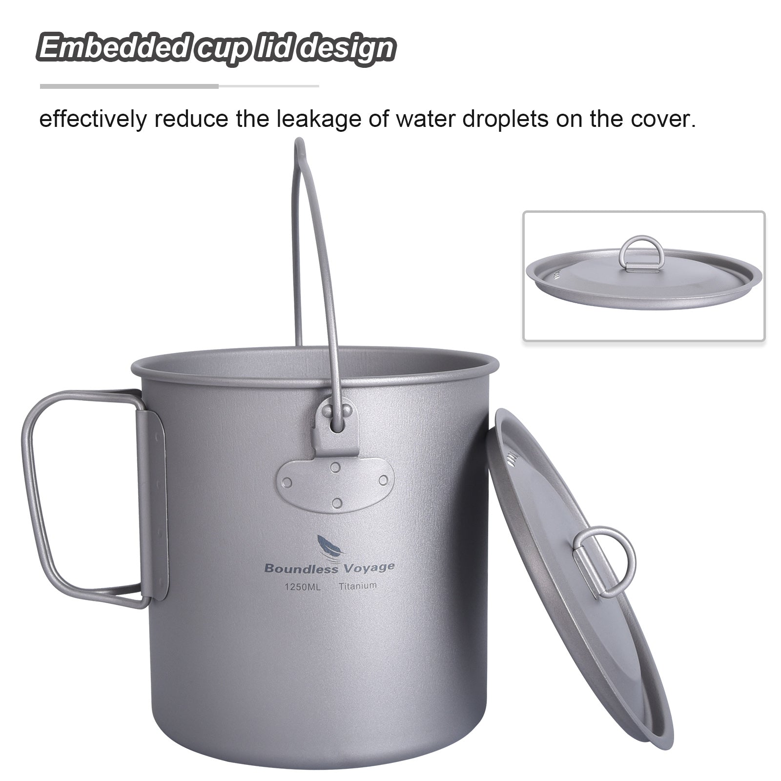 Boundless Voyage Outdoor Titanium Camping Pot with Lid Foldable Handle Outdoor Hiking Ultralight Portable Water Cup 1250ml