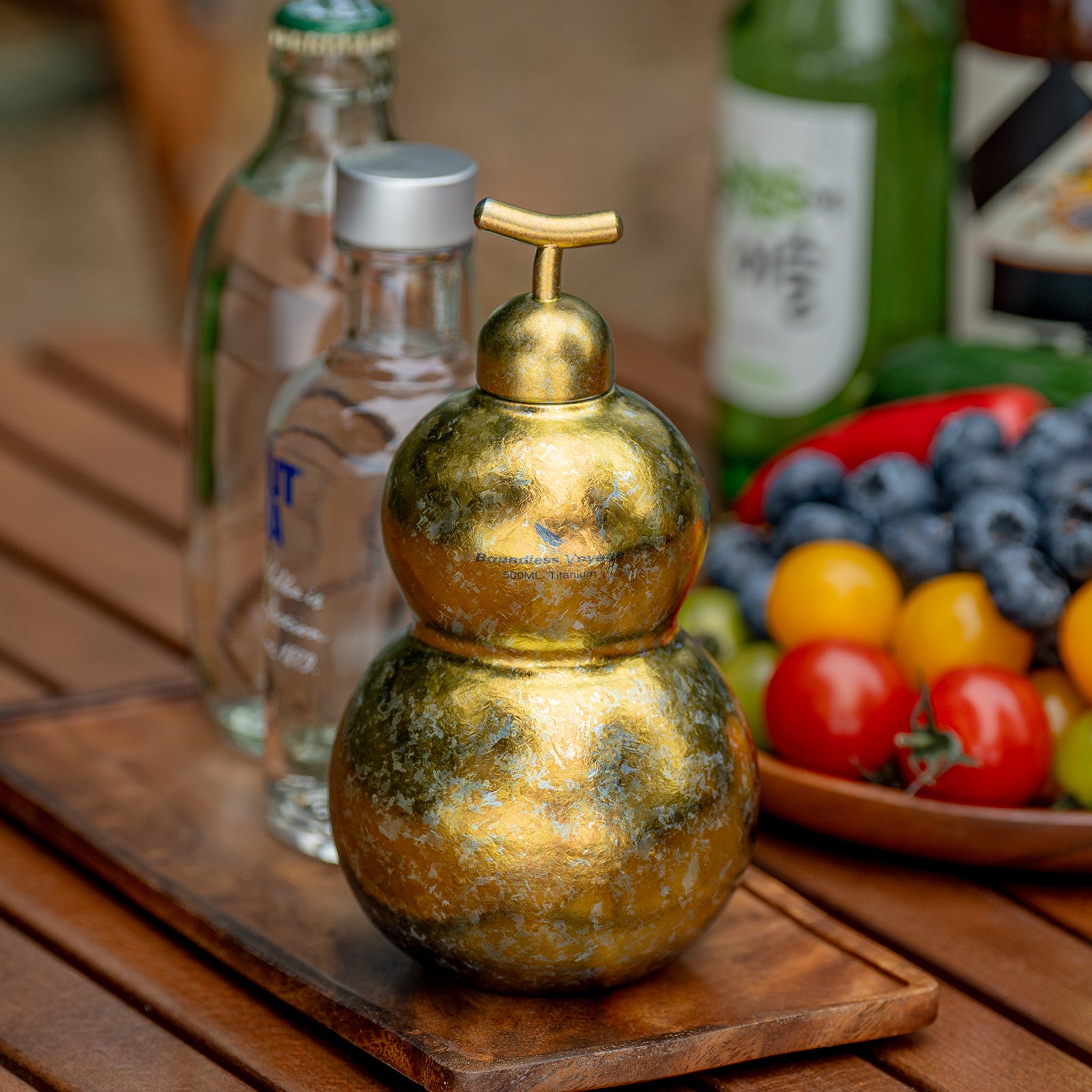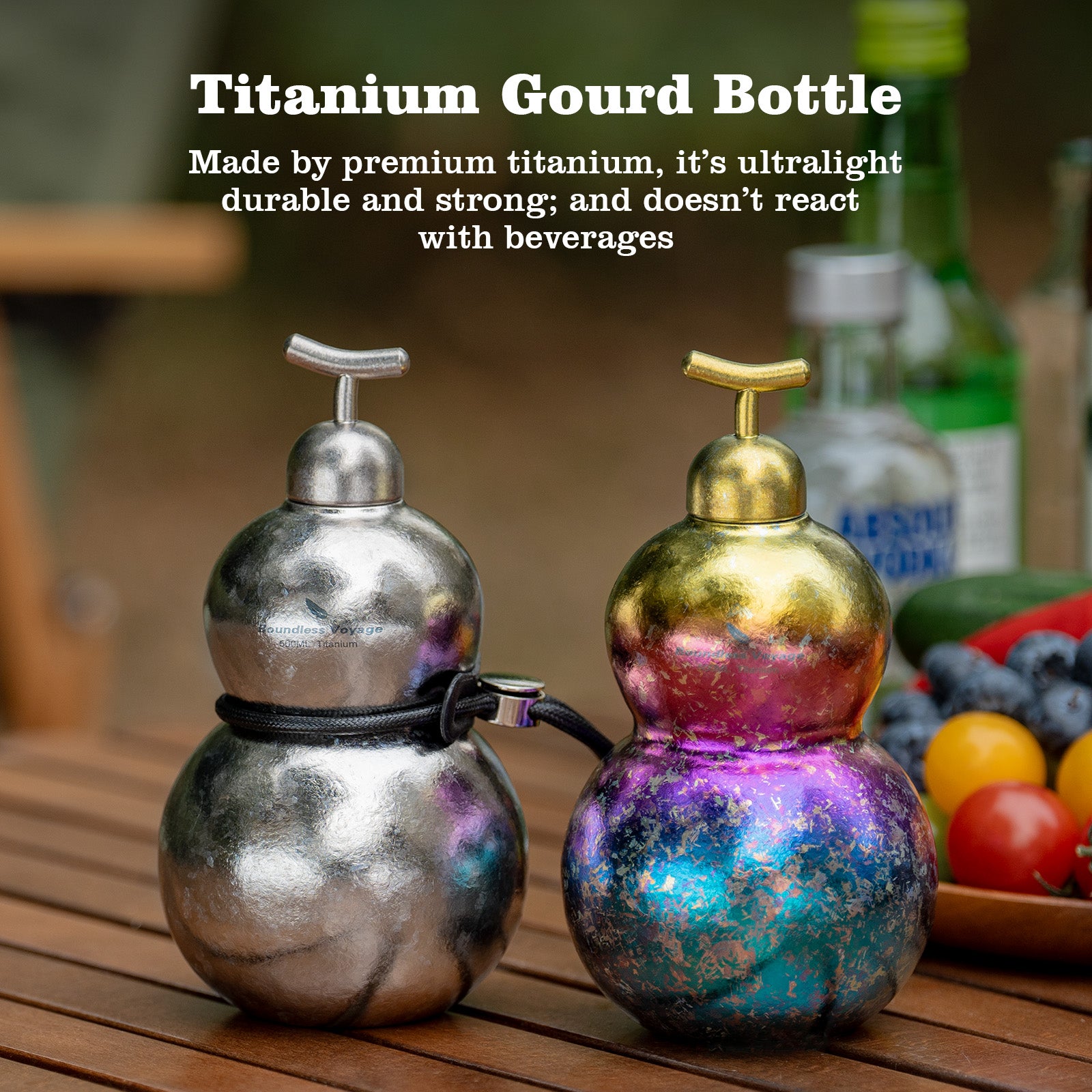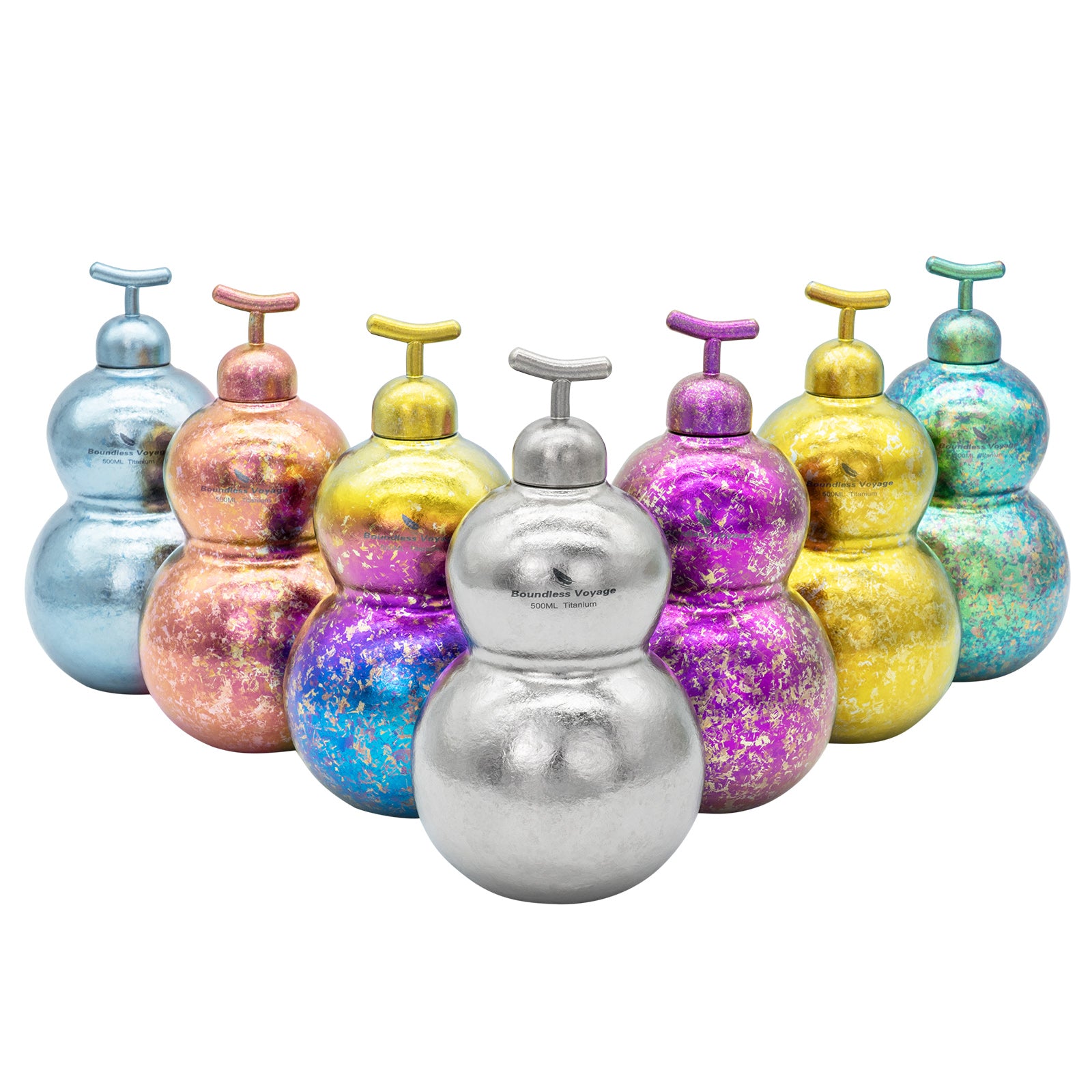 Boundless Voyage Premium Titanium Gourd Flask | 500ml Crystallized Ice-Texture Canteen | Ultralight & Rustproof Alcohol Drinkware for Hiking & Camping