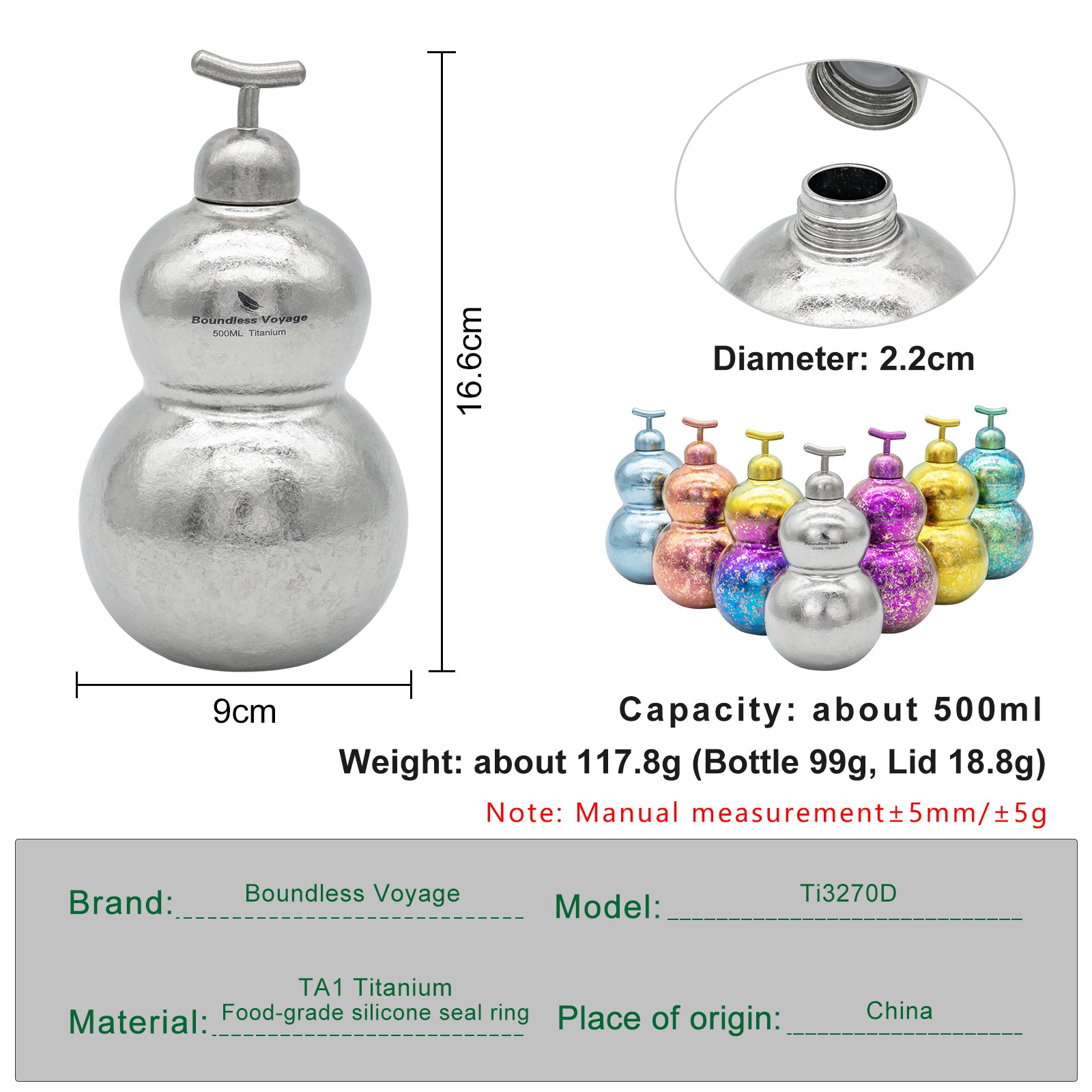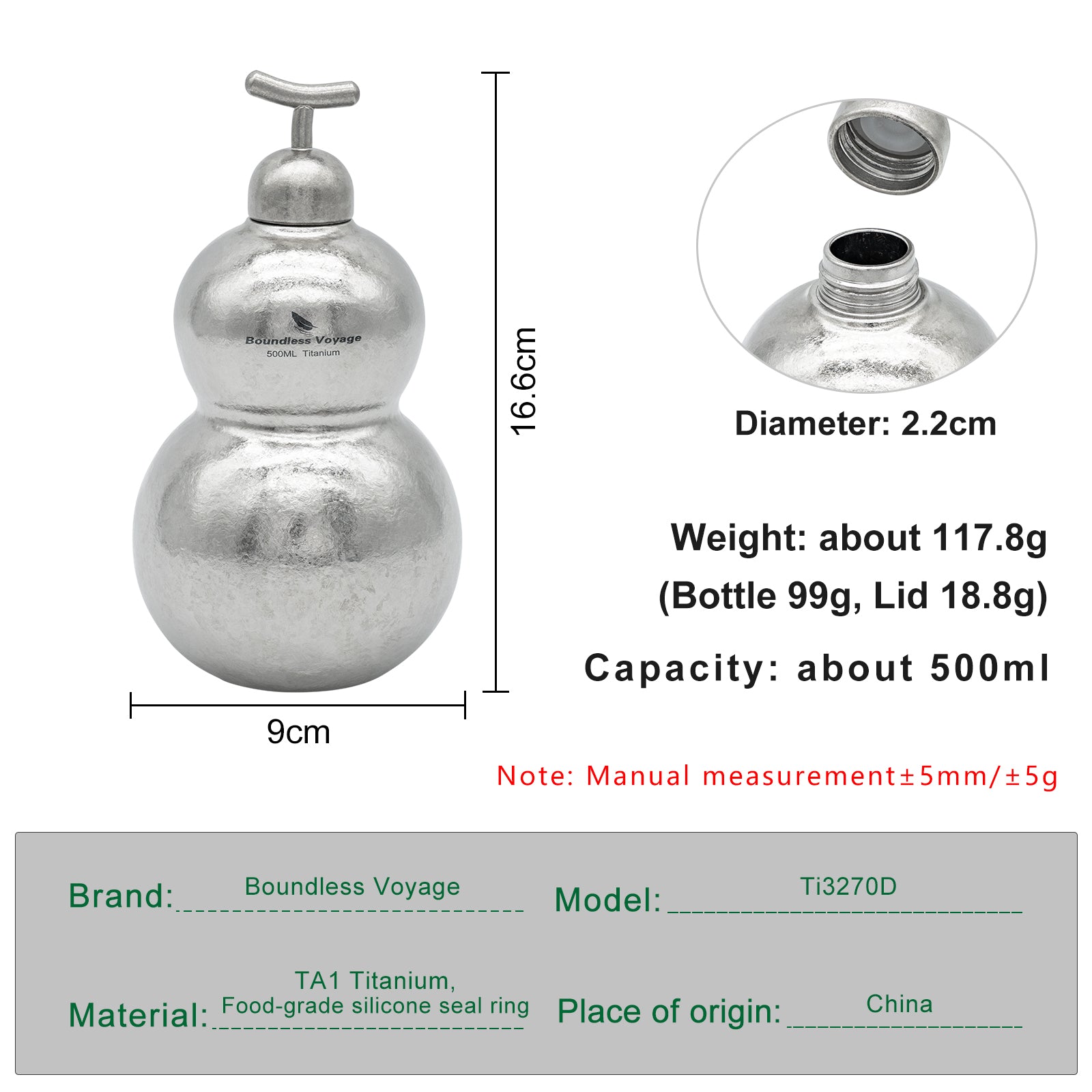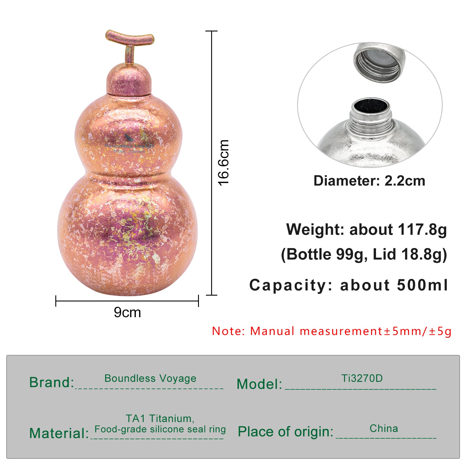 Boundless Voyage Premium Titanium Gourd Flask | 500ml Crystallized Ice-Texture Canteen | Ultralight & Rustproof Alcohol Drinkware for Hiking & Camping