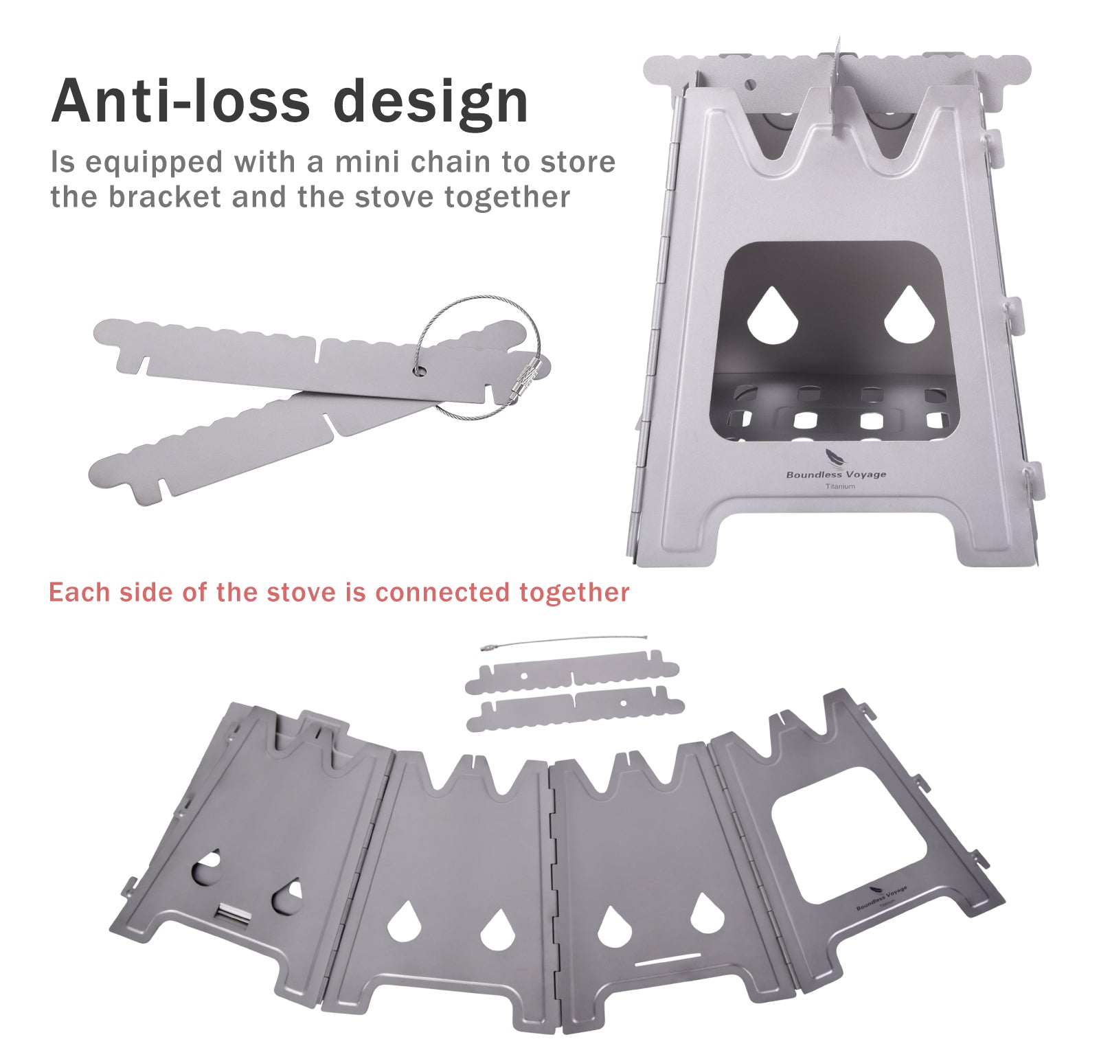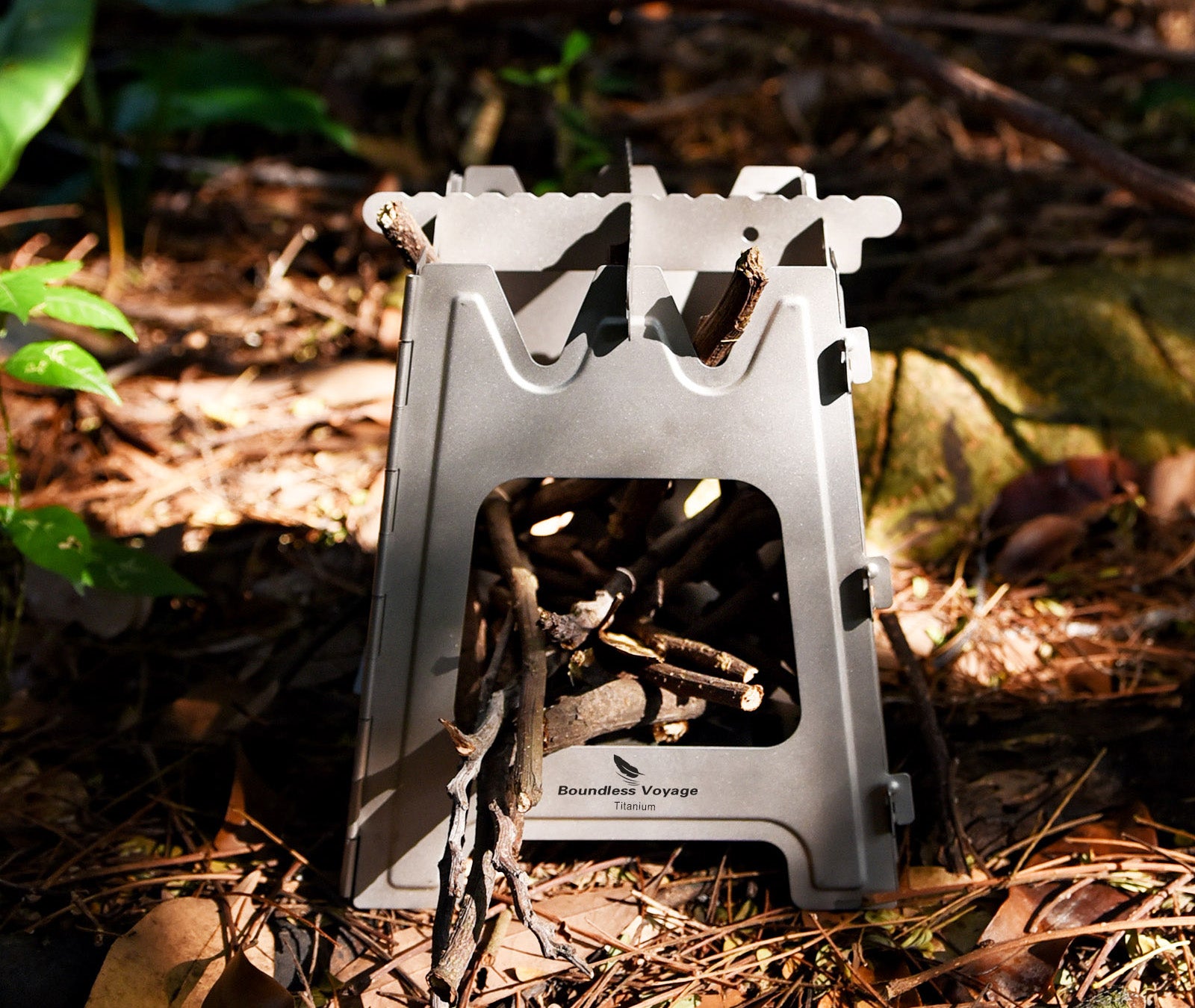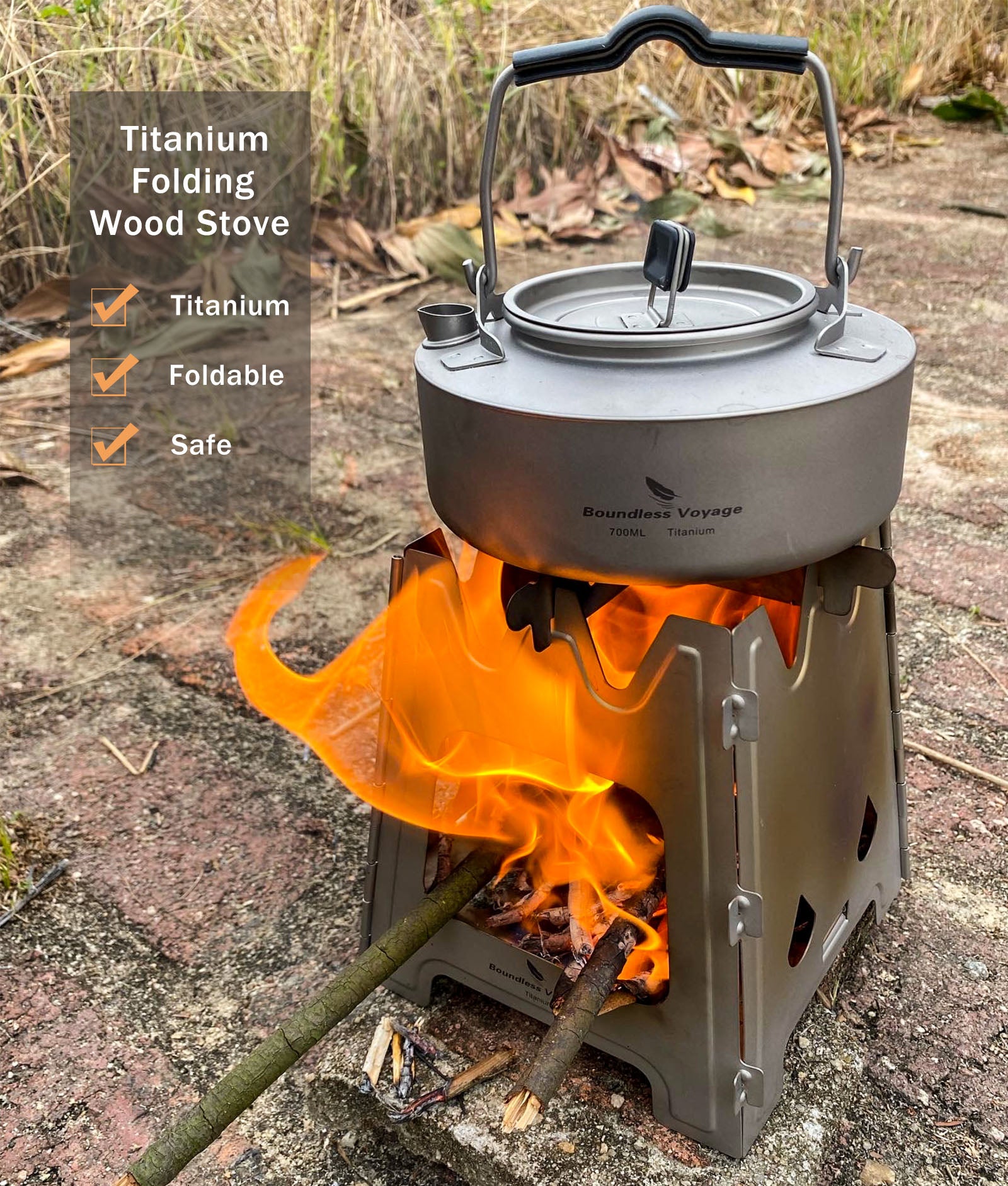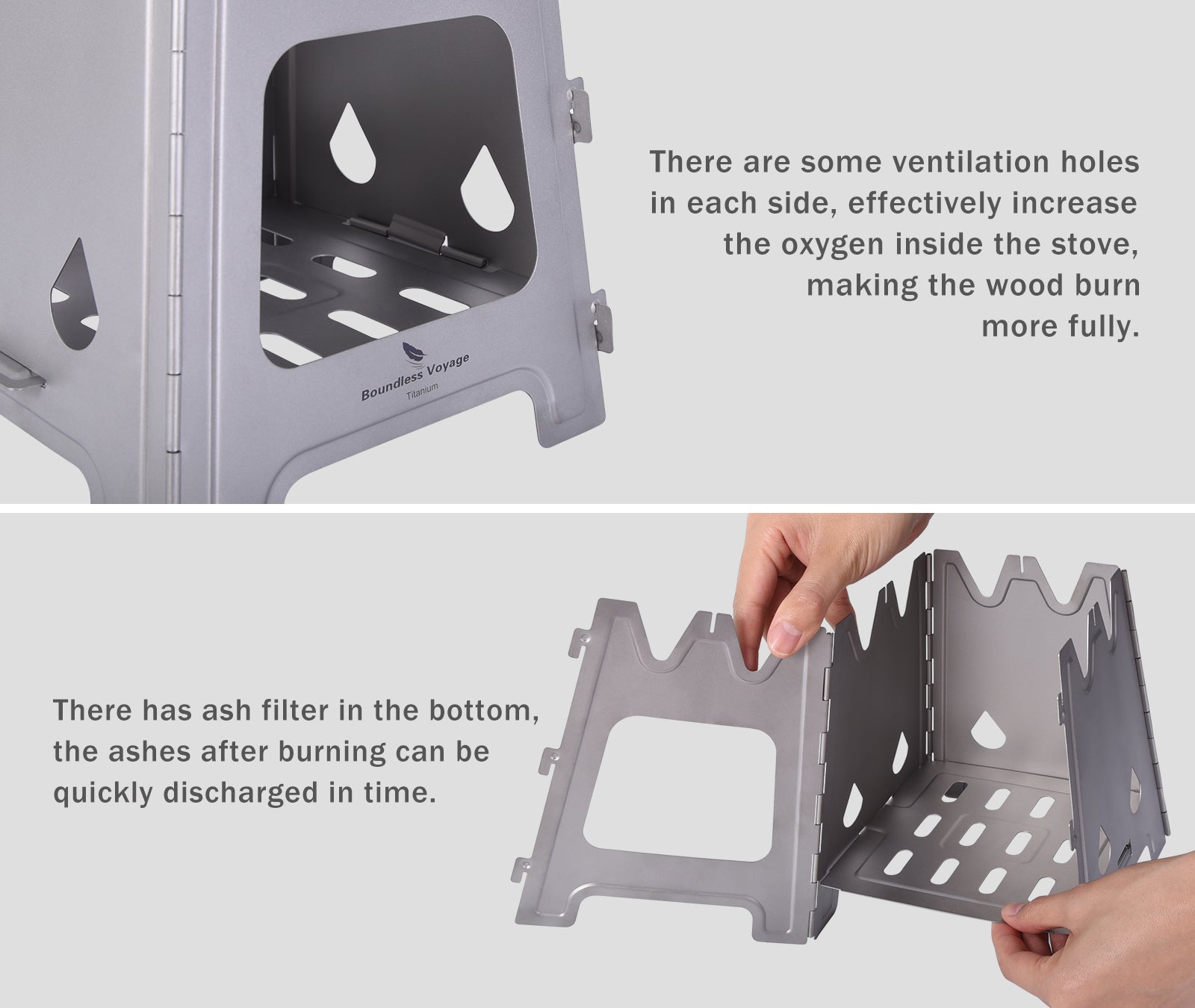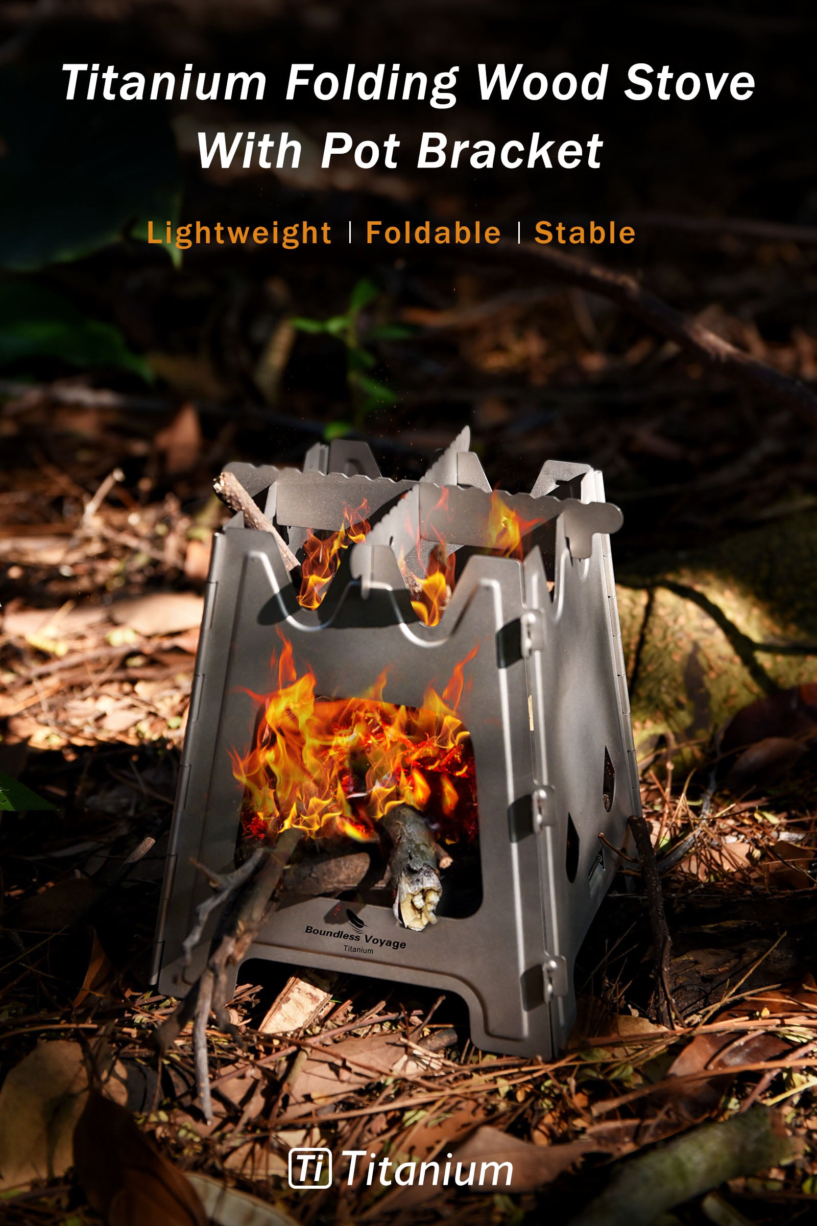 Boundless Voyage Outdoor Titanium Folding Wood Stove With Pot Bracket Camping Charcoal Burner Furnace