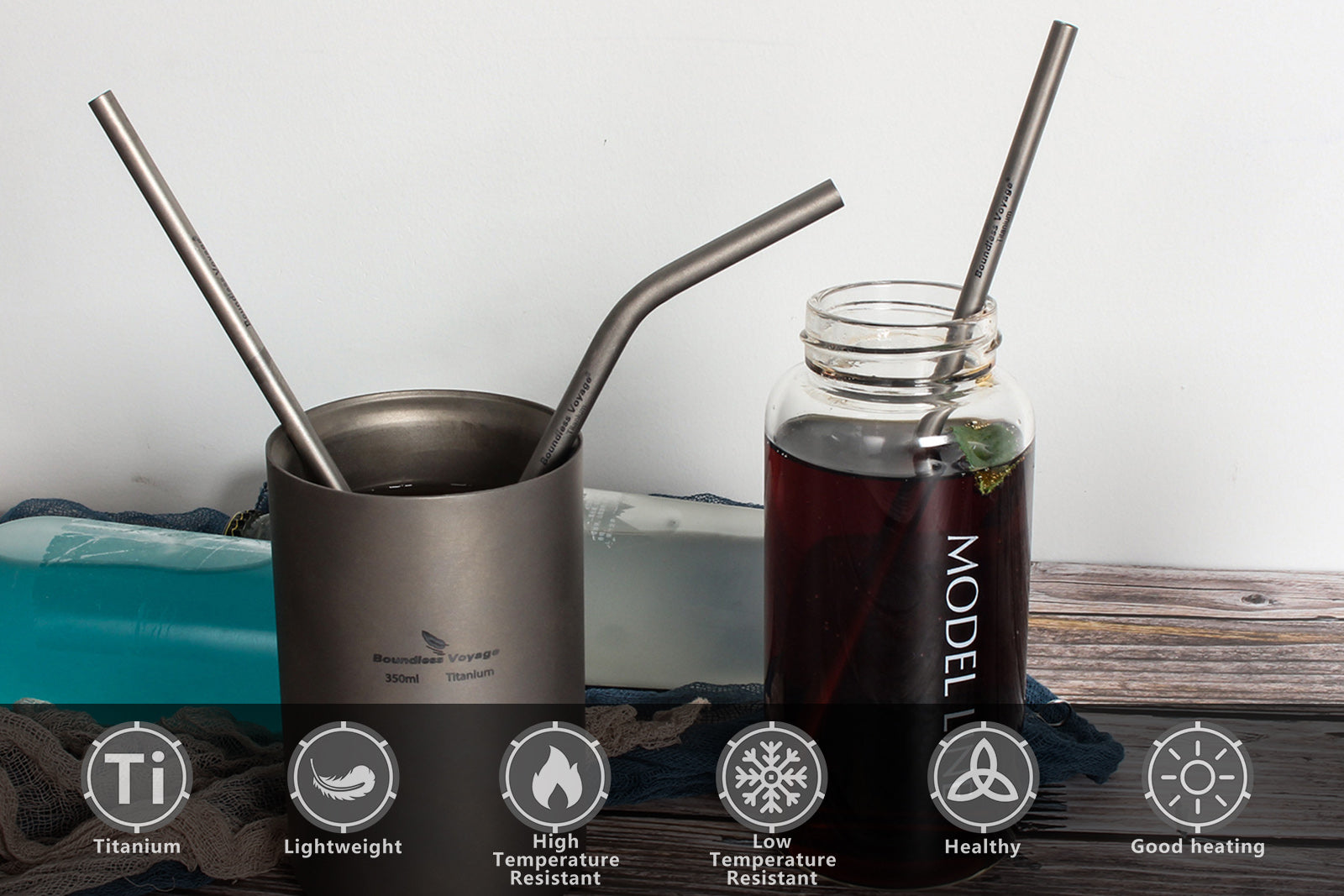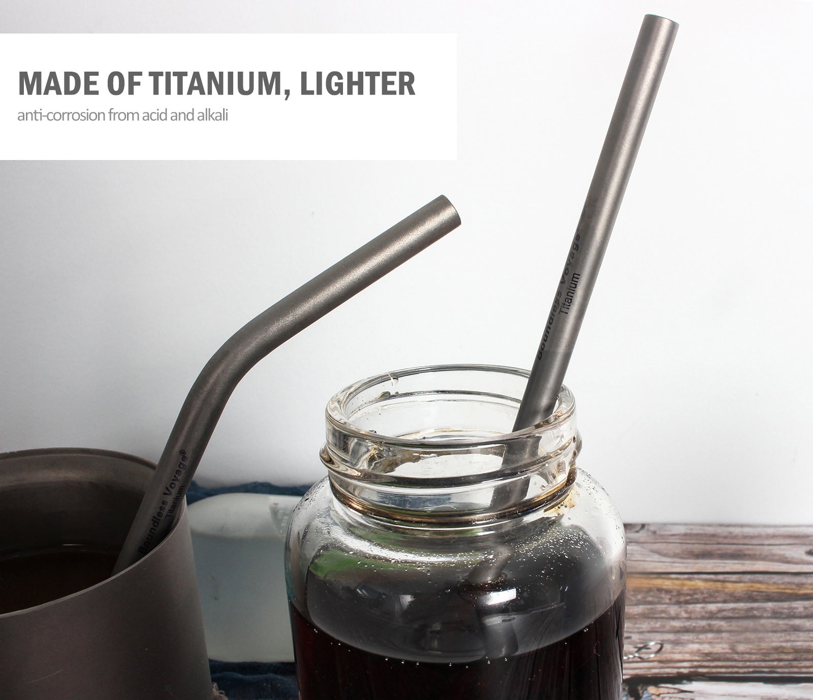 Boundless Voyage Titanium Curved Straw – Reusable Ultralight Metal Drinking Straw for Camping & Everyday Use