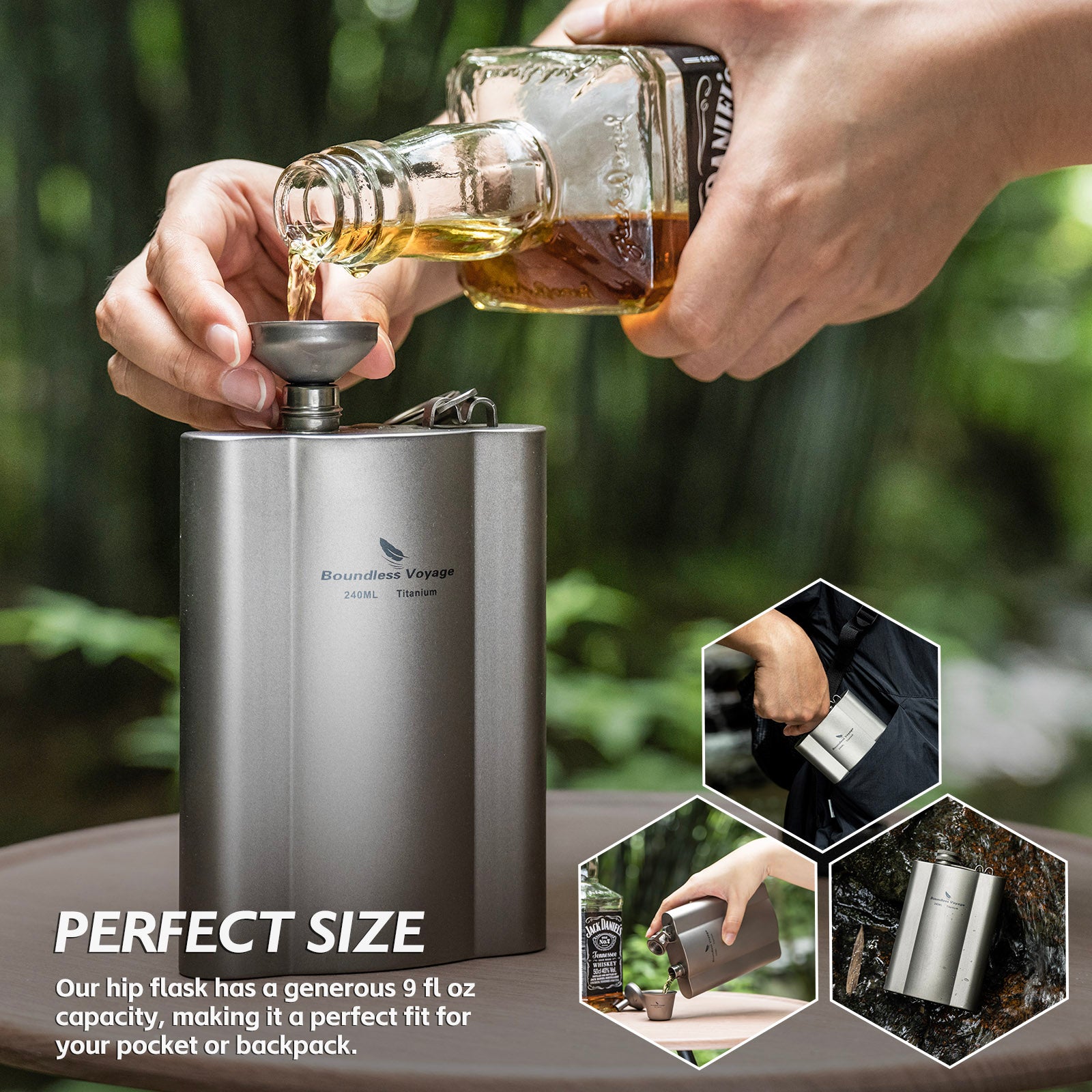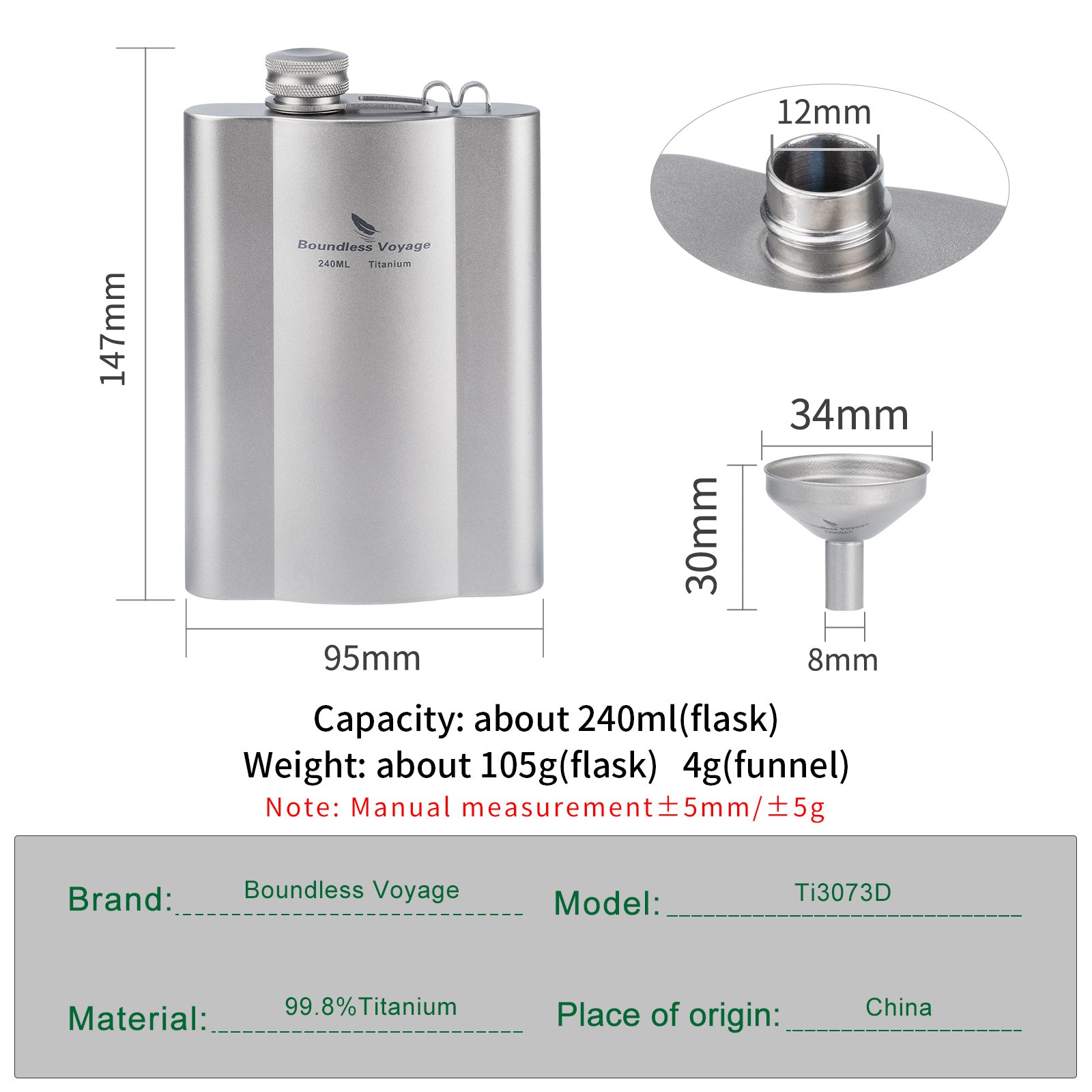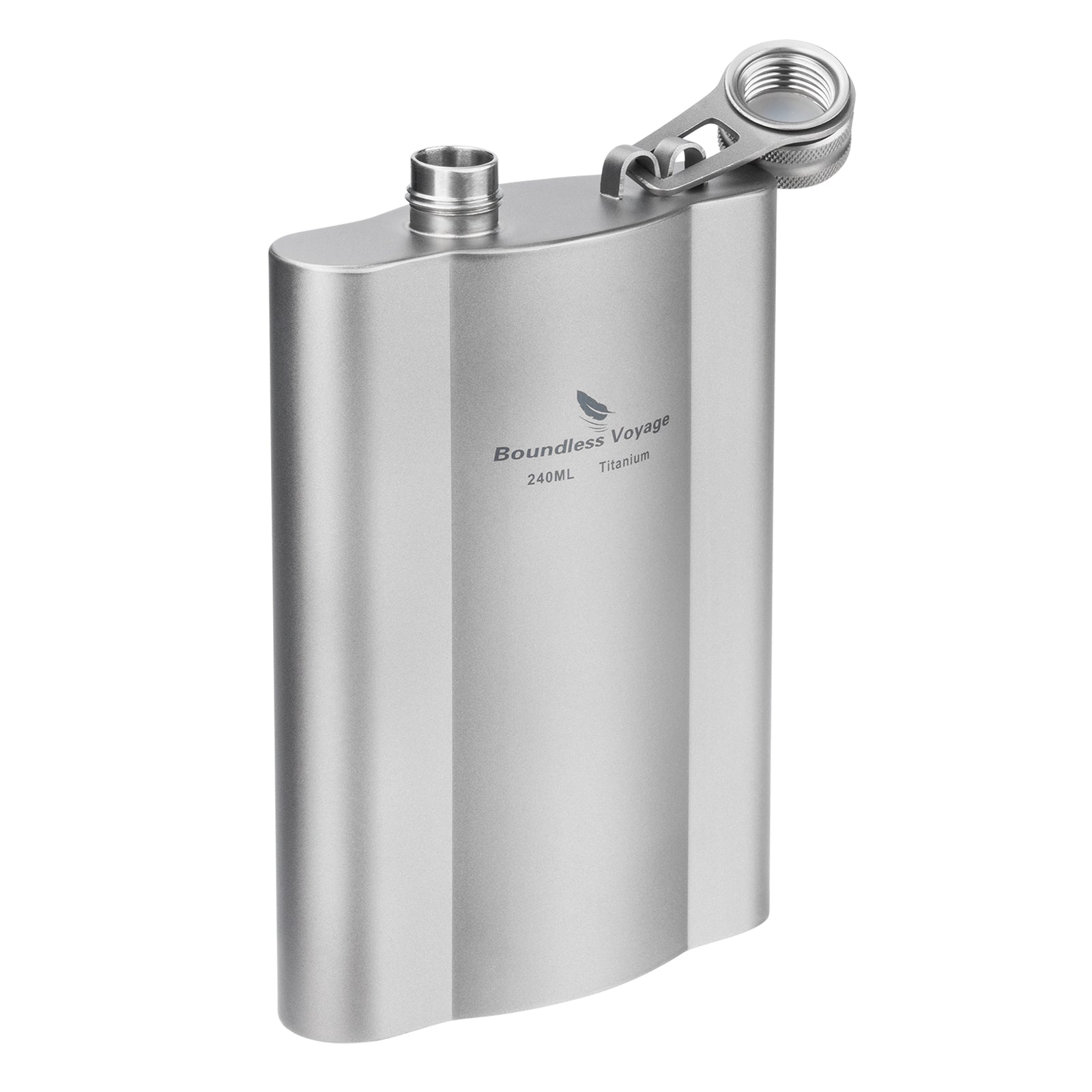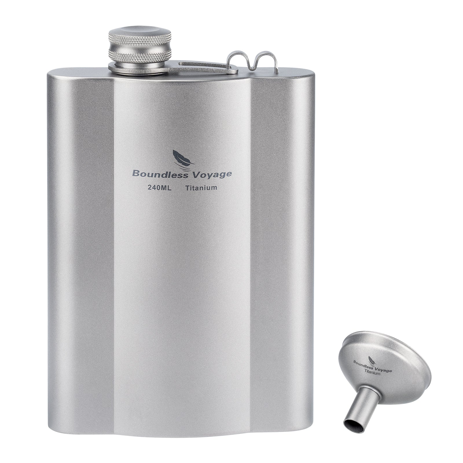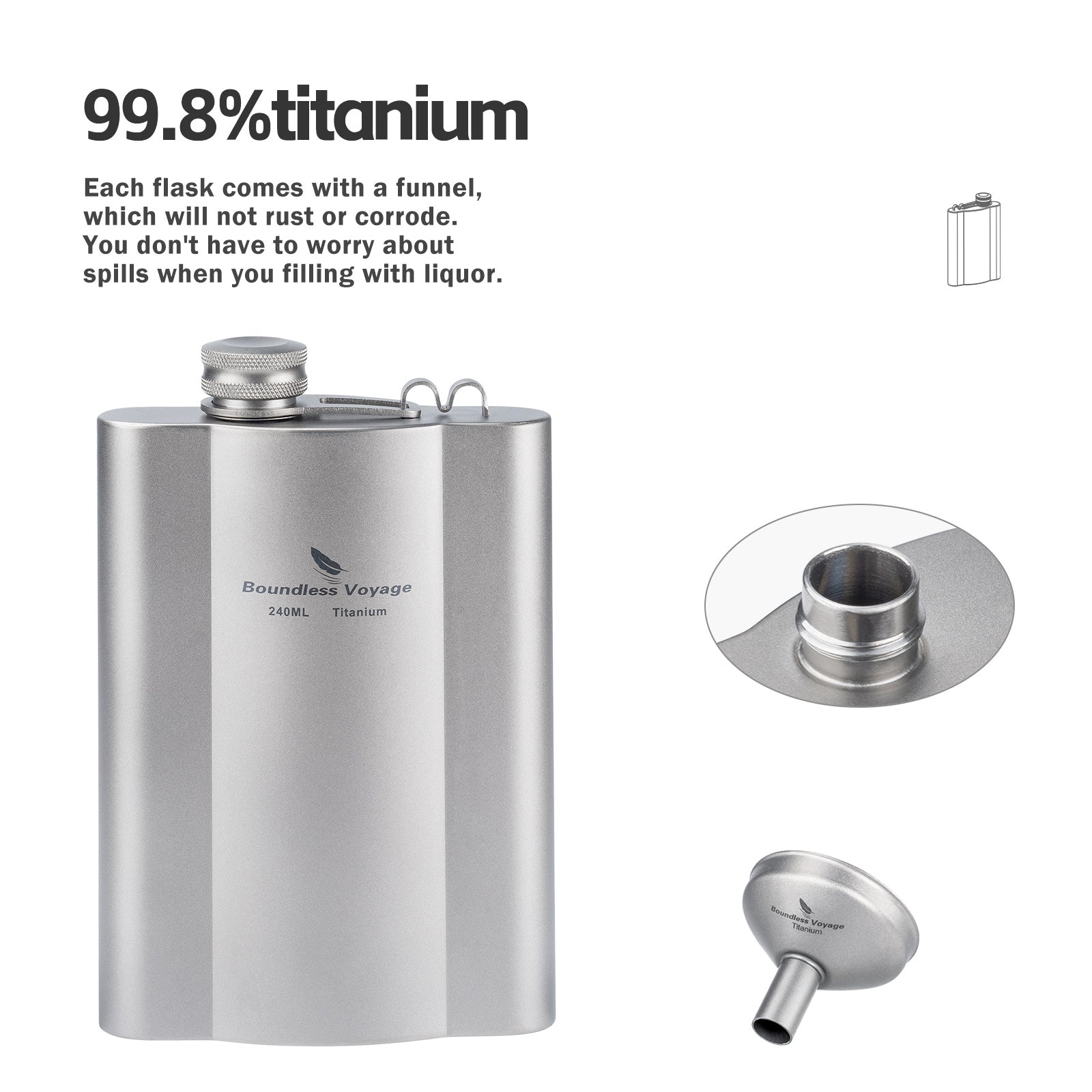 Boundless Voyage Titanium Flask 240ml+funnel Rust-Free Ultralight Small Liquor Flask Bottle for Whiskey Vodka Wine Outdoor Portable Travel Outdoor