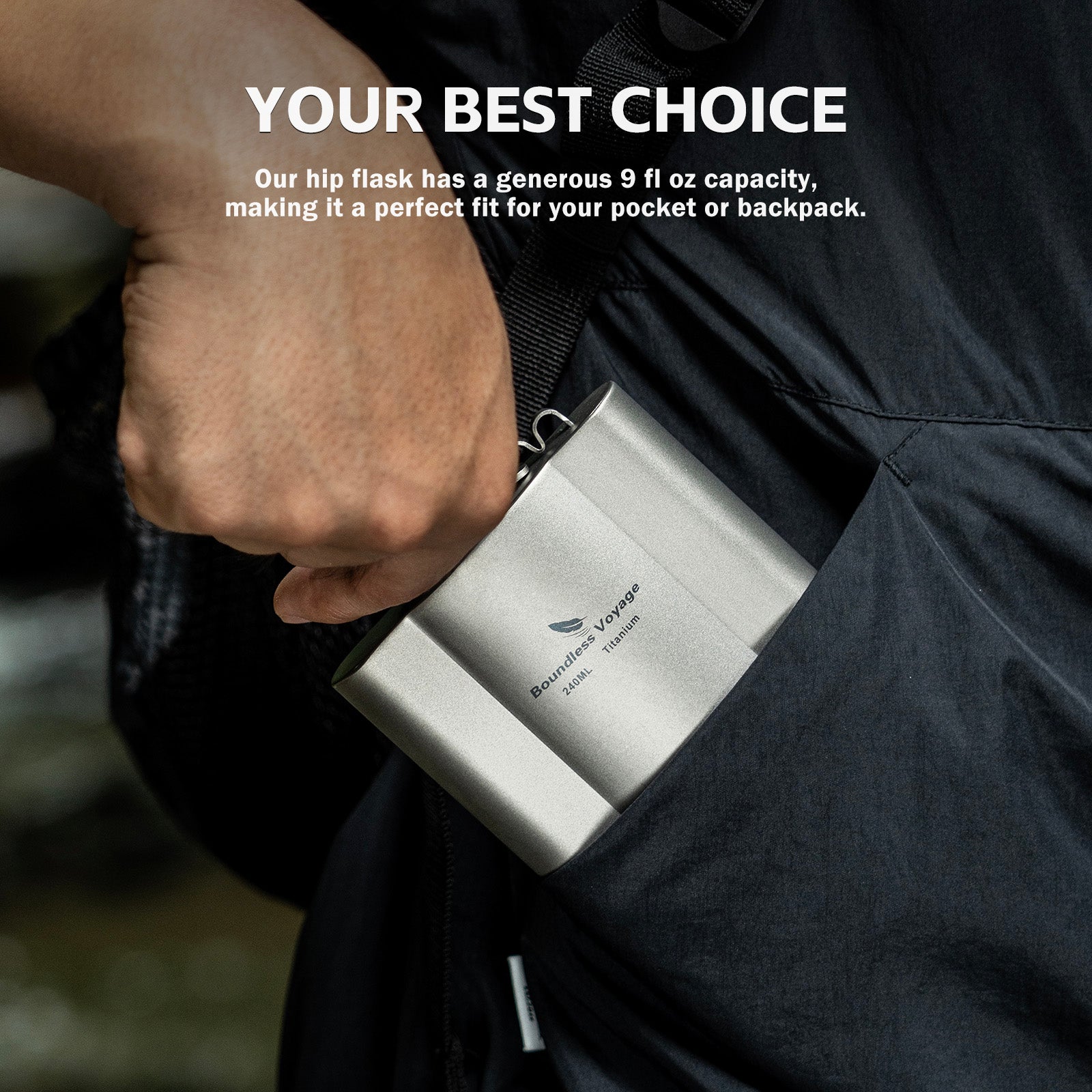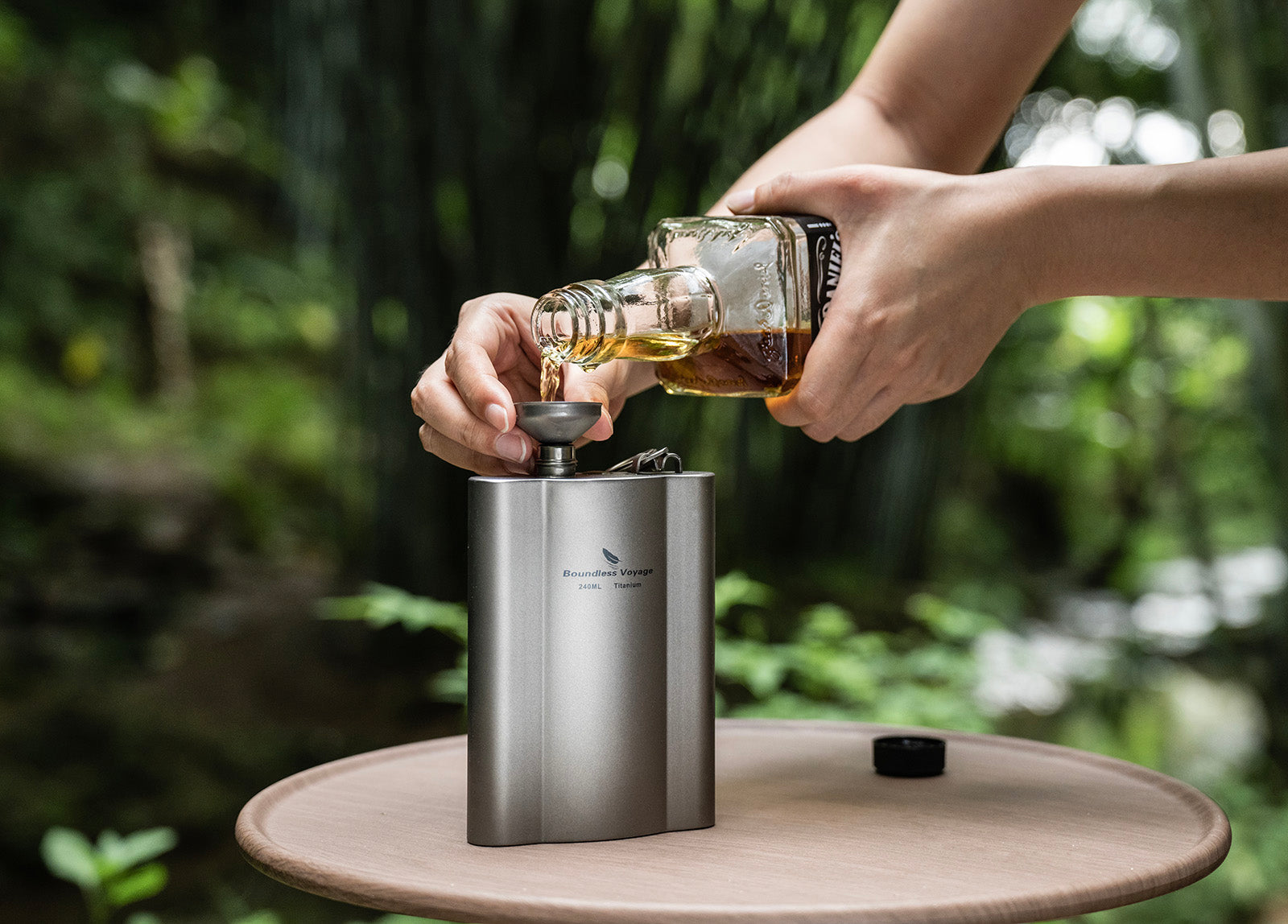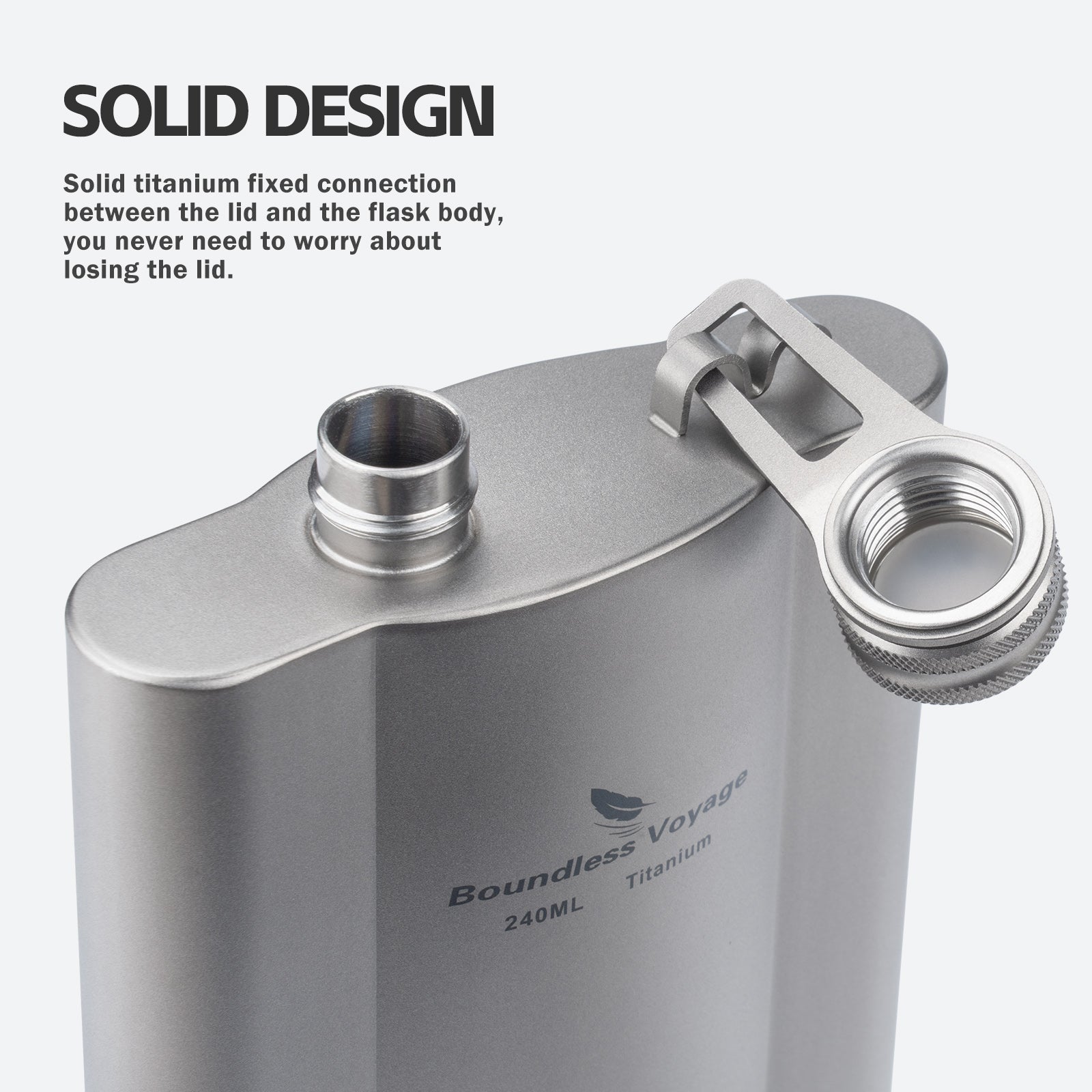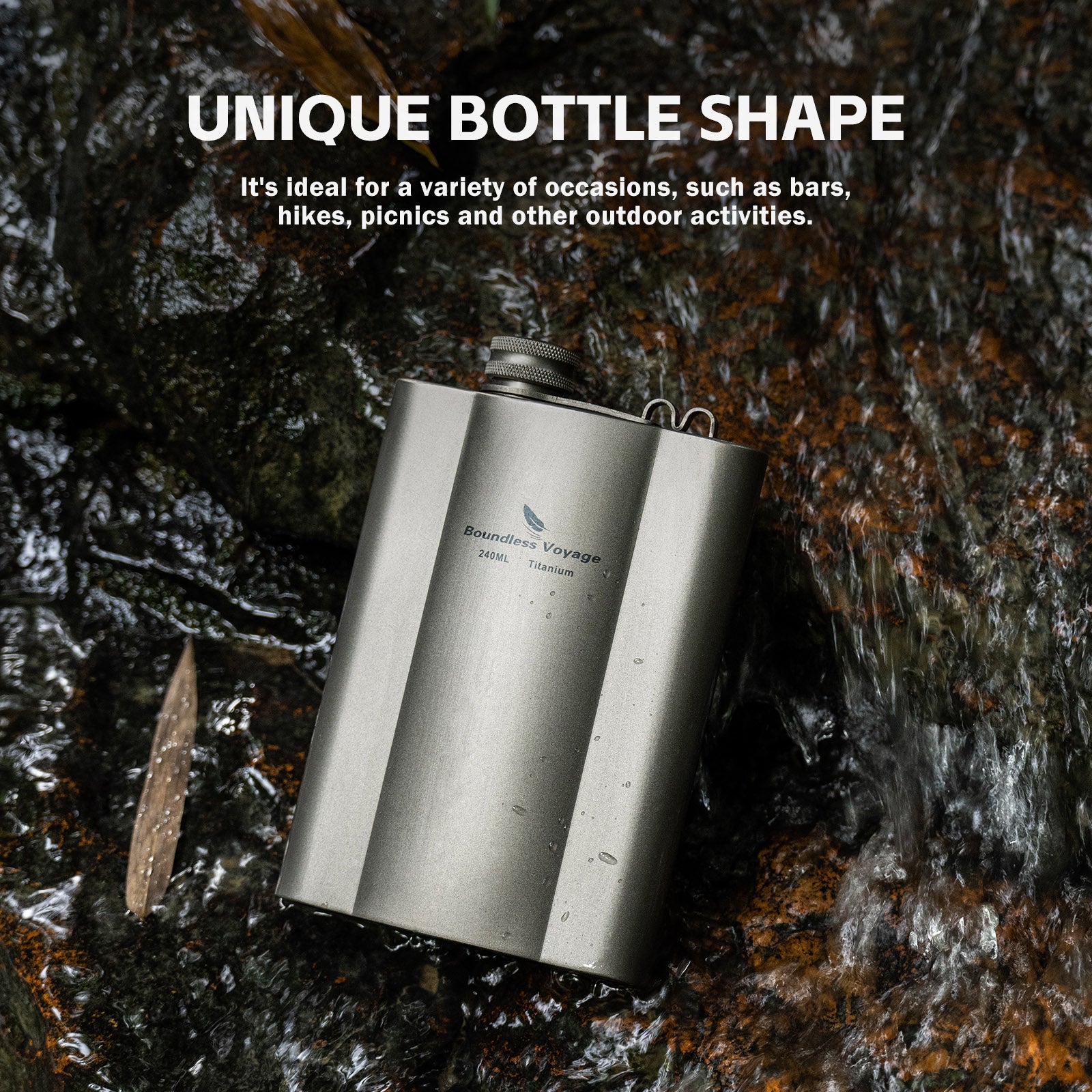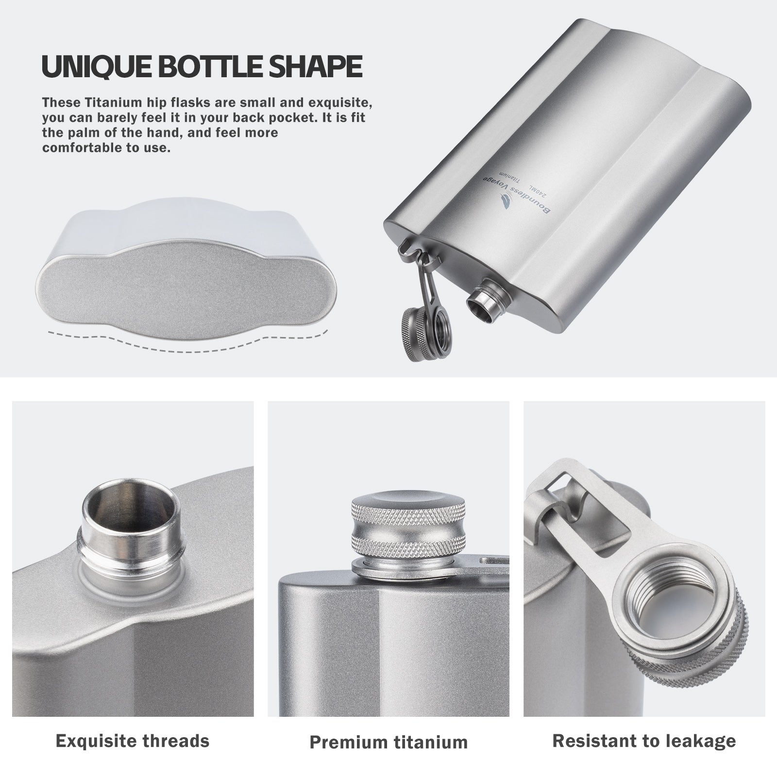 Boundless Voyage Titanium Flask 240ml+funnel Rust-Free Ultralight Small Liquor Flask Bottle for Whiskey Vodka Wine Outdoor Portable Travel Outdoor