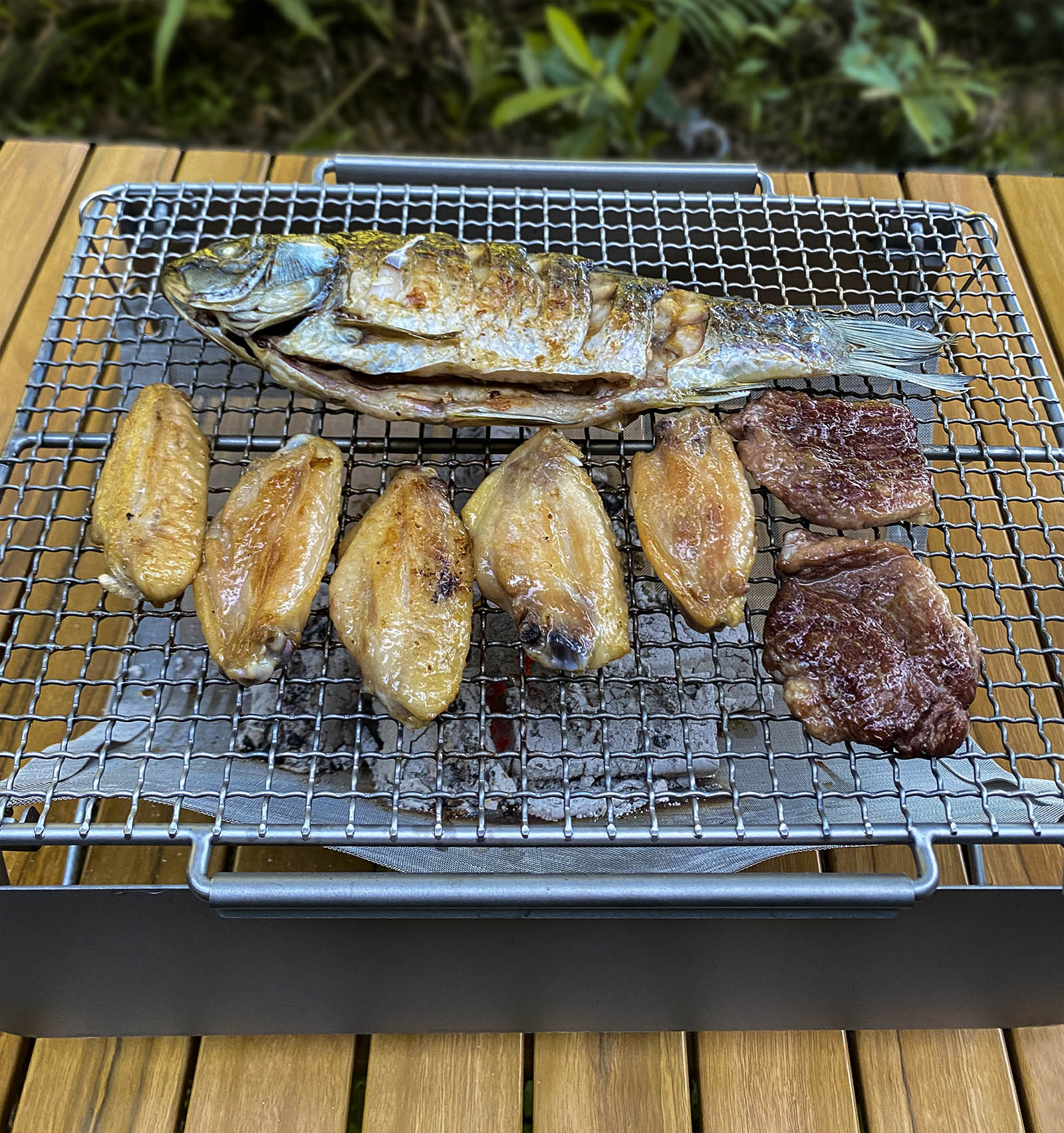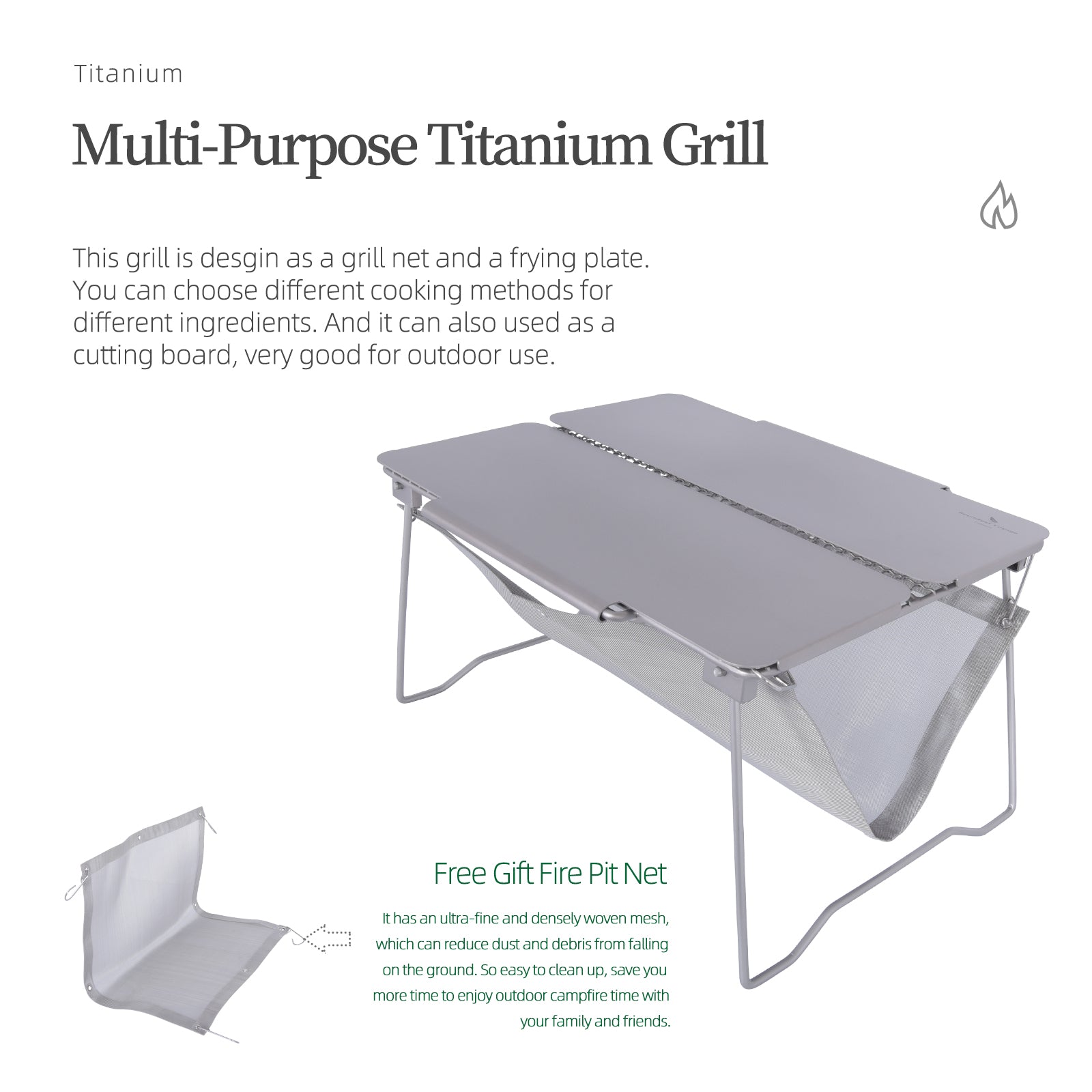 Material: 99.8% titanium (grill), SS304 stainless steel (folding legs and mesh)
